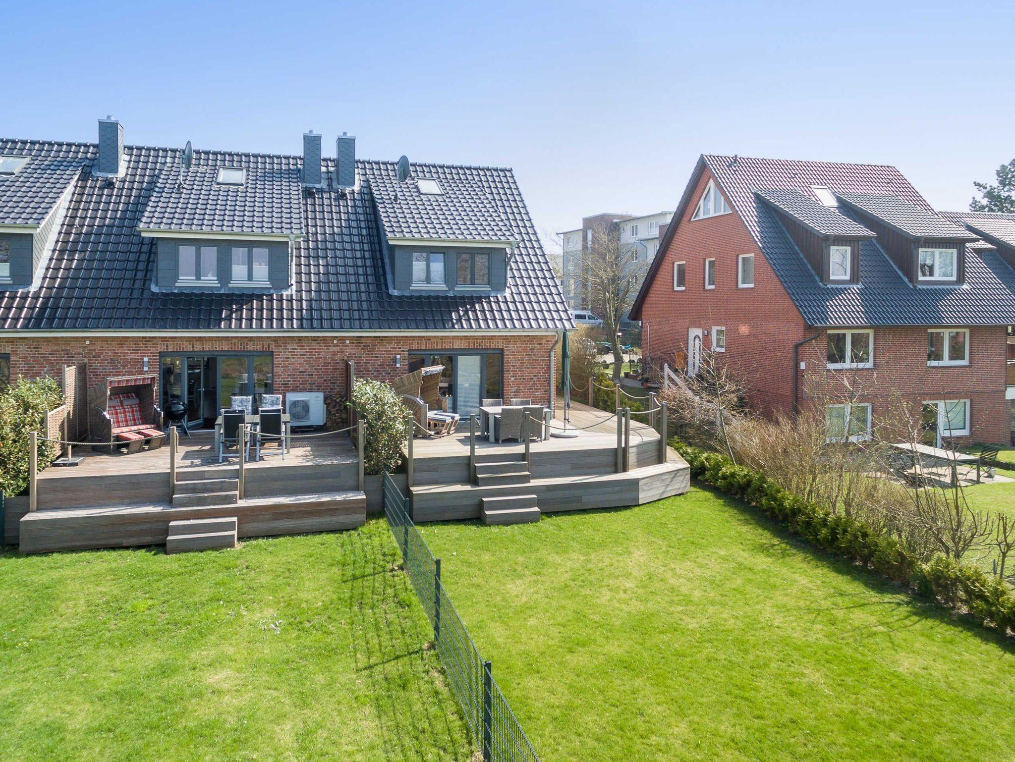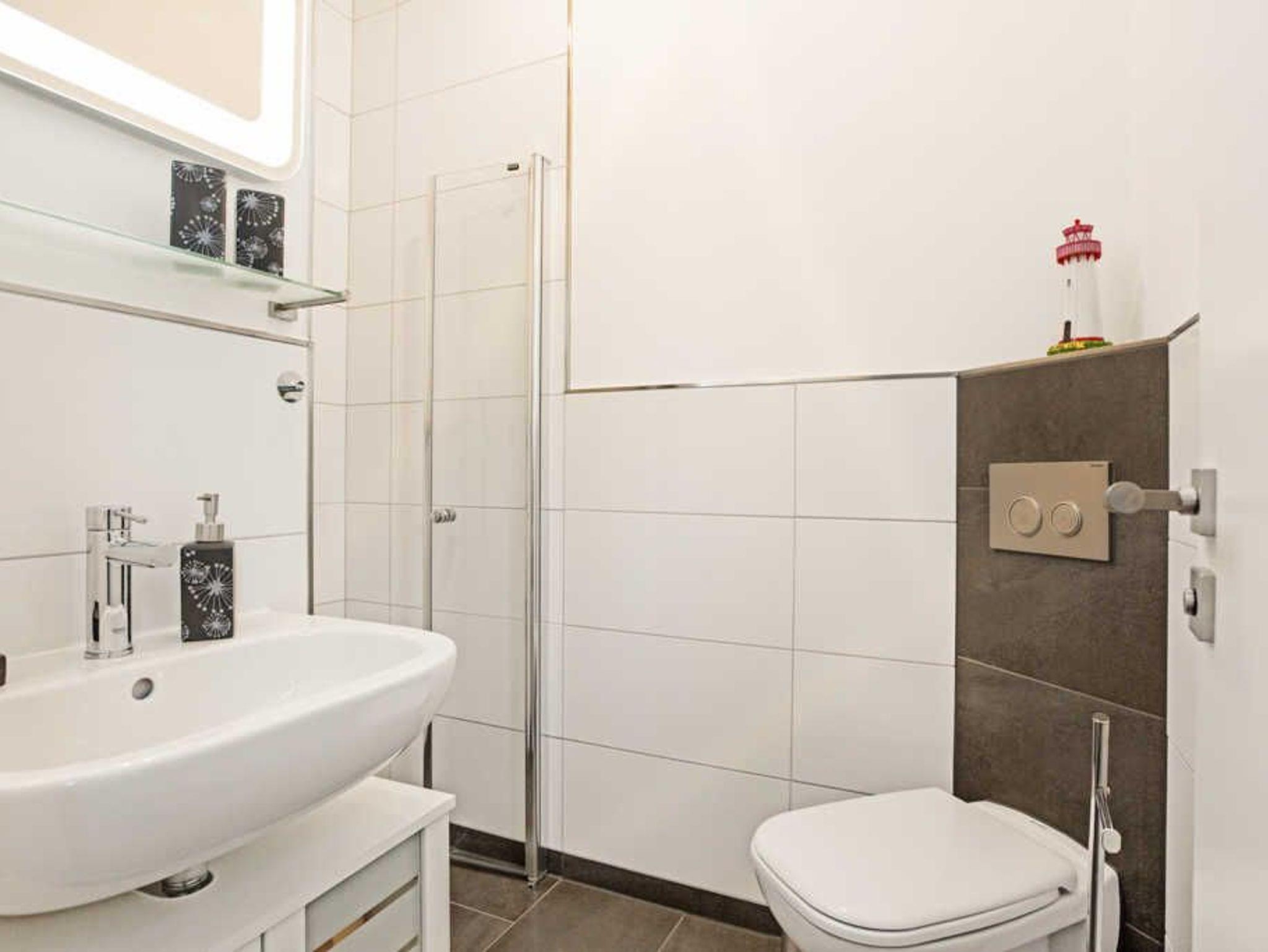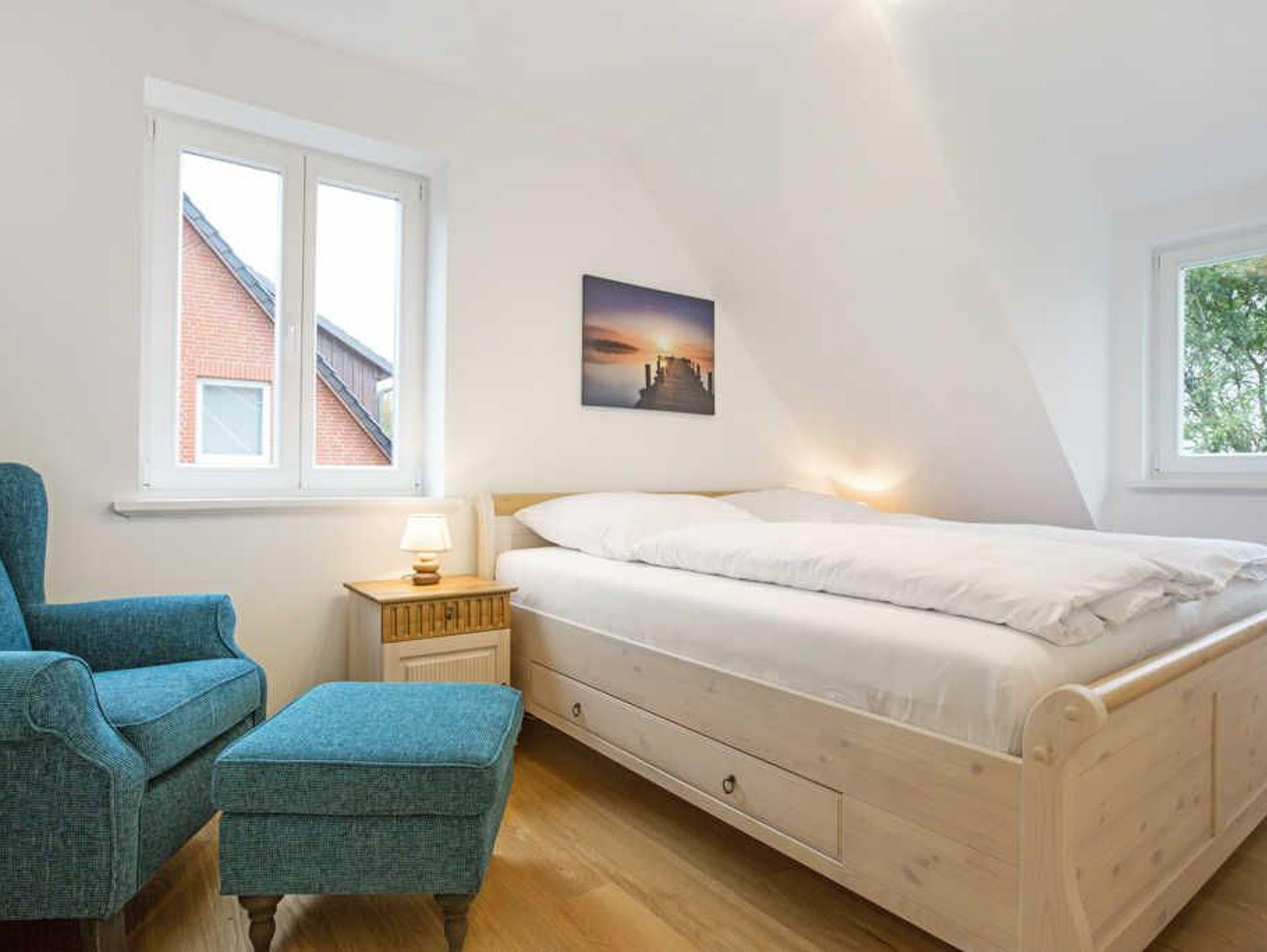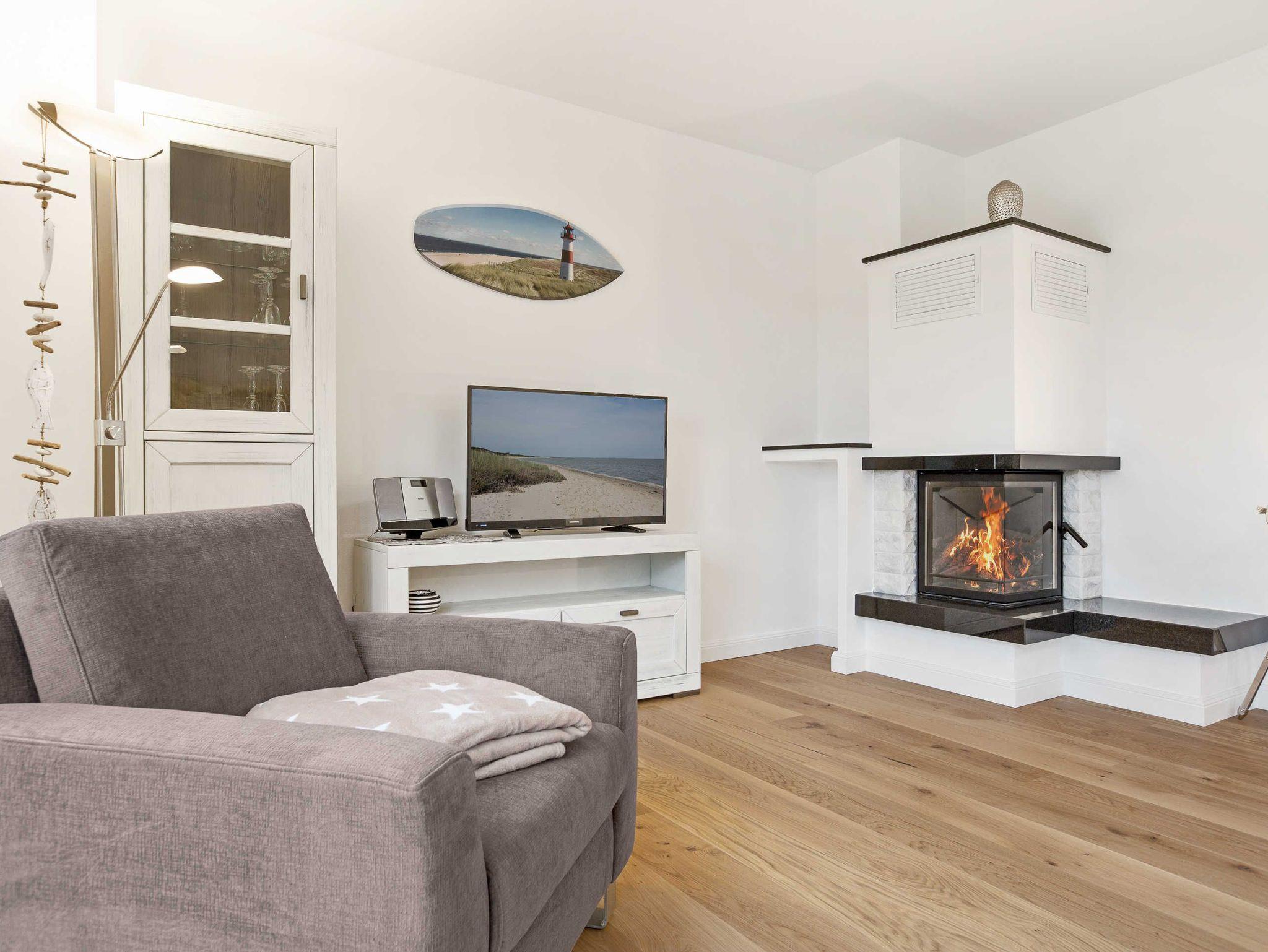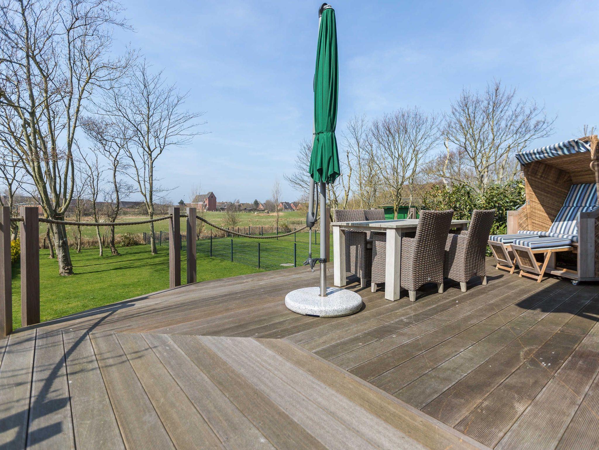 Direkt aus dem Wohnzimmer gelangen Sie auf die große Südterrasse, auf der sie sich sonnen können und direkt auf eine weite Fenne mit Schafen ? „Fenne“ ist der friesische Begriff für „Weideland“ ? sowie auf die kleine Lister Kirche blicken. Zudem steht Ihnen ein Gartenbereich zur Verfügung. Neben dem Wohnzimmer finden Sie im Erdgeschoss zudem ein WC mit Duschbereich.
