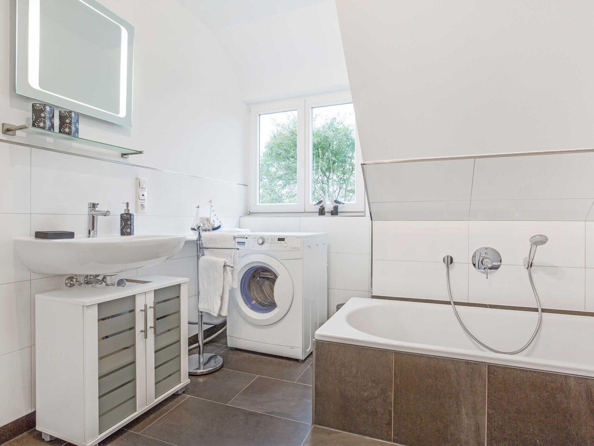Im oberen Bereich Ihres Wohlfühl-Domizils gibt es gleich vier Schlafzimmer mit insgesamt sieben Betten; zwei der Zimmer verfügen über Wand-Fernseher. Ein geräumiges Bad mit Badewanne, separater Dusche und Waschmaschine komplettiert die Räumlichkeiten.