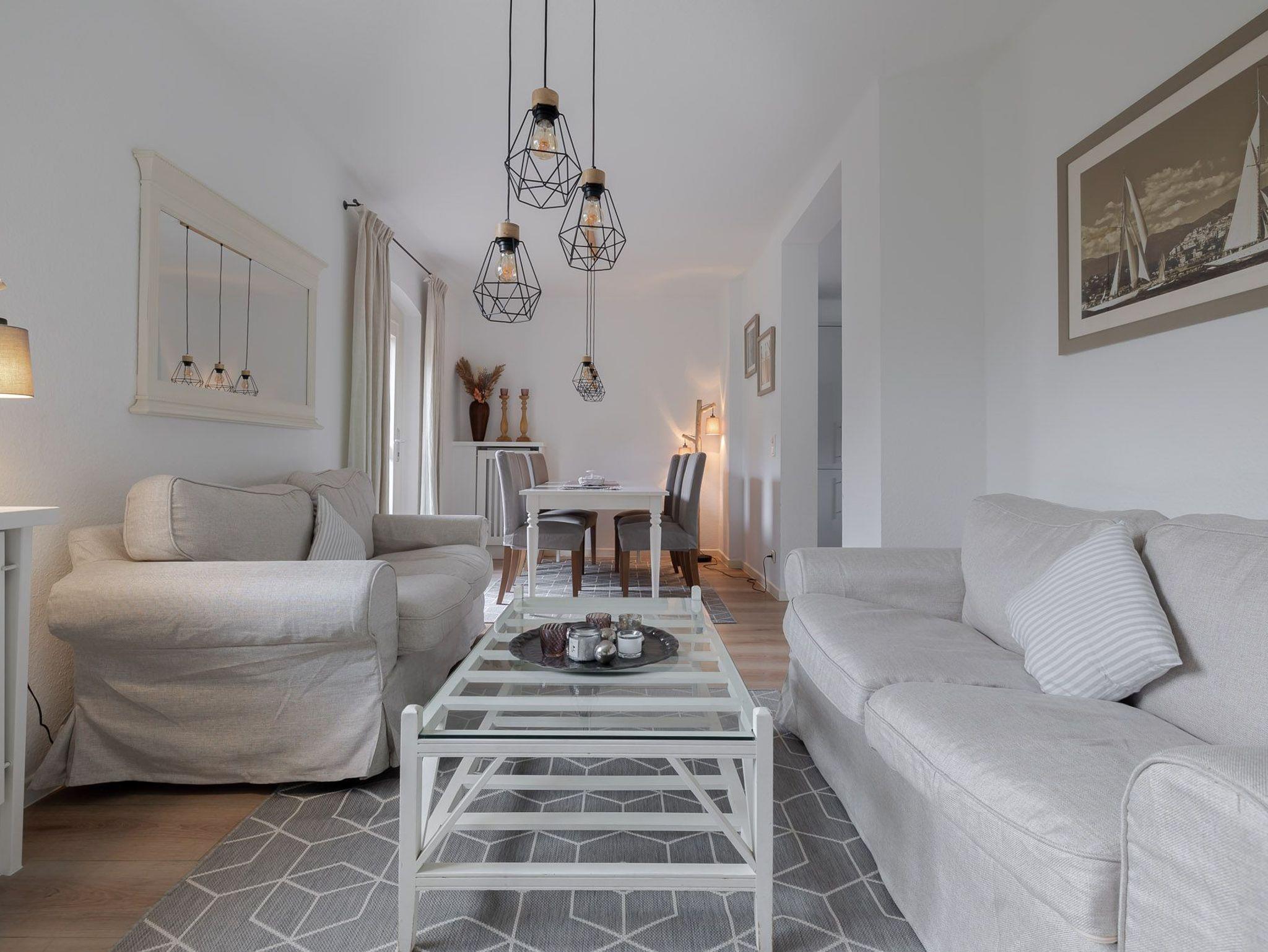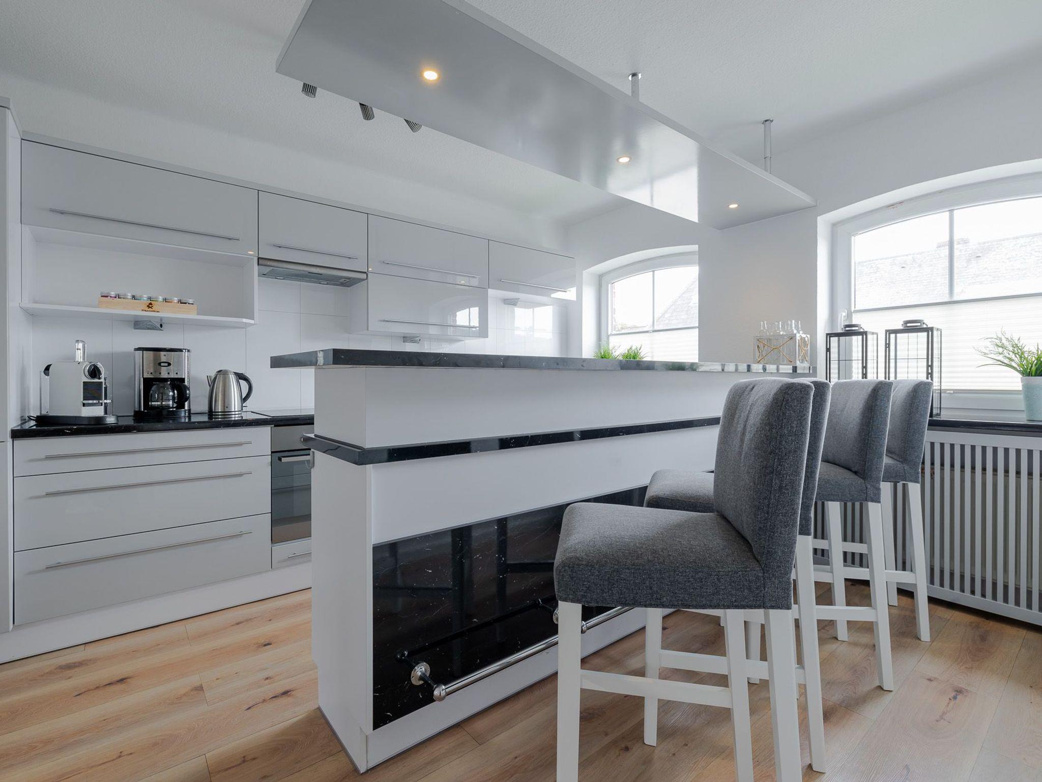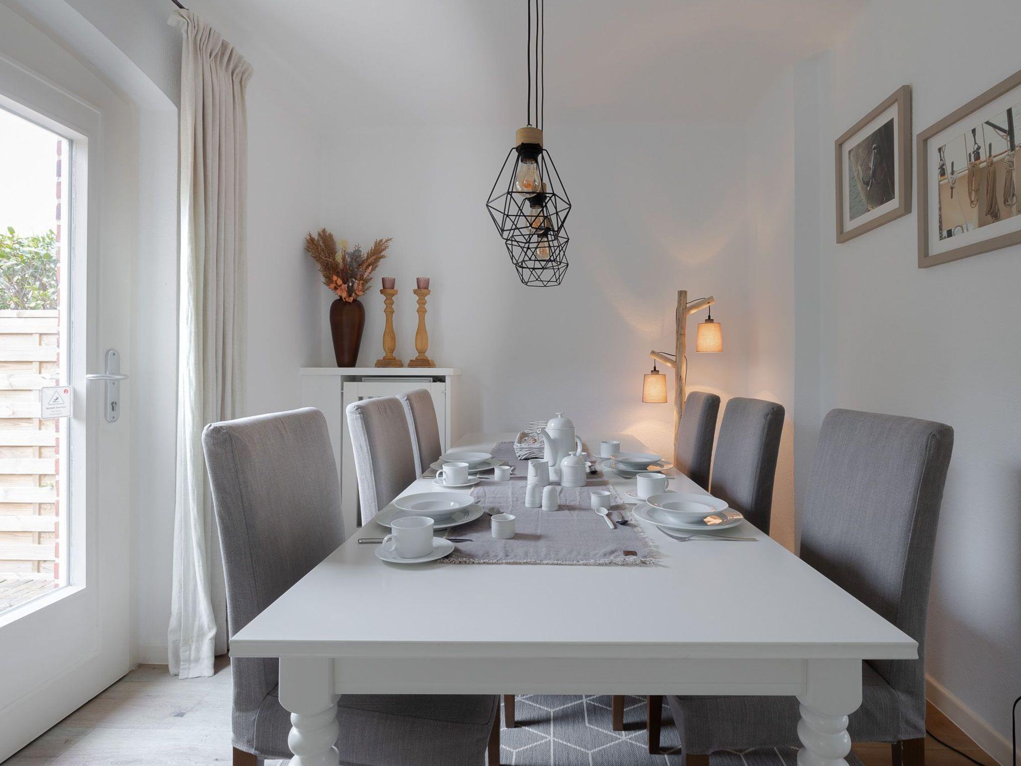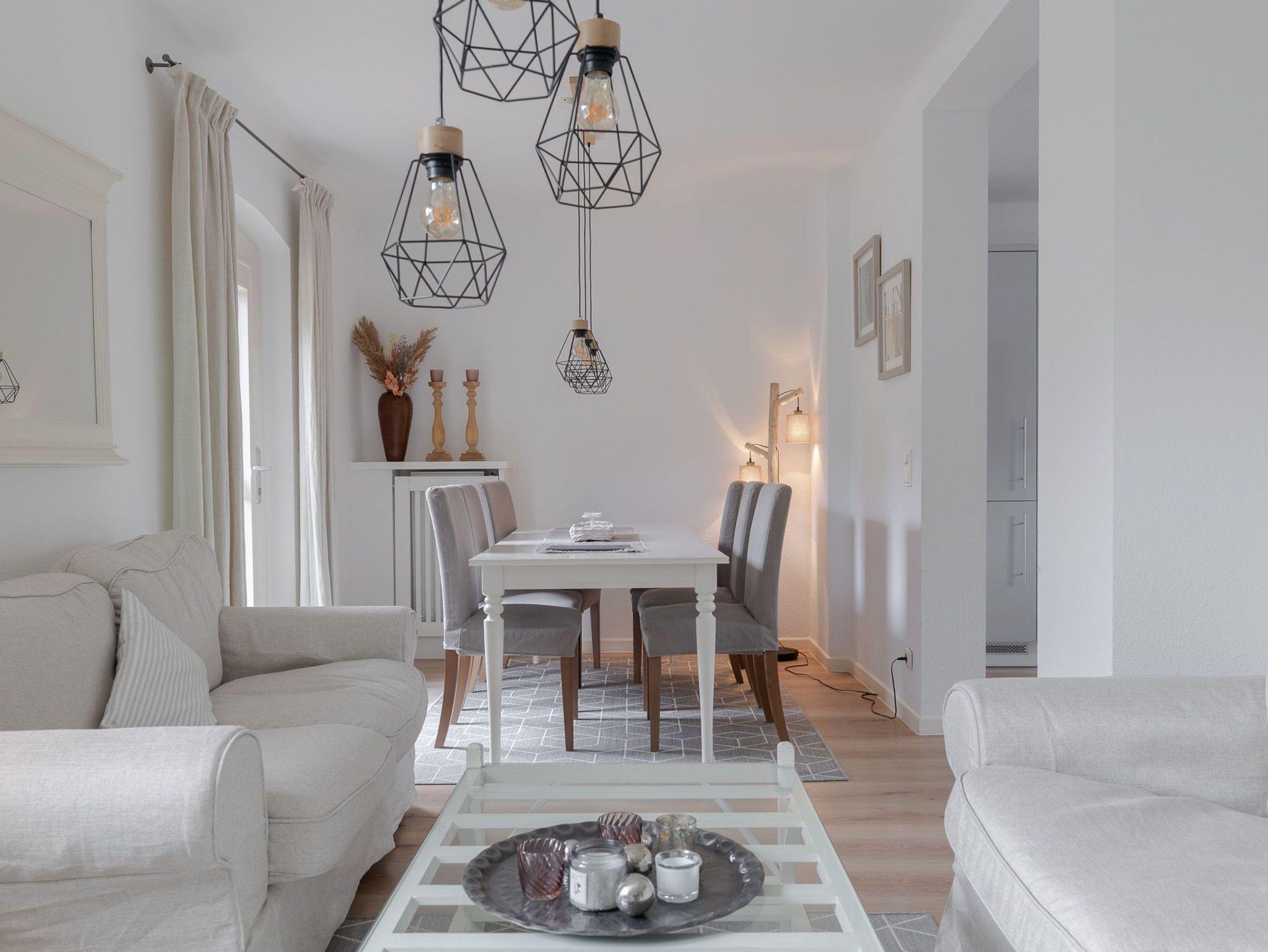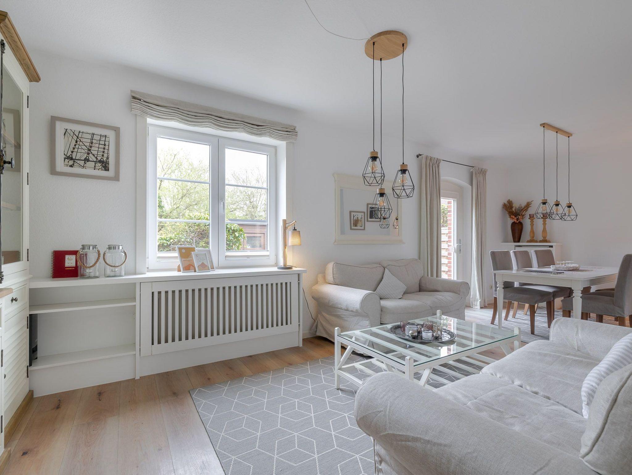 Gemütlicher Wohnbereich: Im Brünkhüs erwartet Sie ein modern eingerichtetes Wohnzimmer mit einem großzügigen Essbereich, perfekt für gemeinsame Mahlzeiten und gesellige Abende. Die integrierte Küche ist komplett ausgestattet und bietet Ihnen alles, was Sie für die Zubereitung Ihrer Lieblingsspeisen benötigen.