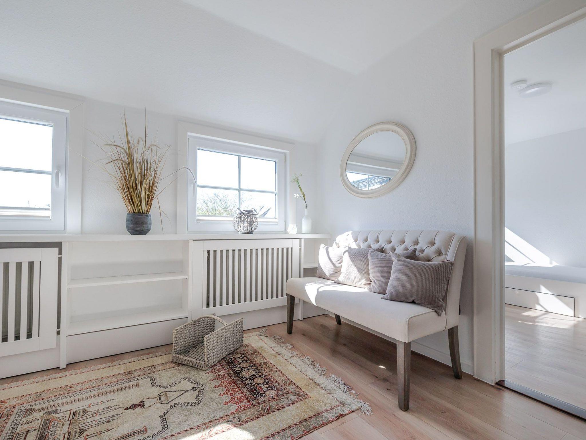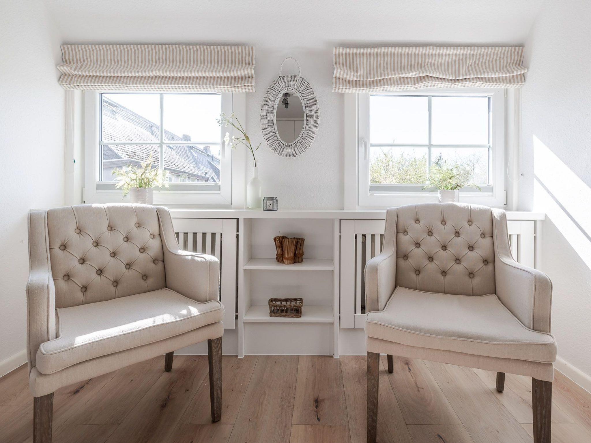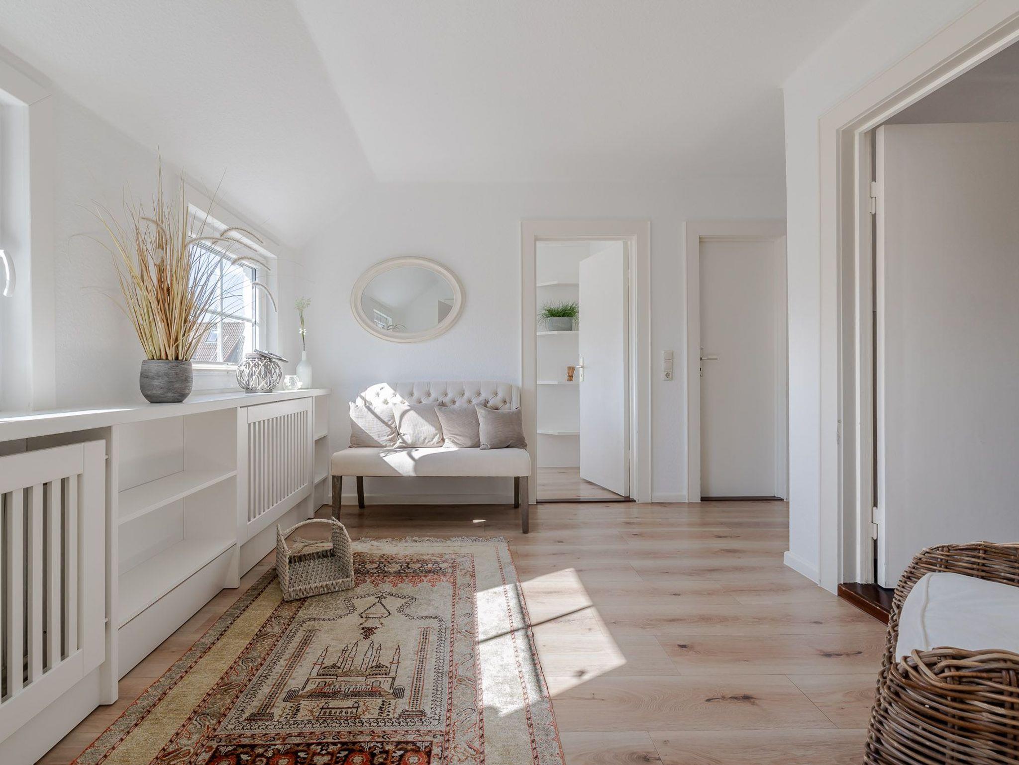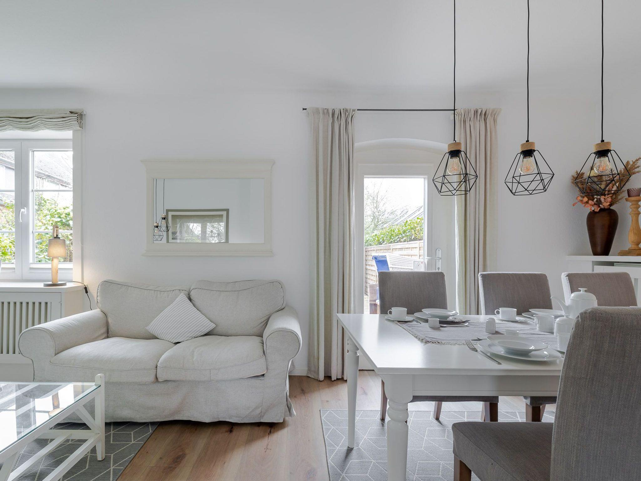 Elegantes Interieur: Das Brünkhüs beeindruckt mit seinem hellen und stilvollen Interieur. Die attraktiven Sitzgarnituren, ausgewählten Designmöbel und der dunkle Parkettboden verleihen dem Haus eine besondere Atmosphäre.