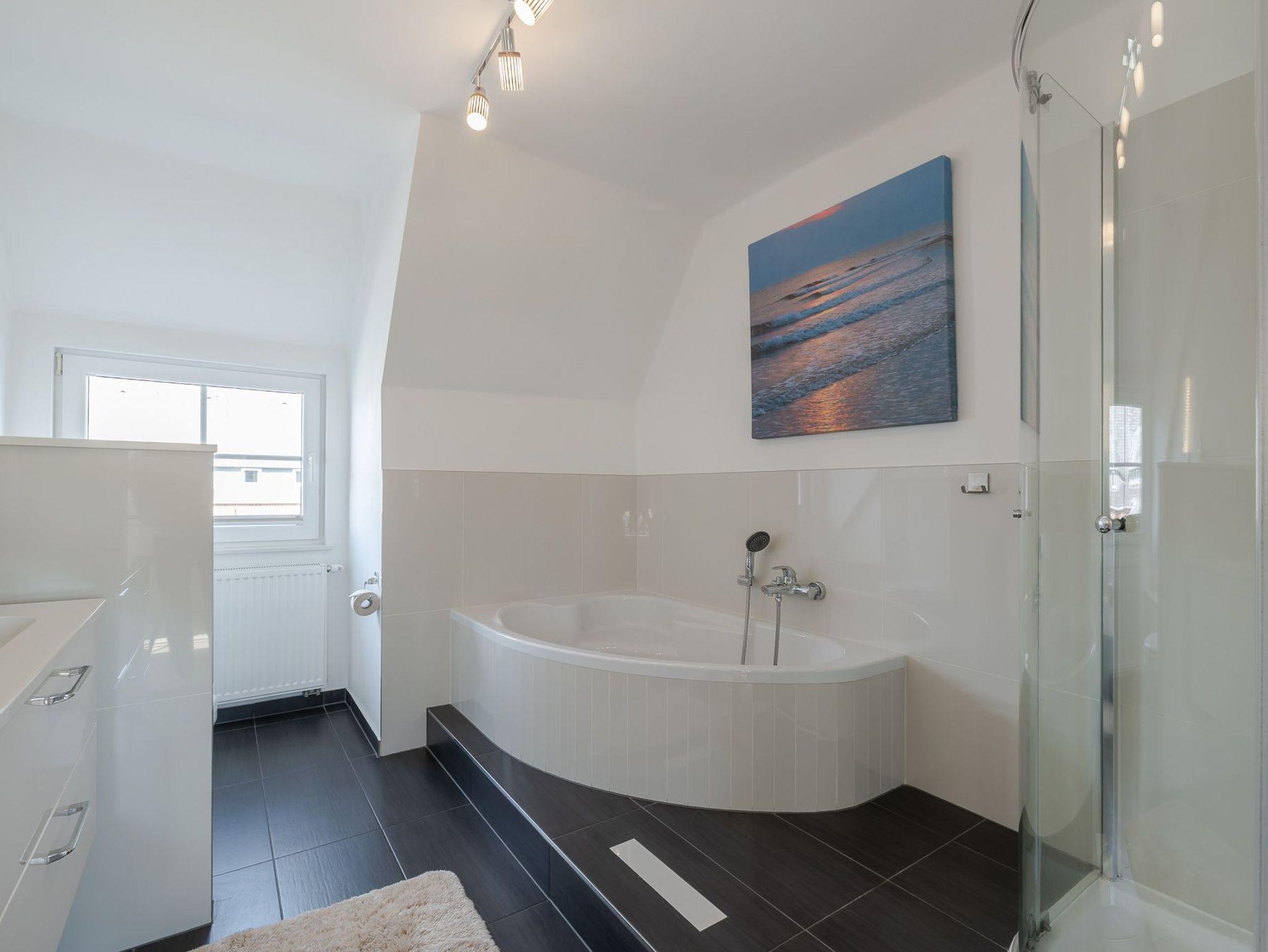 Zwei Badezimmer für Komfort: Das Brünkhüs verfügt über zwei Badezimmer, eins mit Dusche und eins sowohl mit Dusche als auch mit einer entspannenden Badewanne ? perfekt, um nach einem langen Spaziergang am Strand zu relaxen. Zusätzlich ist noch ein Gäste WC vorhanden.