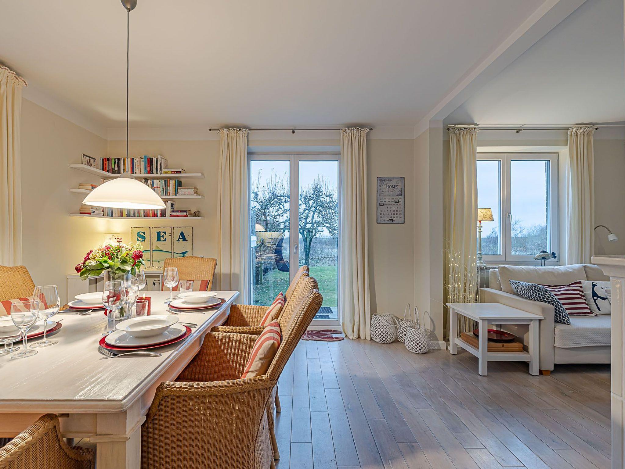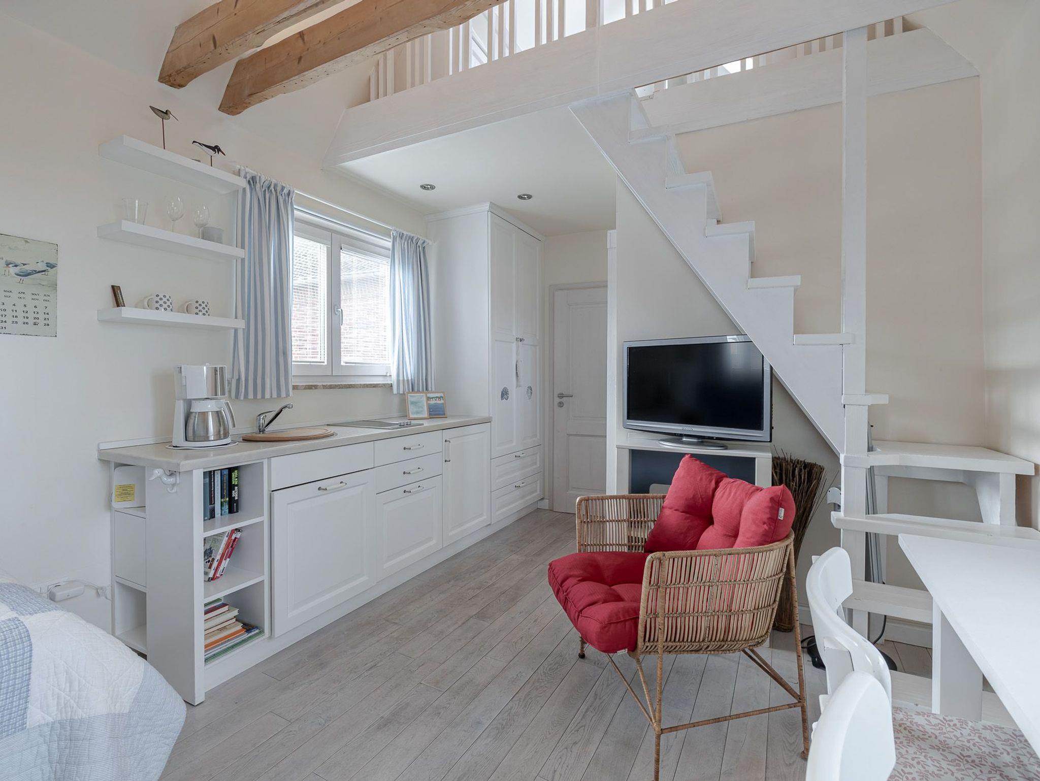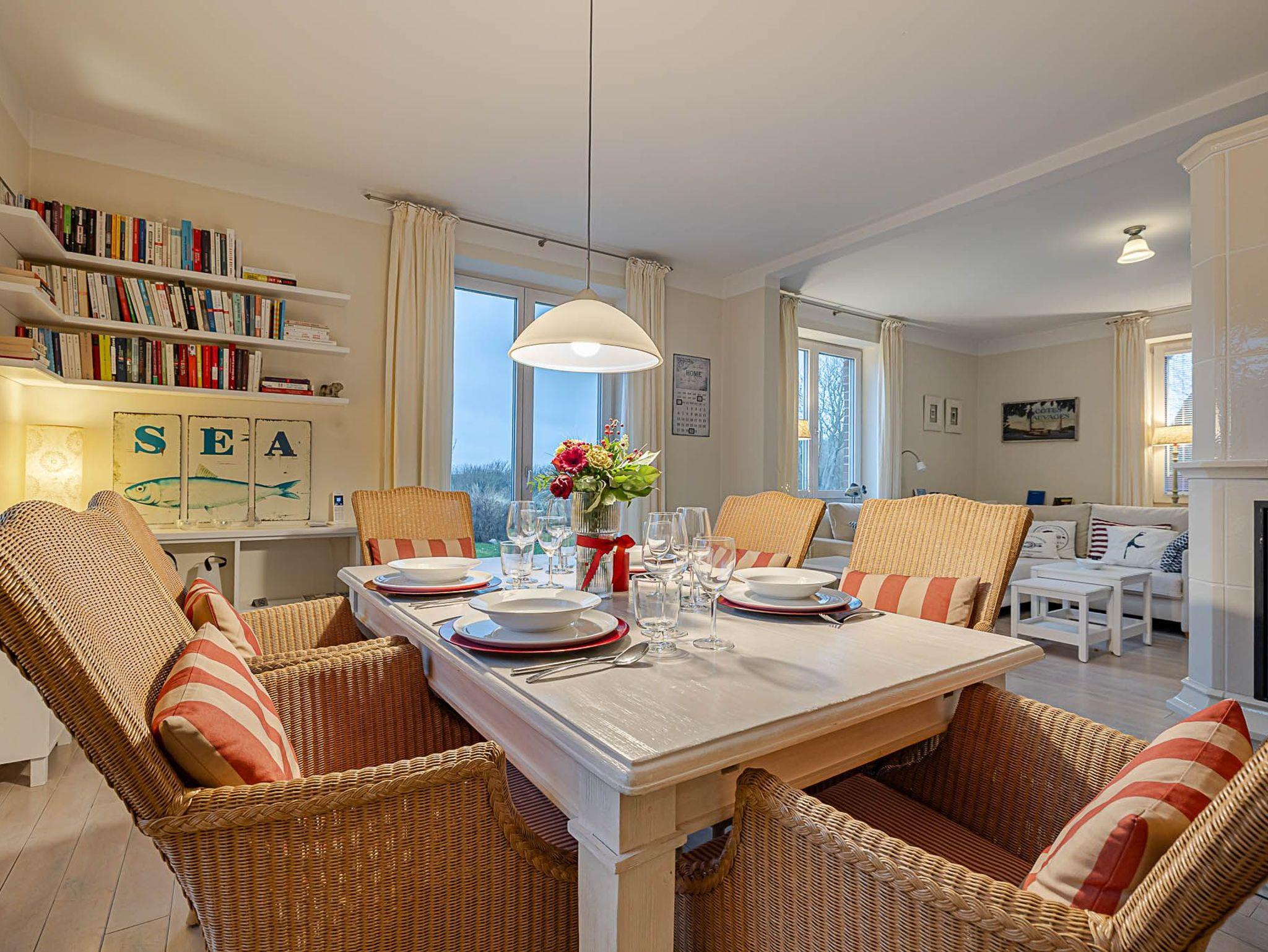 Das Haus ist für bis zu vier Personen ausgelegt und überzeugt durch eine durchdachte Raumaufteilung über zwei Ebenen. Der gemütliche Wohnbereich im Erdgeschoss mit Kamin schafft insbesondere in der kühleren Jahreszeit eine behagliche Atmosphäre und lädt zu entspannten Abenden ein.