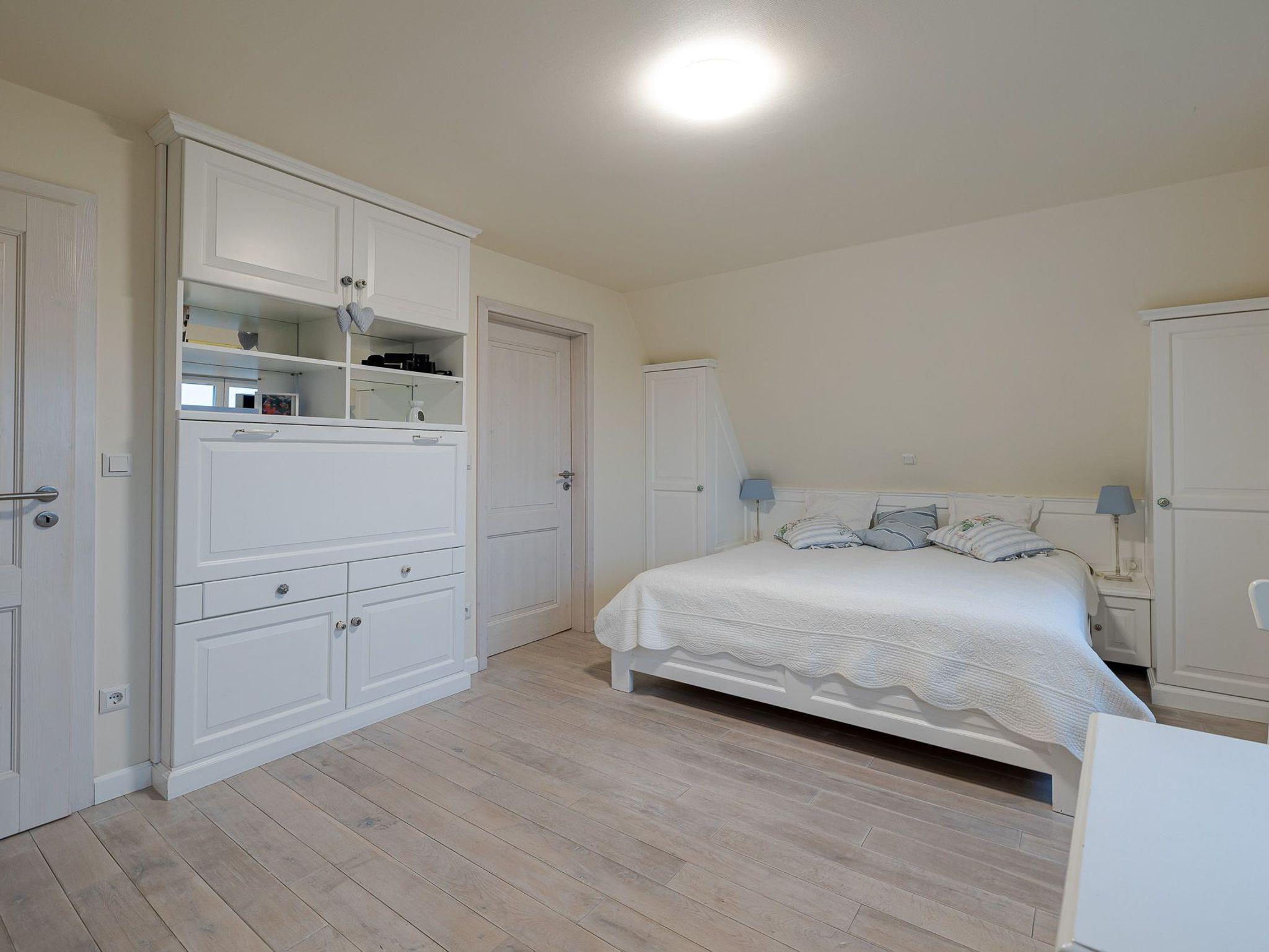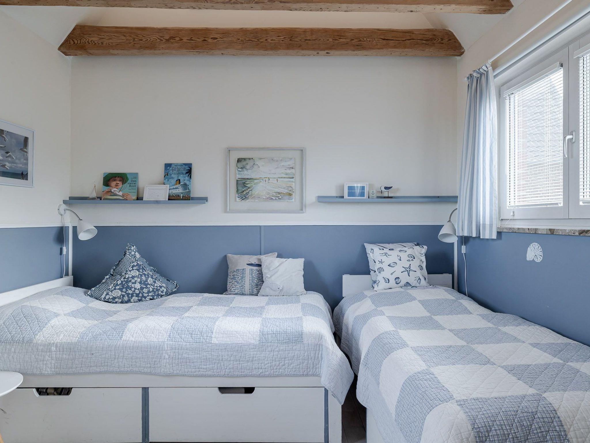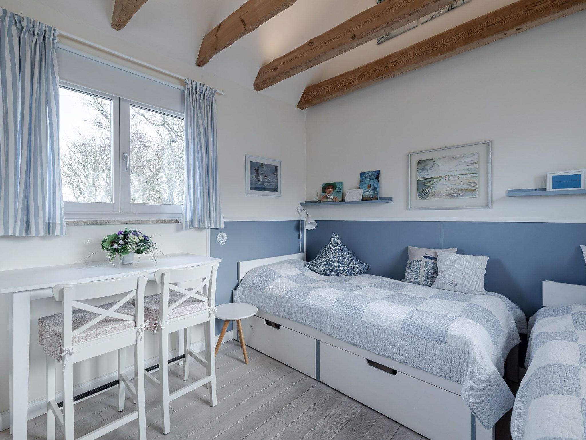 Im 1. Obergeschoss befindet sich das Hauptschlafzimmer mit angeschlossenem Bad en suite, das den Gästen einen privaten Rückzugsbereich bietet. Zusätzlich steht im Erdgeschoss ein separater Schlafbereich mit zwei Einzelbetten zur Verfügung, ebenfalls mit eigenem Bad ideal für Kinder, Freunde oder mitreisende Gäste, die Wert auf Privatsphäre legen.