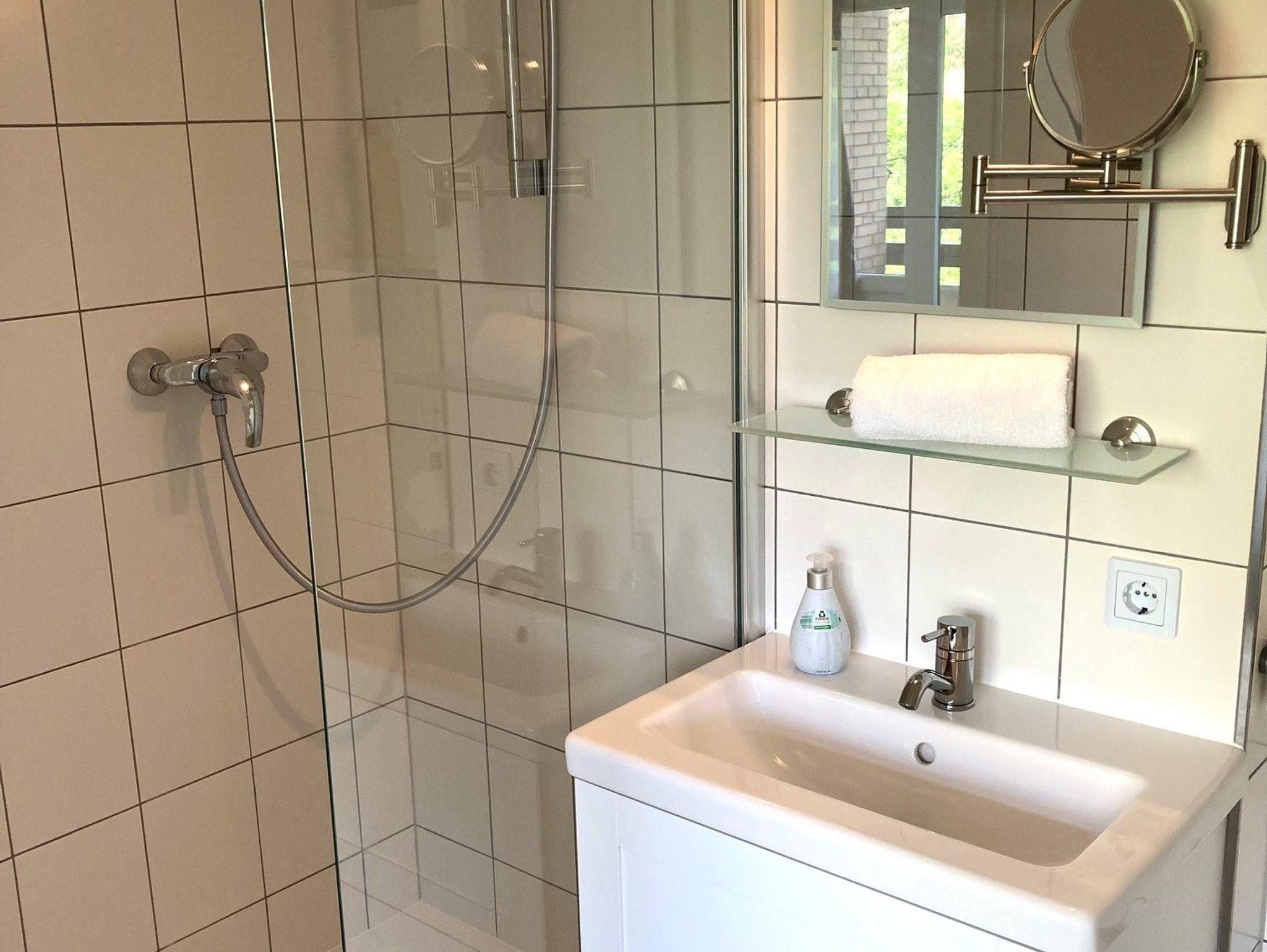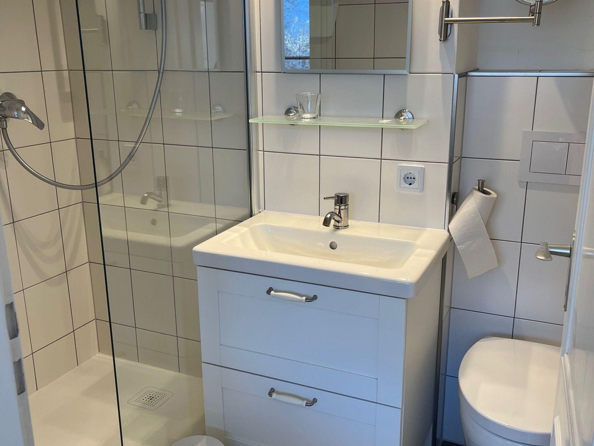Freundliches Badezimmer mit Dusche