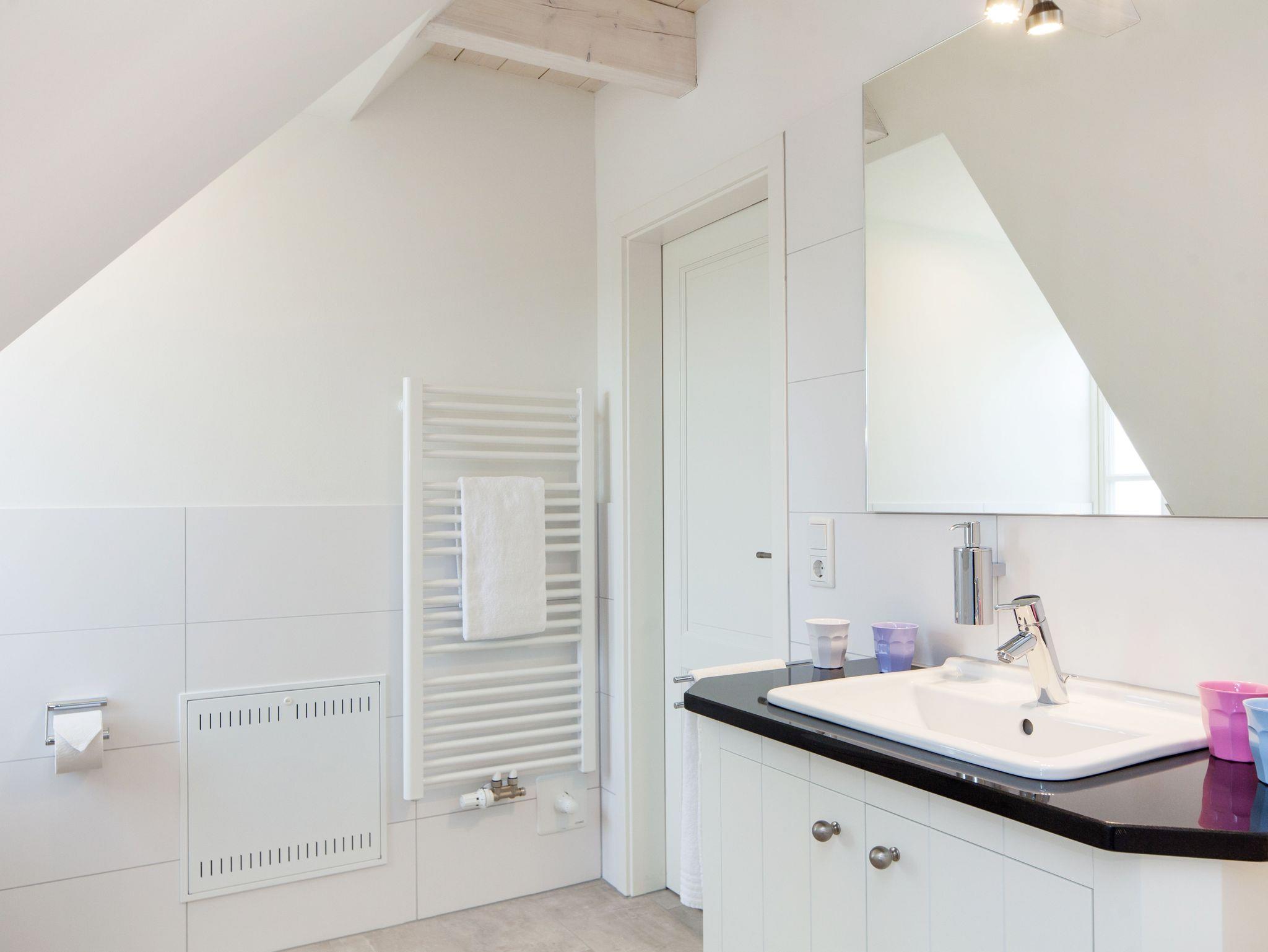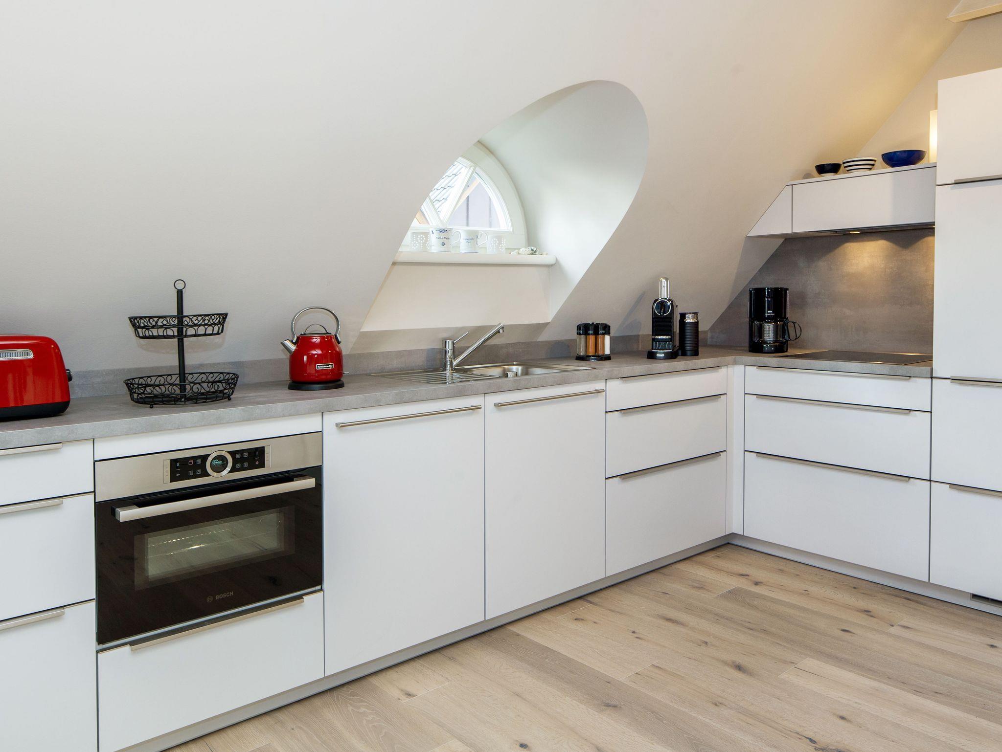 Die gesamte Unterkunft überzeugt mit ihrer ausgesuchten Innenausstattung, den gemütlichen Dachschrägen im oberen Bereich,den schönen Sprossenfenstern und dem Blick auf das Wattenmeer. Und weil das Apartment zusätzlich über einen kleinen Balkon verfügt, können Sie die nordseefrische Luft bereits „in“ den eigenen vier Wänden genießen. , Dazu gibt es einen Fahrradplatz zum anschließen und einen eigenen Parkplatz für Sie.