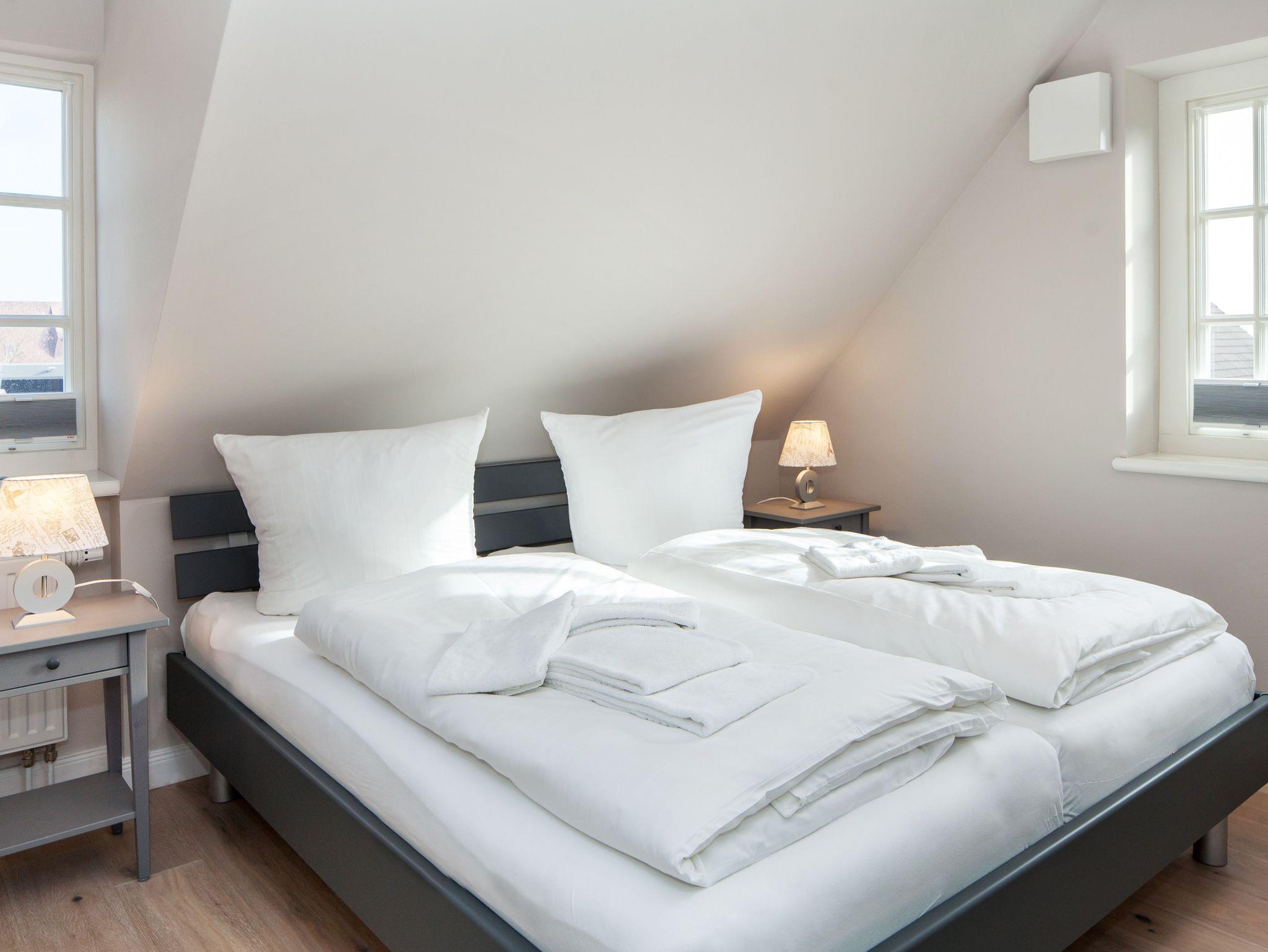 Die gesamte Unterkunft überzeugt mit ihrer ausgesuchten Innenausstattung, den gemütlichen Dachschrägen im oberen Bereich,den schönen Sprossenfenstern und dem Blick auf das Wattenmeer. Und weil das Apartment zusätzlich über einen kleinen Balkon verfügt, können Sie die nordseefrische Luft bereits „in“ den eigenen vier Wänden genießen. Dazu gibt es einen Fahrradplatz zum anschließen und einen eigenen Parkplatz für Sie.