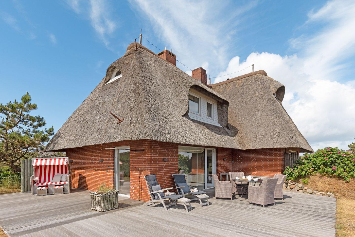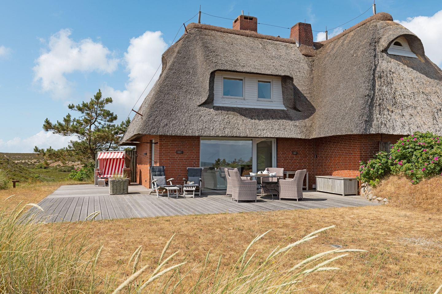 Modernes Feriendoppelhaus unter Reet für bis zu drei Personen mit Meerblick.