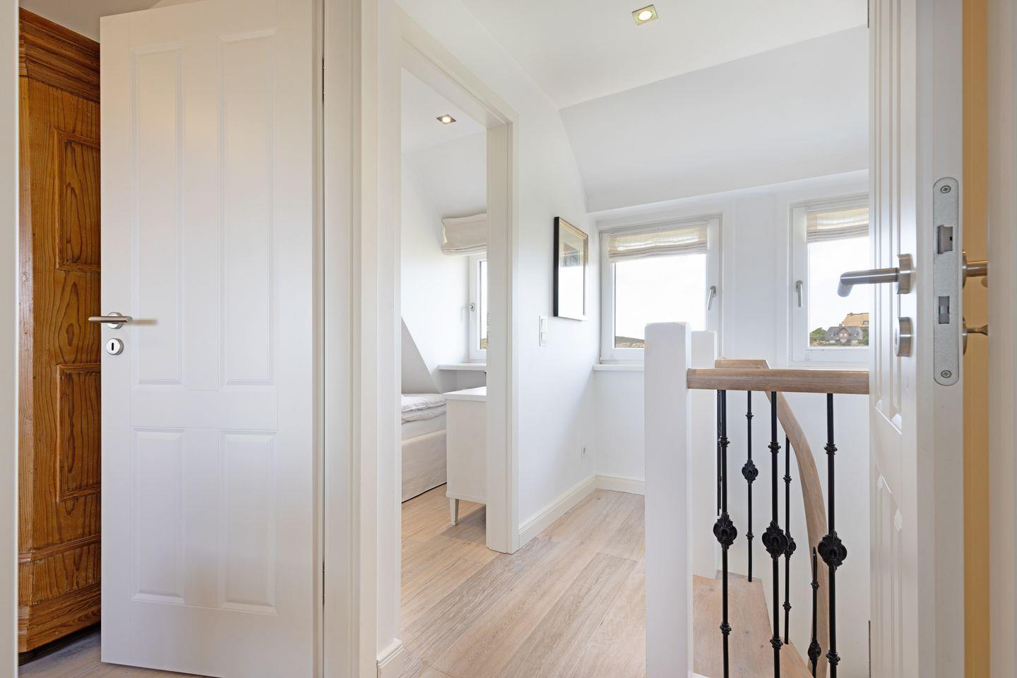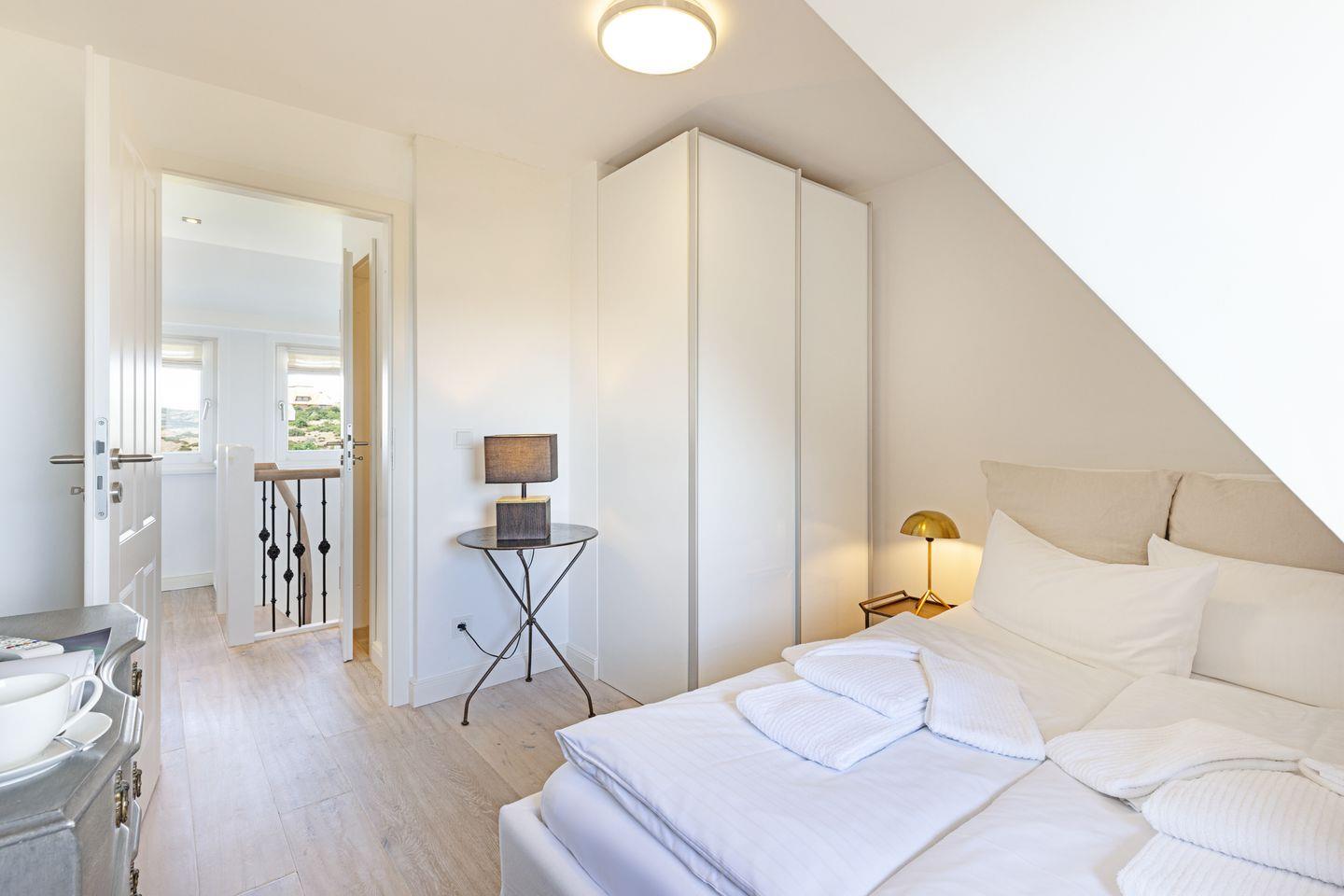 Im Obergeschoss finden Sie zwei Schlafzimmer mit Doppelbetten und ein Schlafzimmer mit einem Einzelbett.