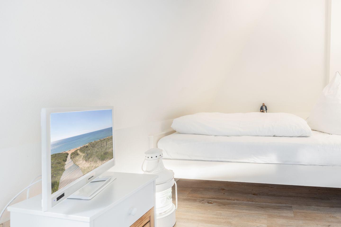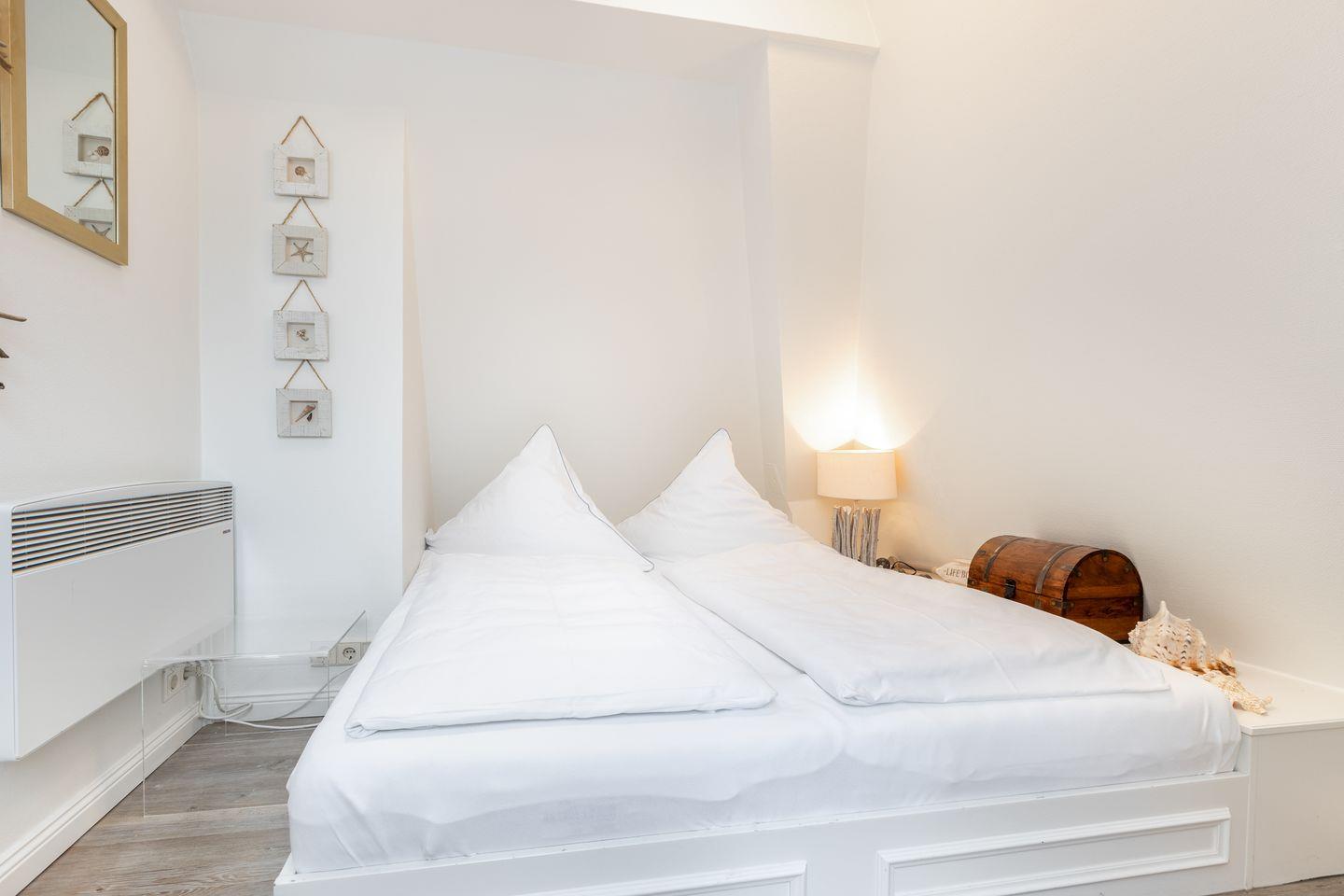 Obergeschoss: Im Obergeschoss empfängt Sie ein sehr schöner Masterbedroom mit Doppelbett (ca. 180cx200cm). Einfach fantastisch: Ihr Ausblick über das Lister Wattenmeer.