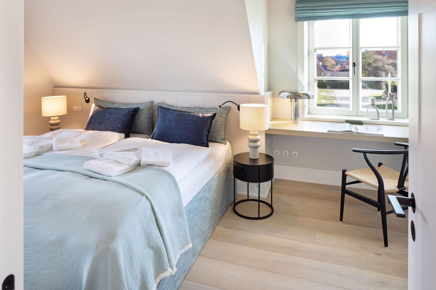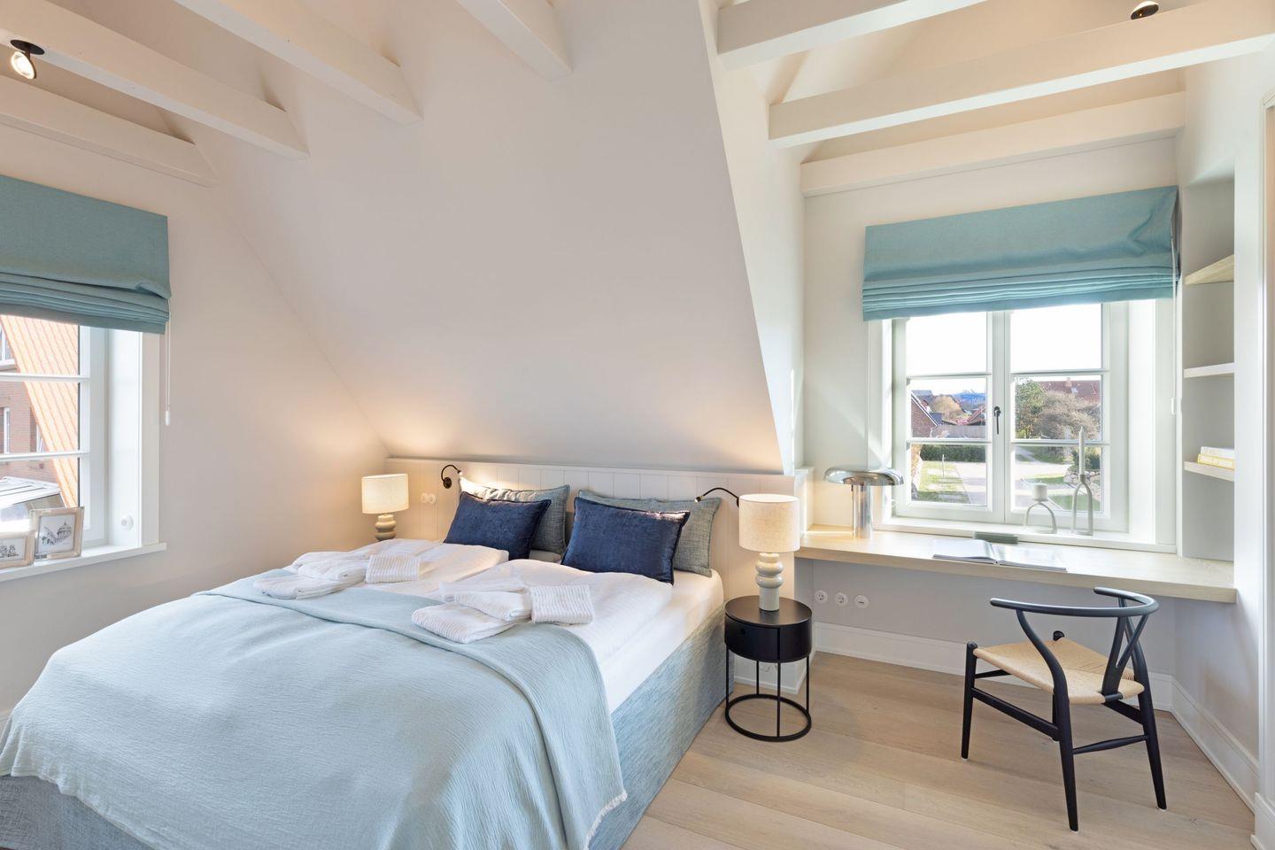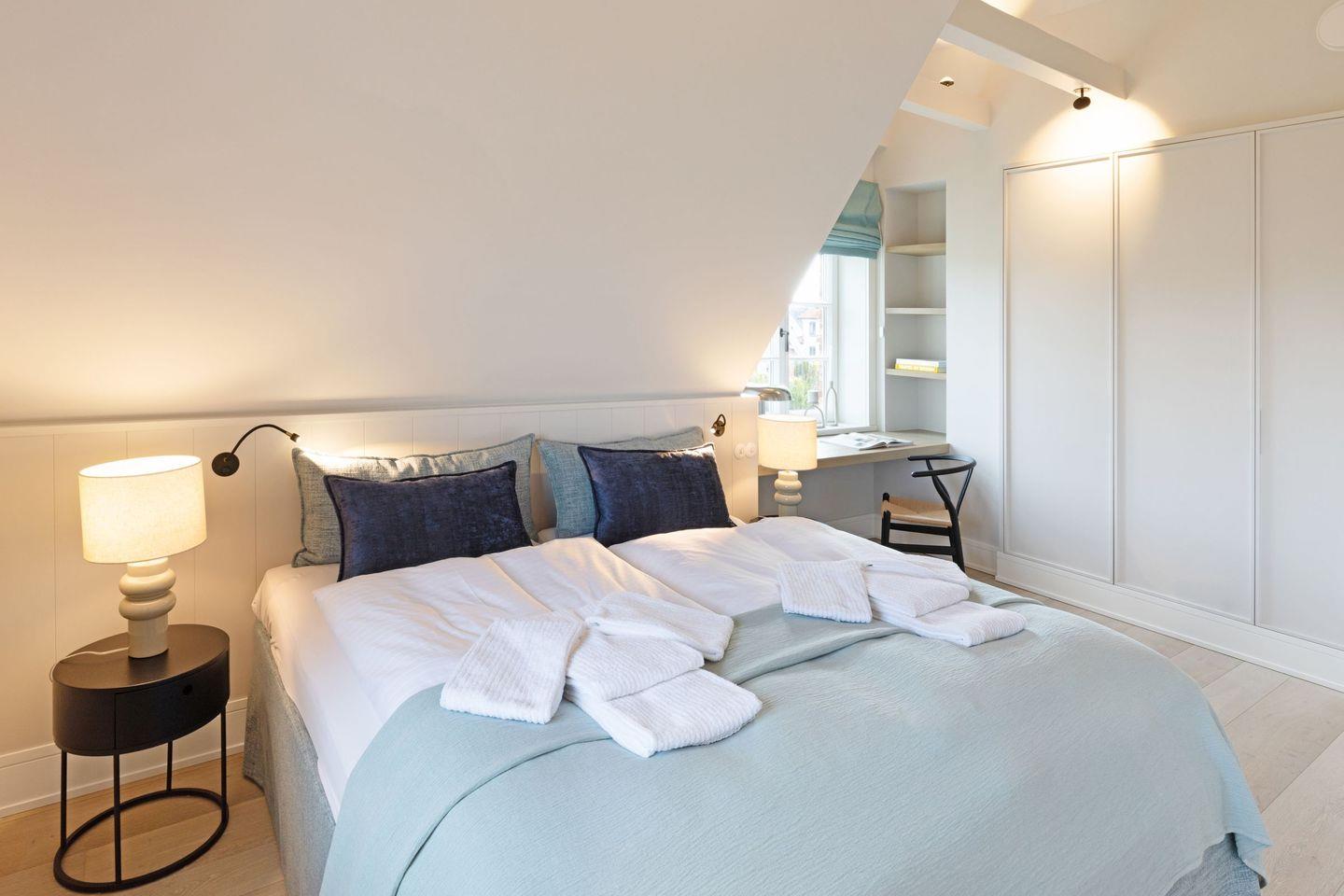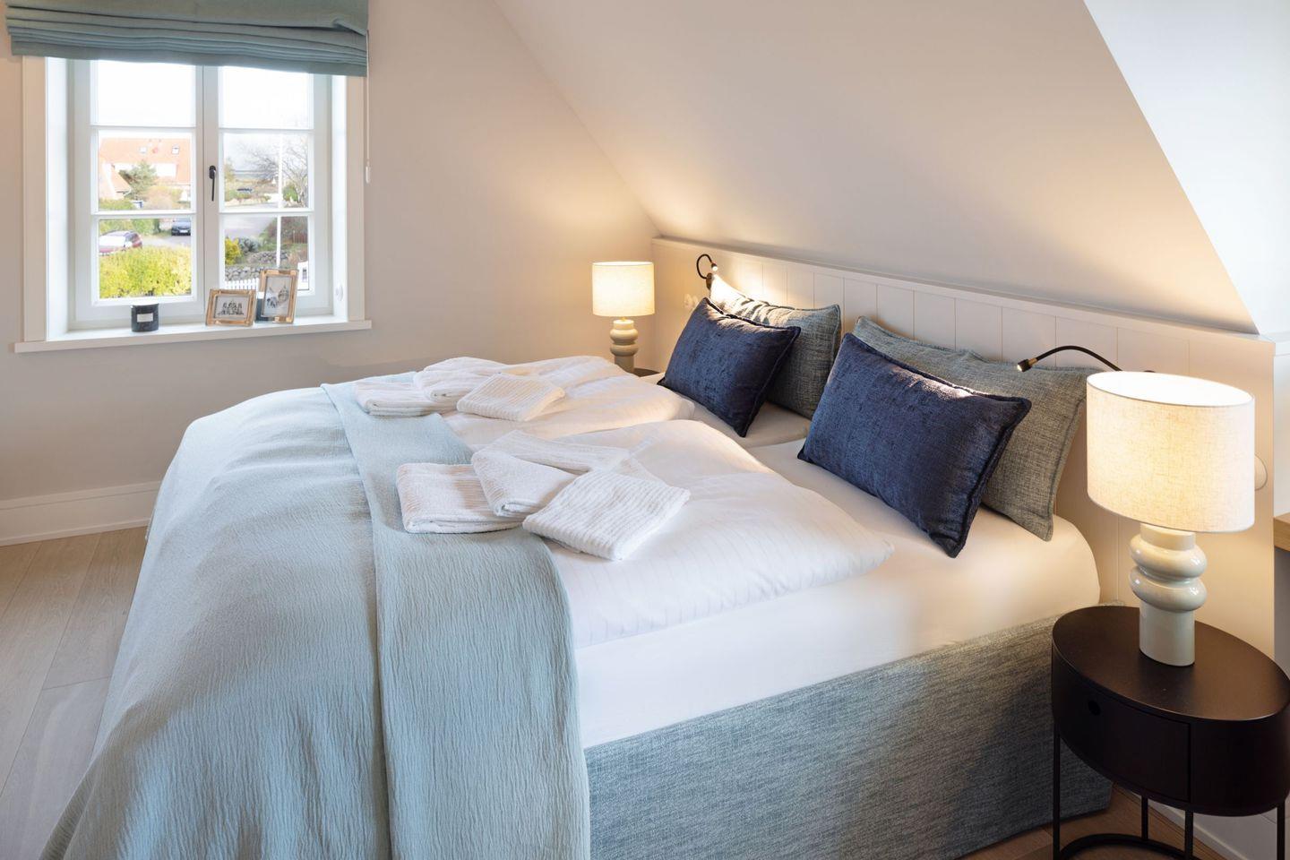 Im Dachgeschoss des Hauses finden sie zwei Schlafzimmer mit Doppelbett und Fernseher.