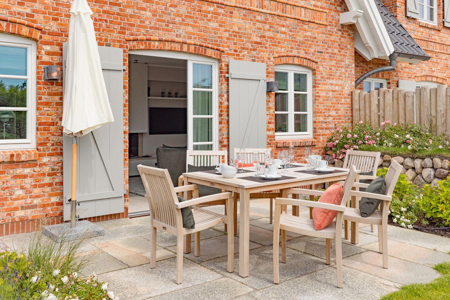 Gartenmöbel und ein Strandkorb stehen Ihnen saisonal begrenzt zur Verfügung.