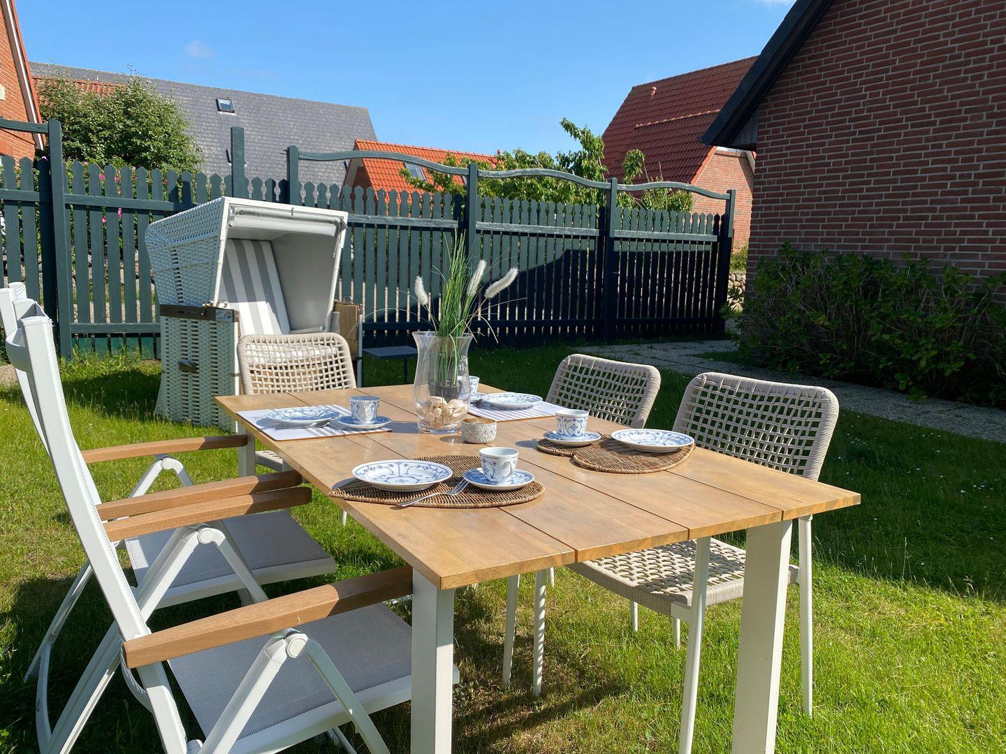 Ein Privatparkplatz, ein Garten mit Liegewiese, Strandkorb und Schaukel sowie Haustiererlaubnis sorgen für einen angenehmen Aufenthalt in fußläufiger Nähe zum Meer.