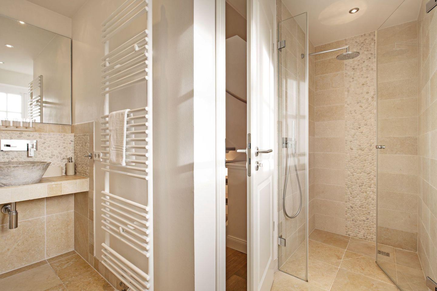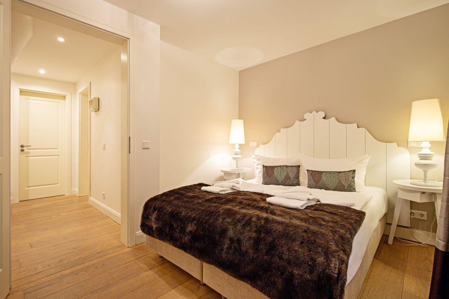 Die beiden Schlafzimmer verfügen jeweils über Laminatboden und bieten angenehme Rückzugsmöglichkeiten für die Nacht. Beide Badezimmer sind modern gestaltet und verfügen über bodengleiche Regenduschen sowie eine Badewanne. Für zusätzlichen Komfort sorgen Haartrockner, Spiegel und Fenster in den Badezimmern. Waschmaschine, Bügelbrett, Bügeleisen, Staubsauger und Wäscheständer stehen zur Eigennutzung bereit.