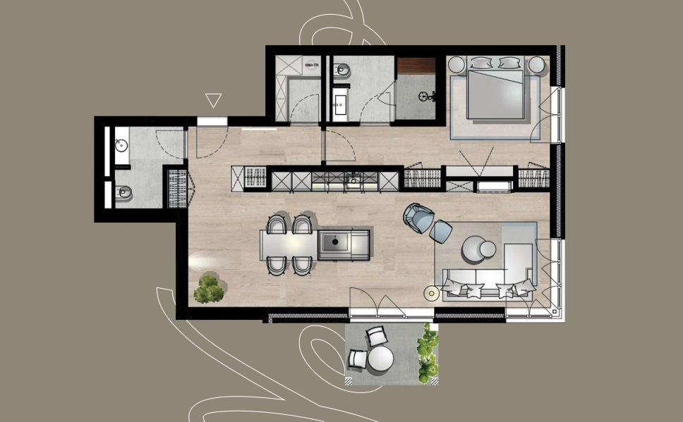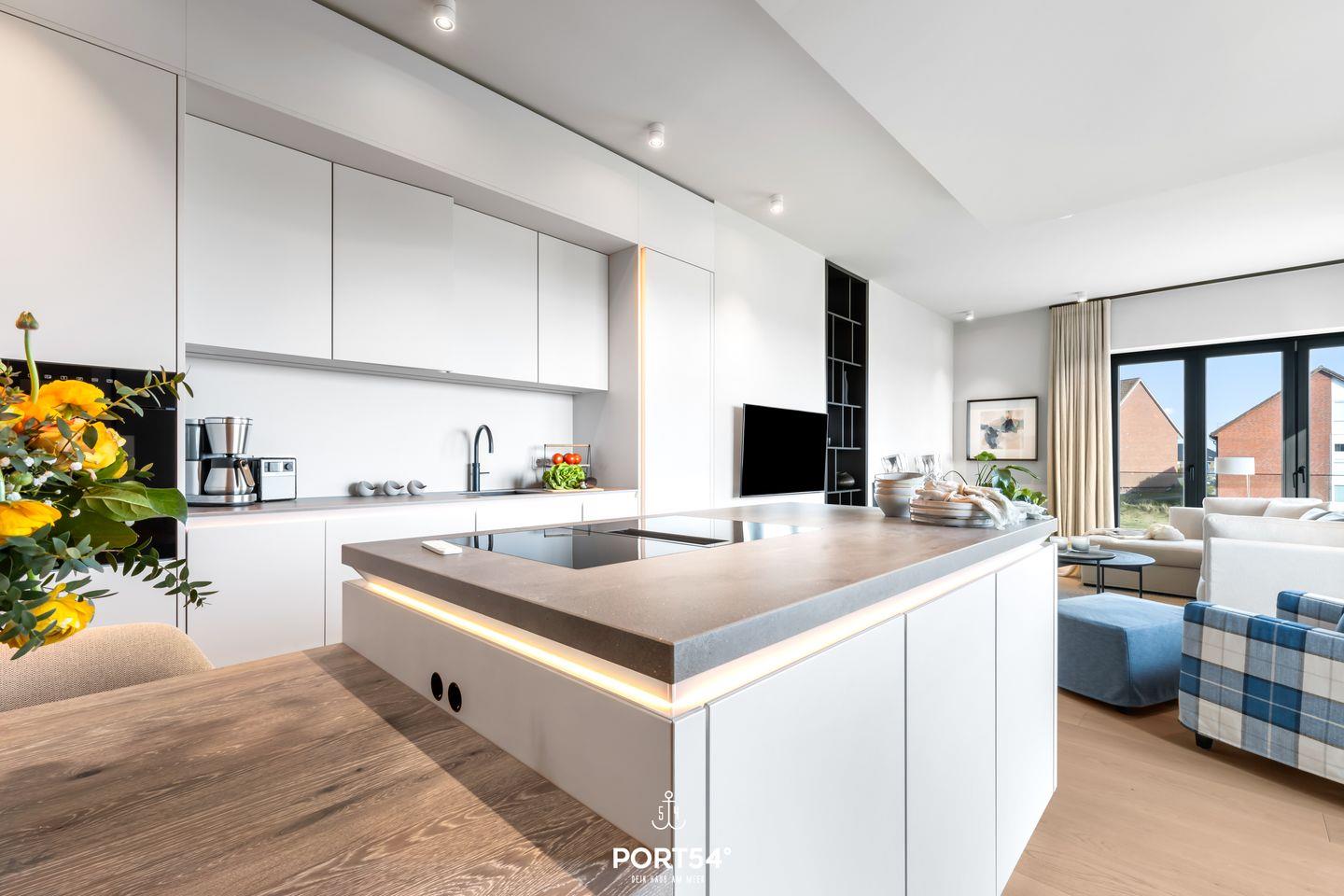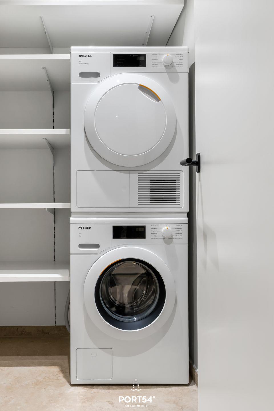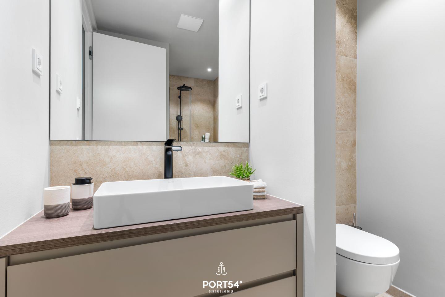 Ein offener Wohnbereich mit großzügiger Sofaecke, Ethanol-Kamin und Esstisch lädt zum Verweilen ein und bietet einen perfekten Ort für gesellige Abende. Die voll ausgestattete offene Küche von SieMatic punktet mit modernen Geräten wie einem Induktionsherd, Backofen, Kühlschrank, Spülmaschine und einem Weinkühlschrank. Hier kannst du kreative Gerichte zubereiten oder einfach das Frühstück auf dem Balkon genießen, während du die frische Meeresbrise einatmest. Außerdem findest du in der Küche einen Quooker, mit dem sich problemlos heißes Wasser sowie Sprudelwasser erzeugen lässt.