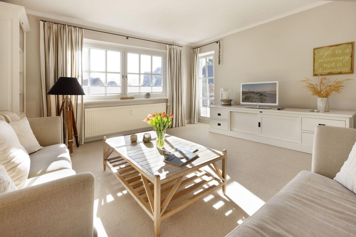 Erleben Sie unvergessliche Urlaubstage auf Sylt in unserer stilvollen Ferienwohnung La Mer, nur wenige Schritte von der Nordsee entfernt. Die Wohnung überzeugt durch gemütliches Ambiente, moderne Ausstattung und eine ruhige, zentrale Lage.