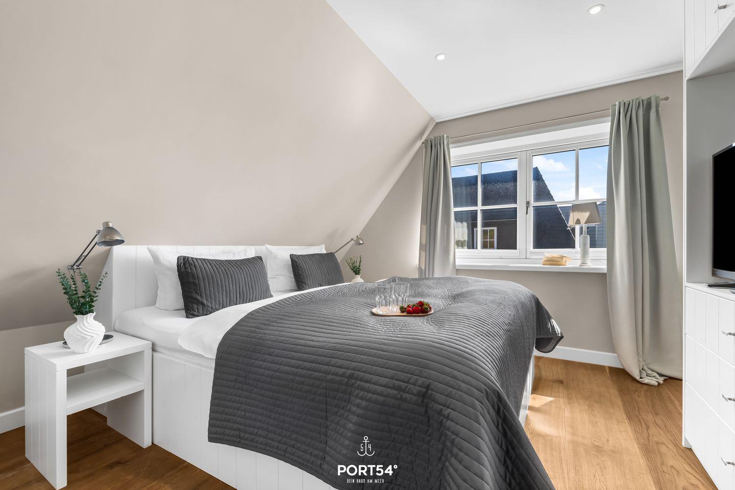 Ein besonderes Highlight des Hauses ist der private Wellnessbereich mit Sauna und Ruheraum. Nach einem langen Spaziergang am Königshafen, einer Fahrradtour über die Insel oder einem Tag am Meer bietet dieser Bereich ideale Entspannung. Die beiden modernen Badezimmer verfügen über großzügige, bodengleiche Duschen und Fenster für angenehmes Tageslicht. Für längere Aufenthalte stehen außerdem Waschmaschine und Trockner zur Verfügung. Bettwäsche, Handtücher und Geschirrhandtücher werden gestellt.