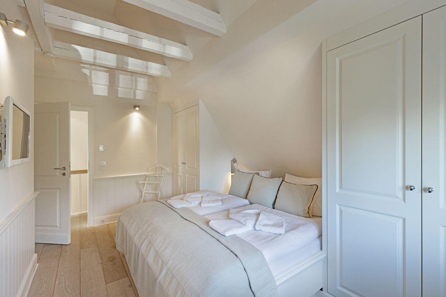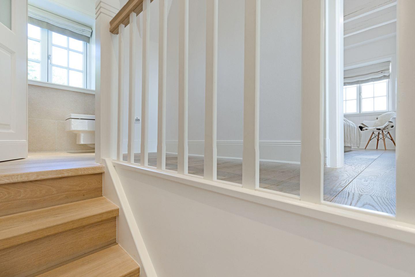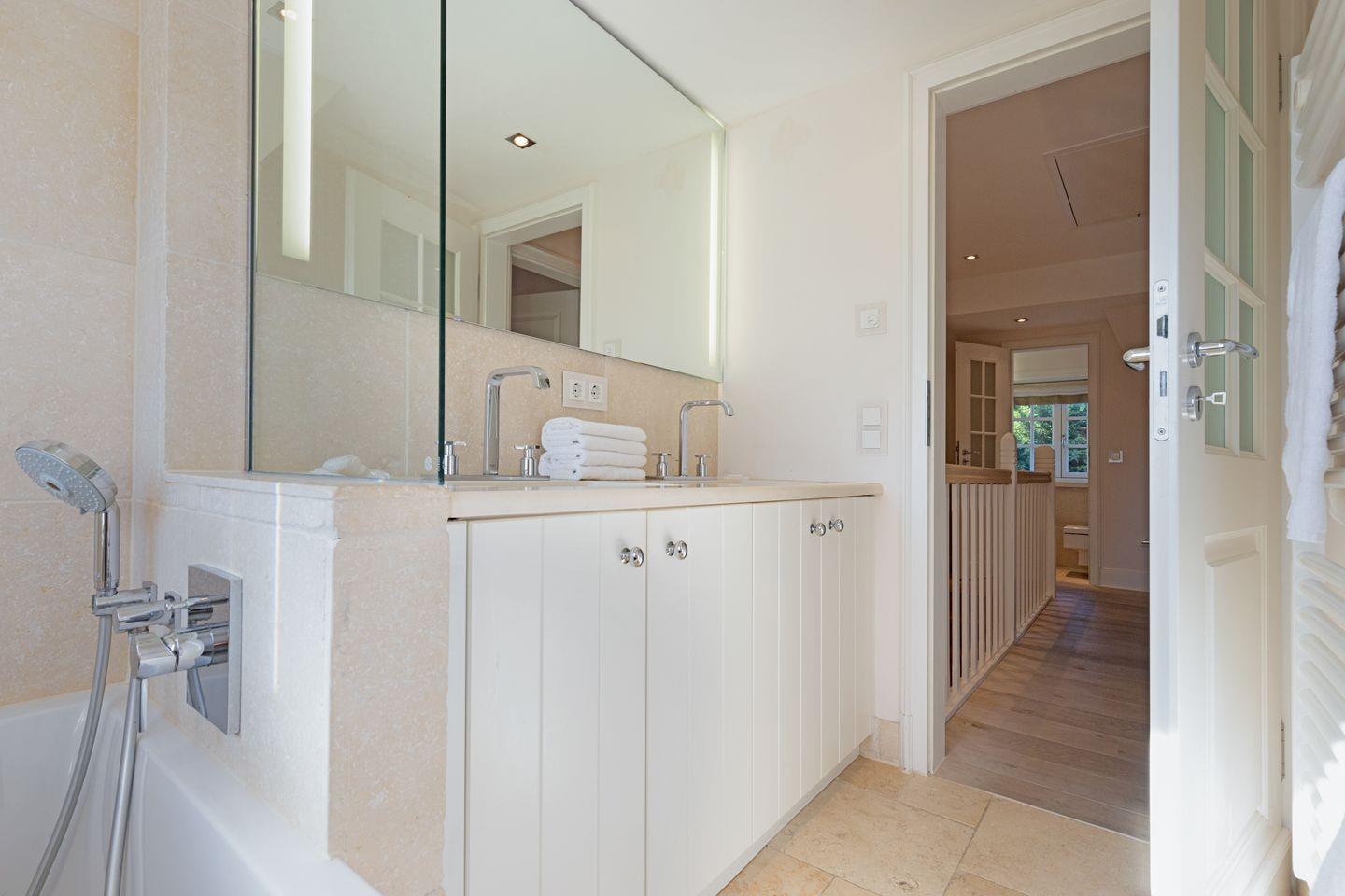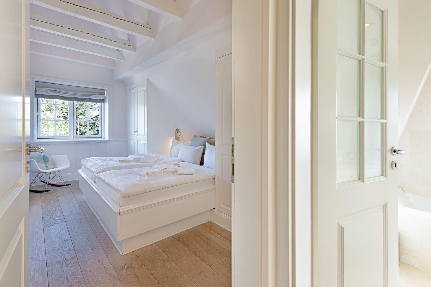 Im 1. Stock befinden sich zwei Schlafzimmer, jeweils mit Doppelbett und einem Badezimmer mit einer Wanne und ein Gäste-WC.