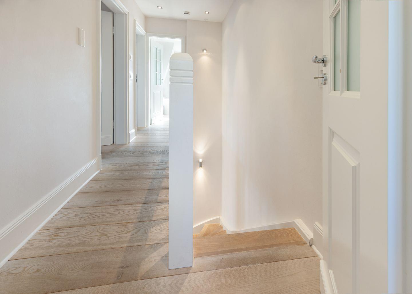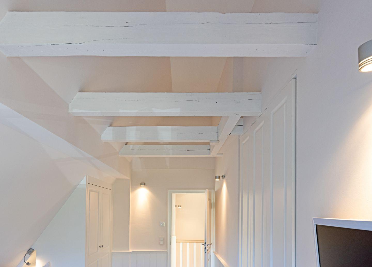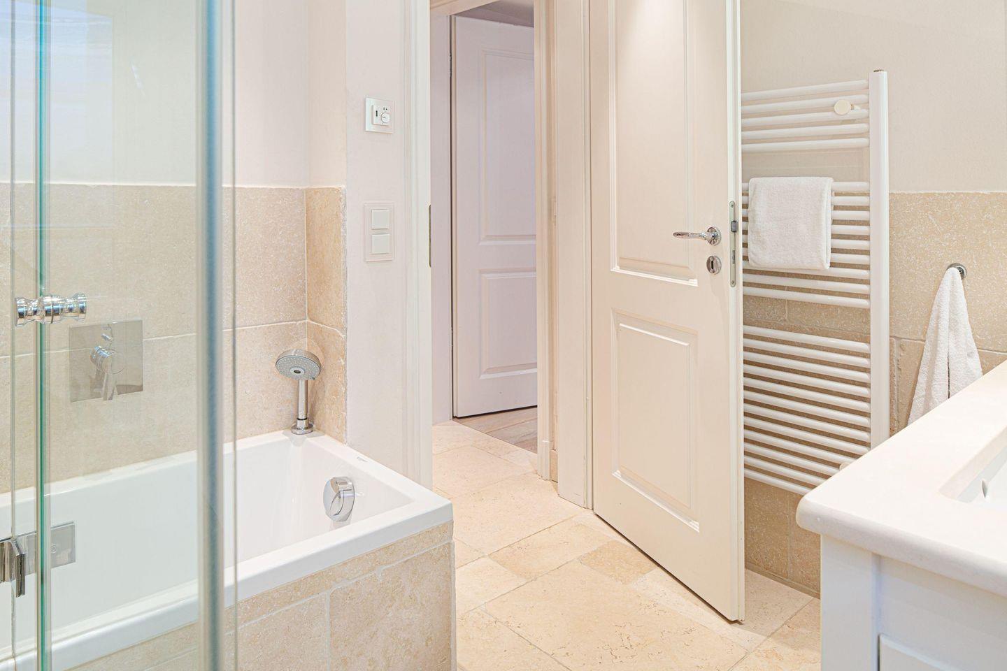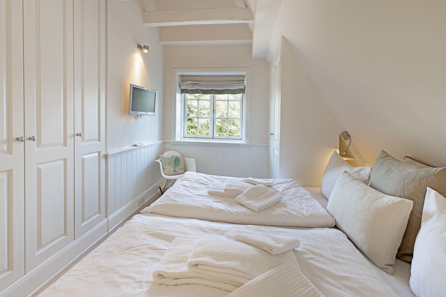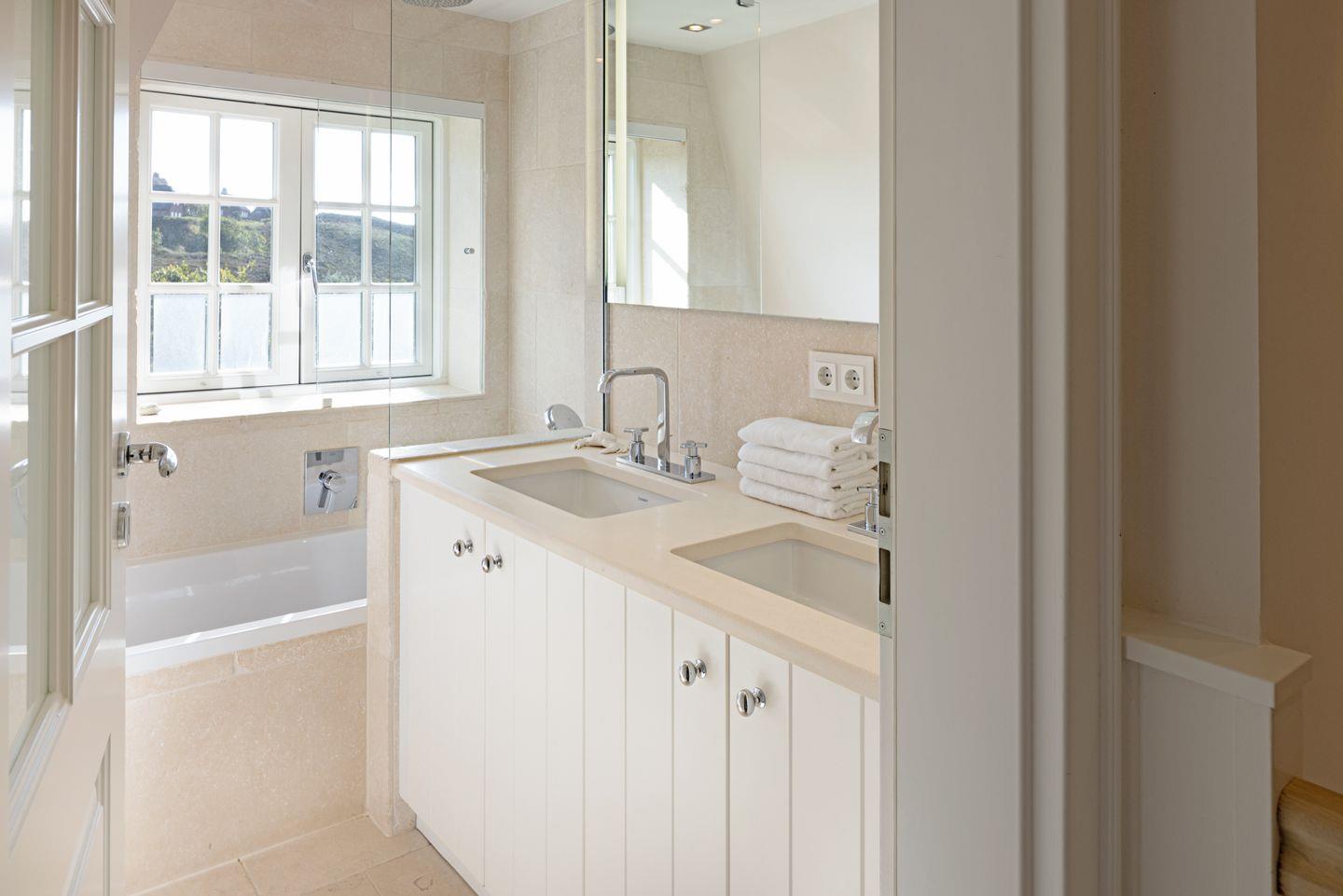 Im 1. Stock befinden sich zwei Schlafzimmer, jeweils mit Doppelbett und einem Badezimmer mit einer Wanne und ein Gäste-WC.
