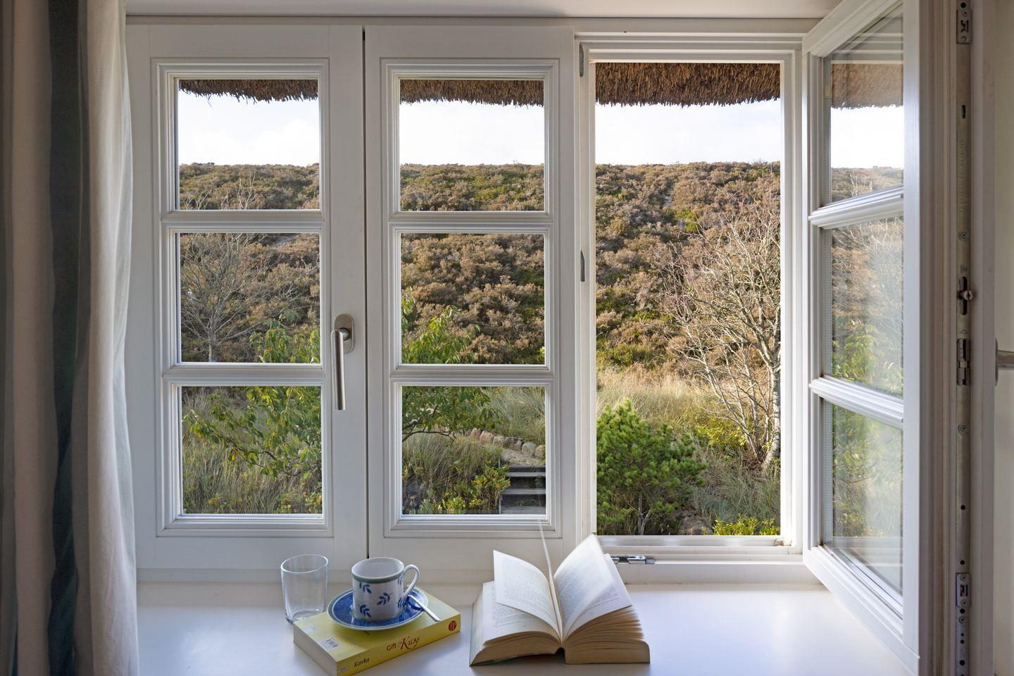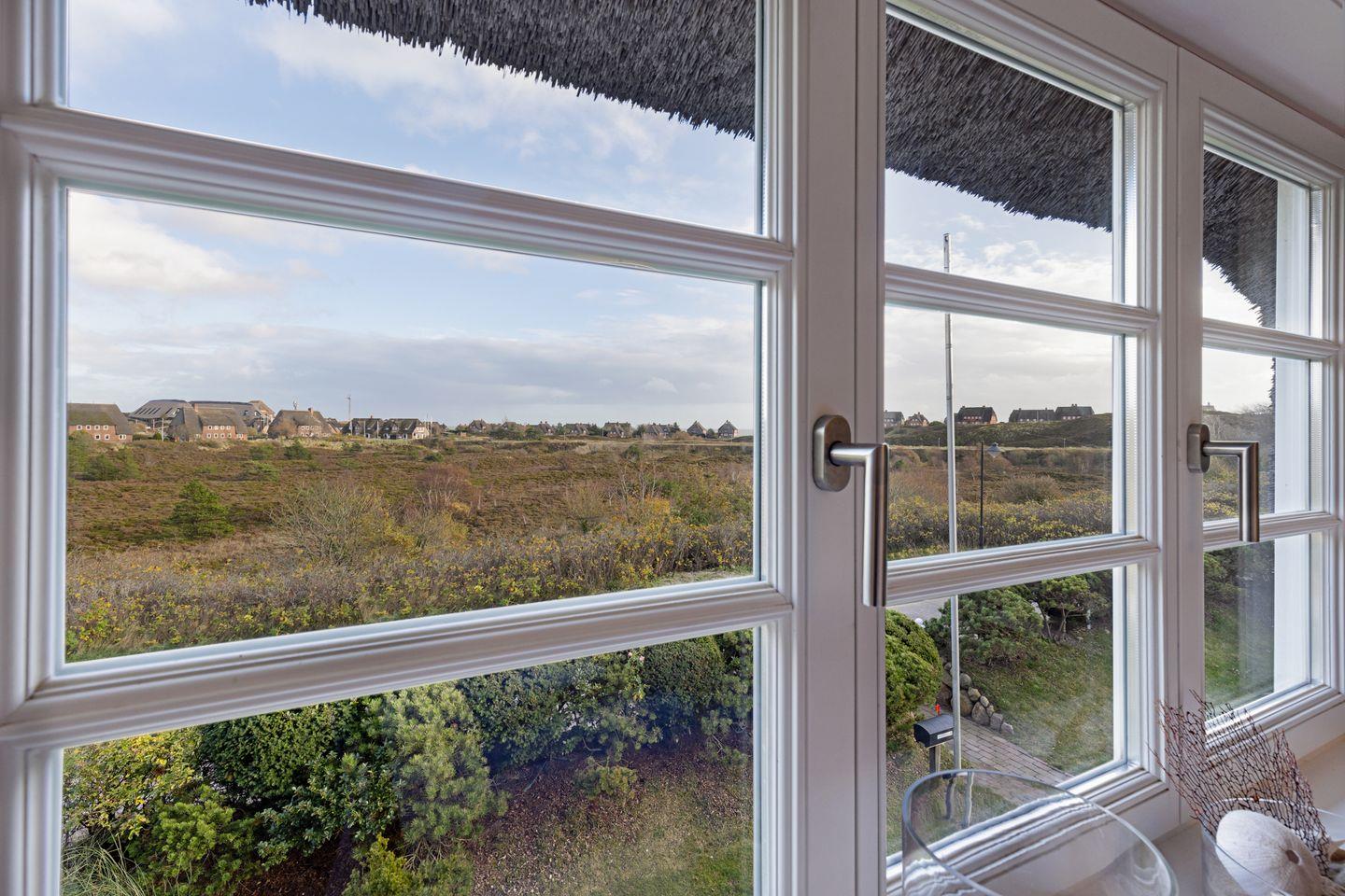 Aus dem Wohnzimmer hat man einen herrlichen Blick über das Heidetal.