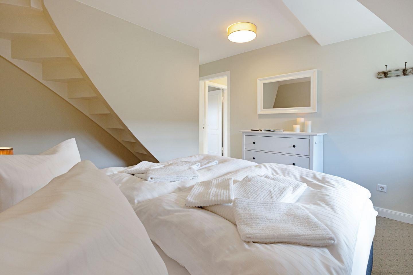 Das dritte neu renovierte Schlafzimmer mit Doppelbett und das zweite Badezimmer finden Sie im Souterrain.