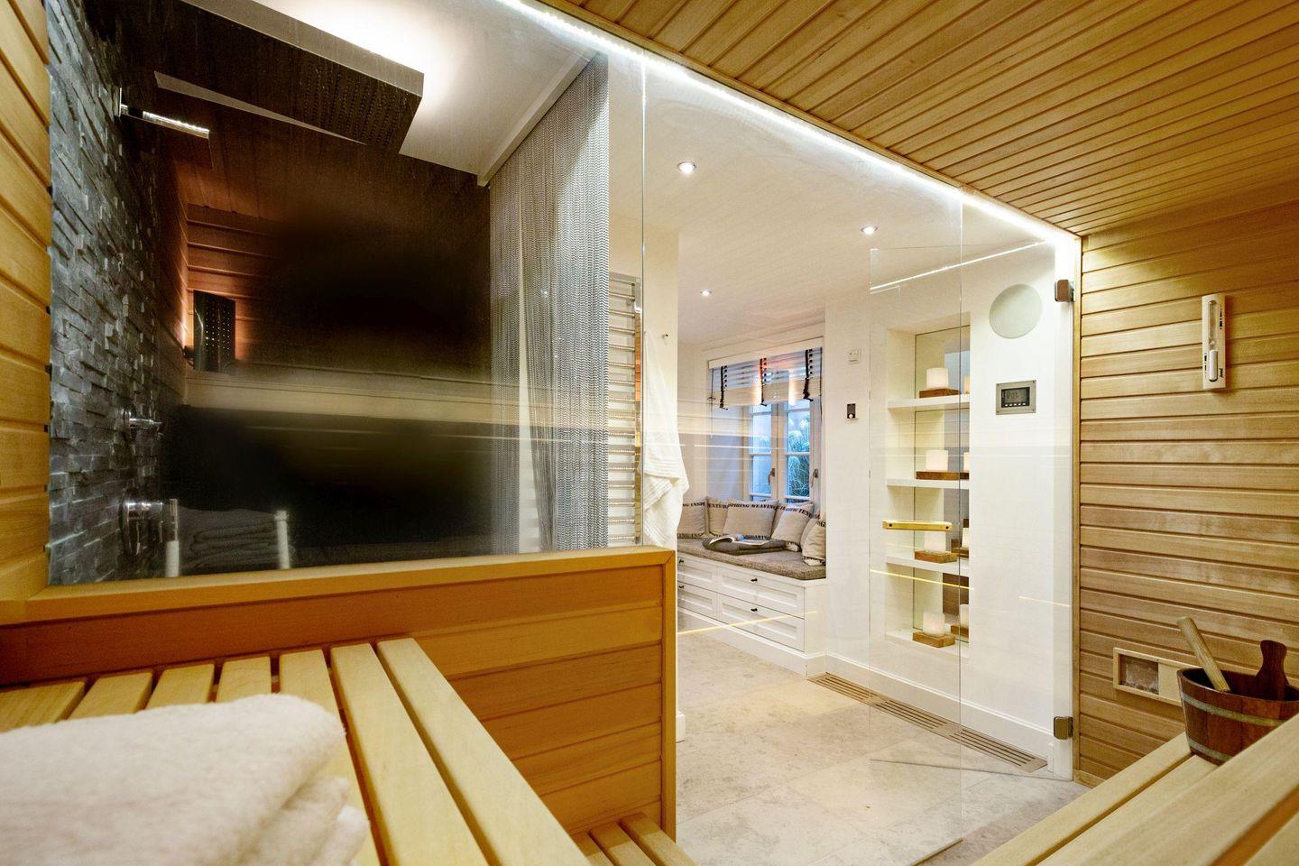 In der Sauna im UG können Sie auch an kälteren Tagen herrlich entspannen, hier steht Ihnen ein weitere Dusche und ein Gäste-WC zur Verfügung. Waschmaschine und Trockner sind vorhanden.