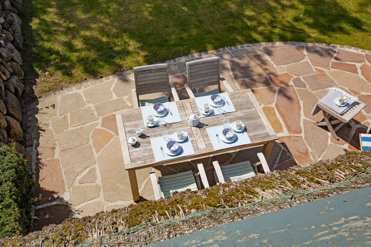 Vom Esstisch aus können Sie Ihren Blick durch den schön angelegten Garten schweifen lassen.