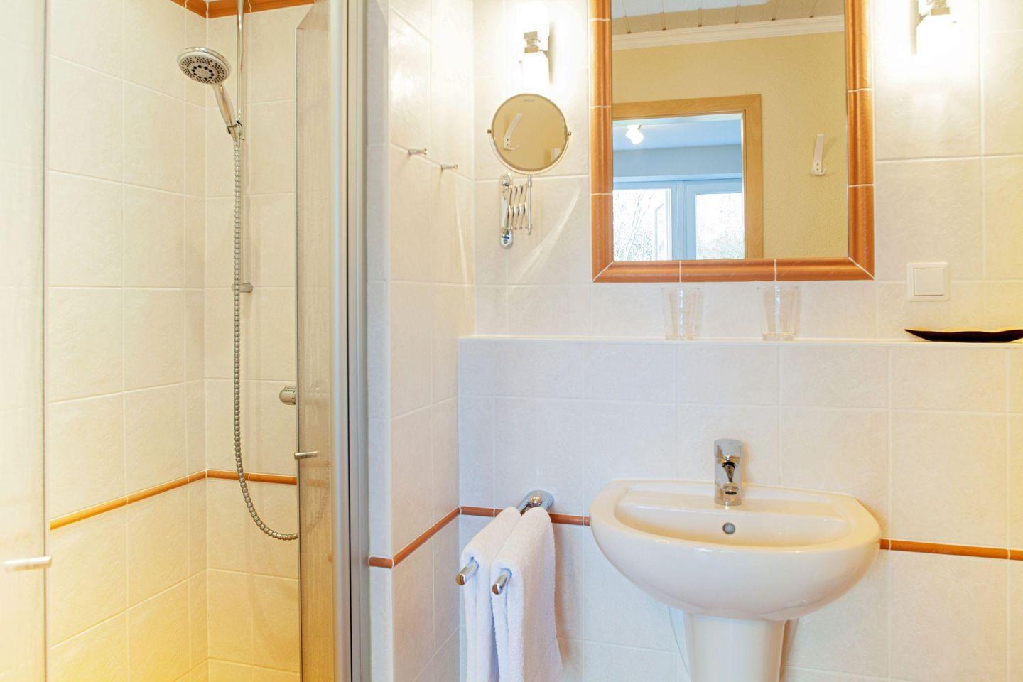 Im Parterre befindet sich die Küche, eine Gäste-Toilette, ein Esszimmer und ein Wohnzimmer mit Terrassenausgang. Zusätzlich ein kleines ein Zimmer-Appartement mit Auszieh-Couch für zwei Personen von außen zugänglich, mit separater Küchen-Pantry und WC mit Dusche. Im 1.OG befindet sich ein großes Schlafzimmer mit begehbarem Kleiderschrank, sowie ein weiteres Schlafzimmer mit Doppelbett und mit Baden-Suite. Zusätzlich haben sie noch ein zweites Duschbad auf gleicher Ebene. Unter dem Dach befindet sich ein weiteres Doppelbett-Schlafzimmer und ein Wannenbad mit WC. Die Außenanlage der Bachstelze ist sehr großzügig und lädt zum Verweilen ein.