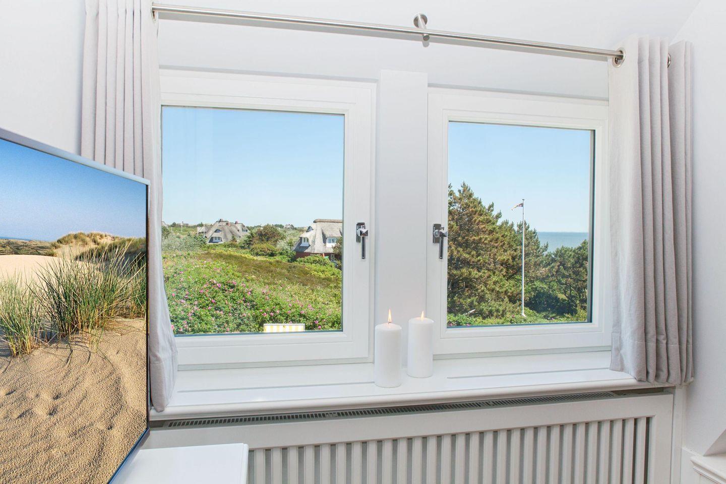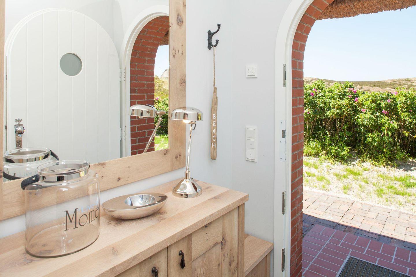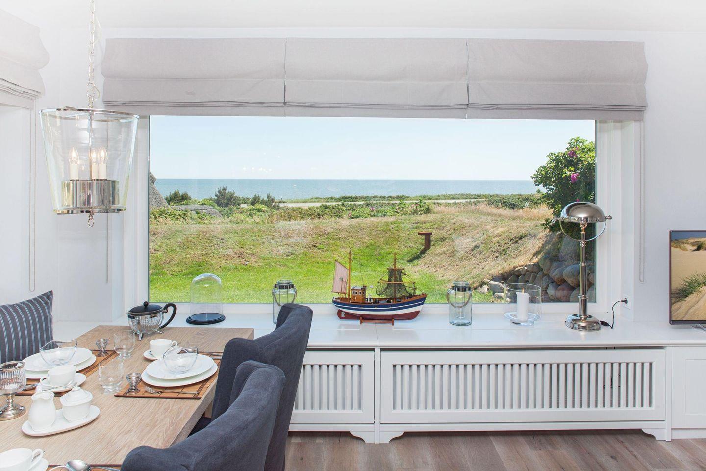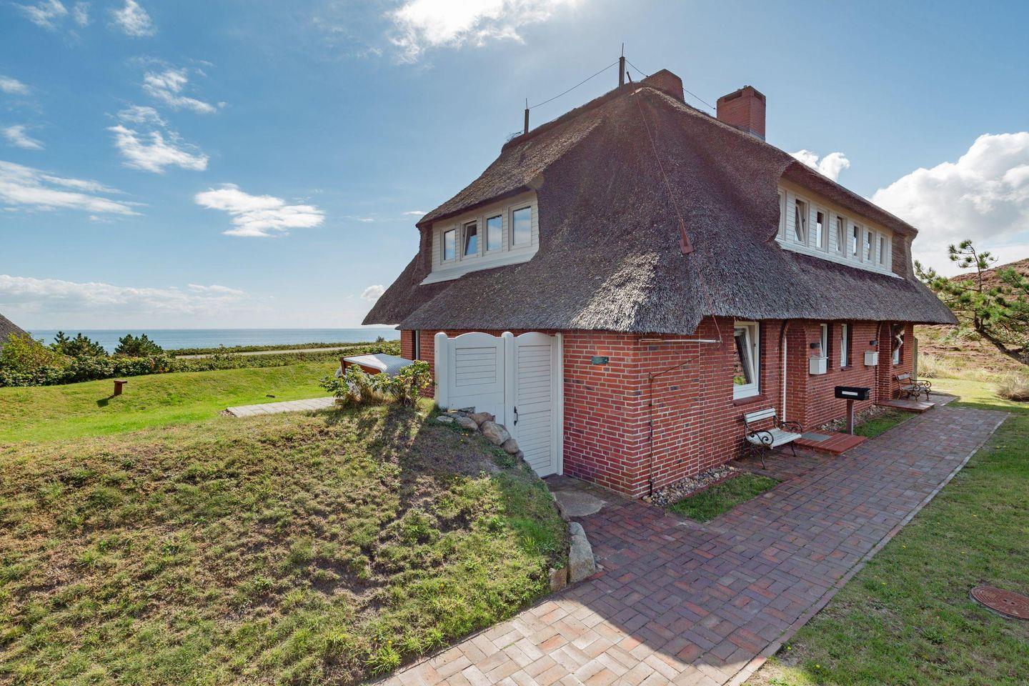 Durch die großen Panorama-Fenster können Sie Ihren Blick über das Wattenmeer schweifen lassen. Neben dem Duschbad und dem extra Gäste-WC steht Ihnen im EG eine eigene kleine Sauna zur Verfügung. Der weite Garten mit Terrasse ist mit Gartenmöbeln und zwei Strandkörben (saisonal begrenzt) ausgestattet. Mehr Meerblick geht nicht... Grillen und offenes Feuer sind im Garten und anliegendem Gelände streng verboten. Sie wohnen in einem reetgedeckten Ferienhaus.