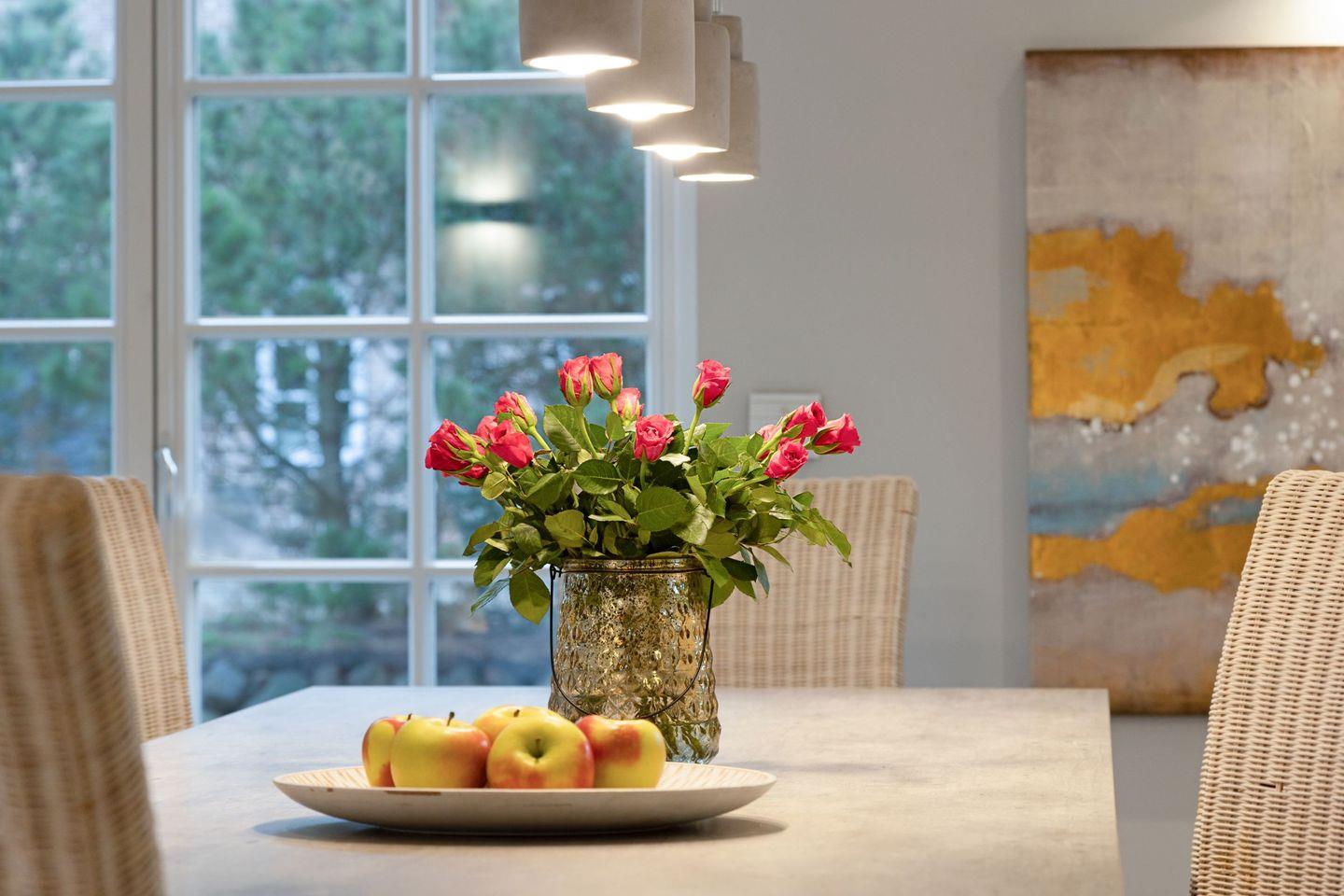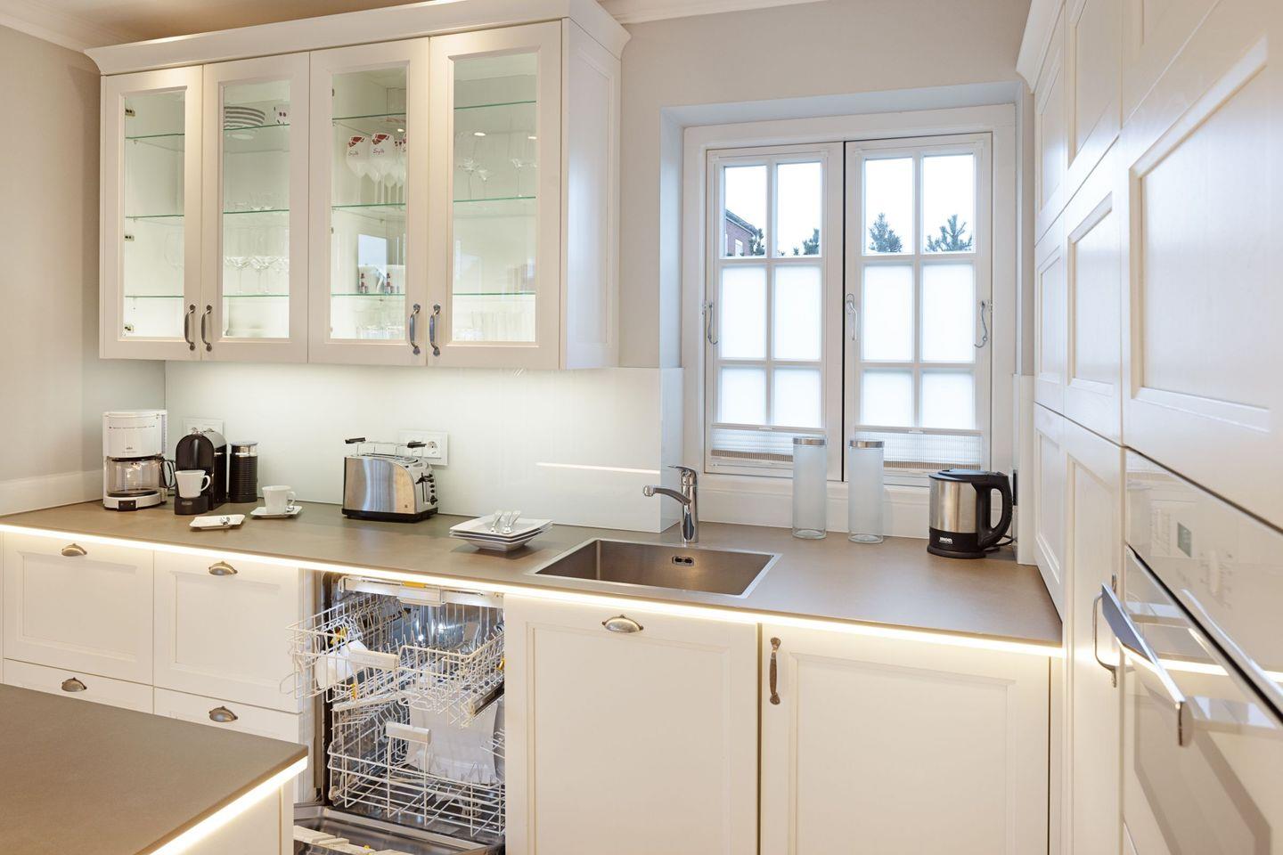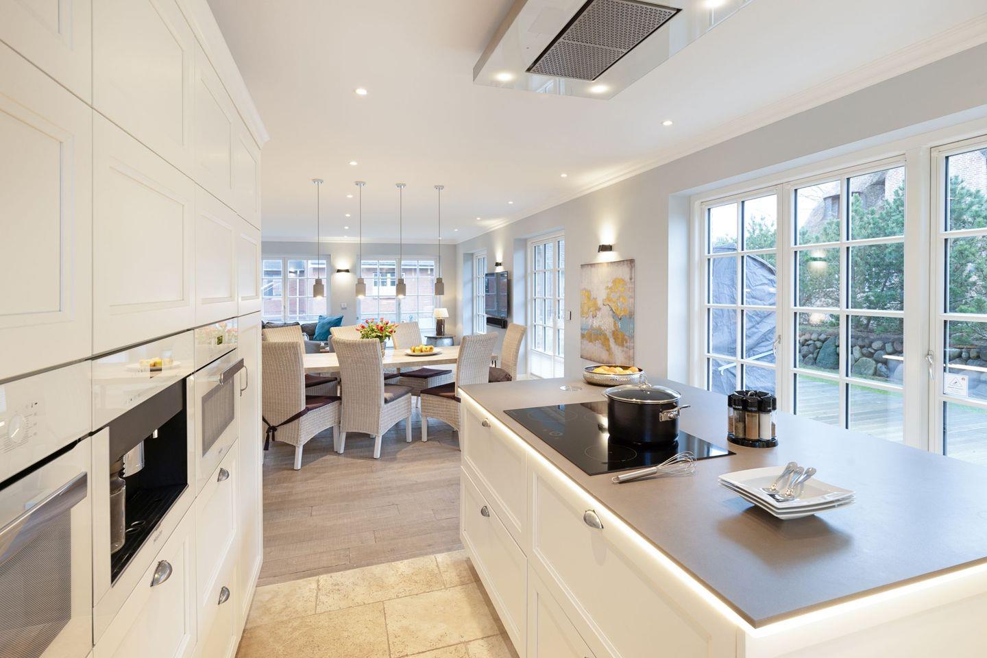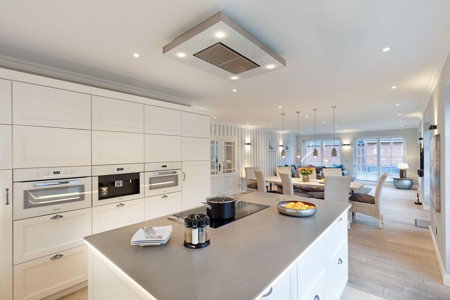 Die voll ausgestattete, offene Küche bietet alles, was Sie zum Zubereiten von köstlichen Mahlzeiten benötigen: vom Induktionsherd über einen Backofen bis hin zu einer Spülmaschine. Ein Espresso-Vollautomat sowie eine Mikrowelle stehen Ihnen ebenfalls zur Verfügung. So wird das Kochen zum Genuss, den Sie an einem großen Esstisch gemeinsam auskosten können.