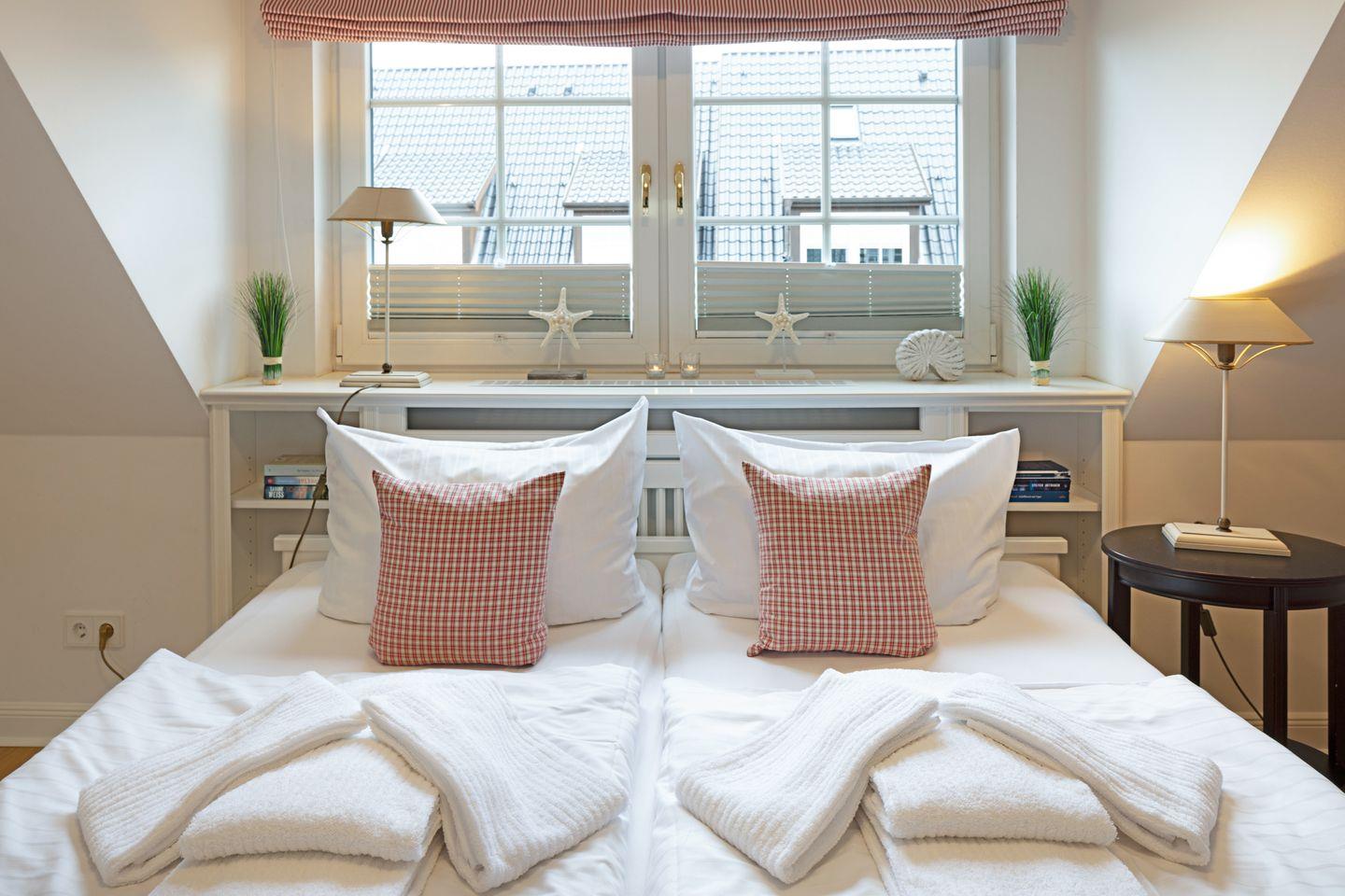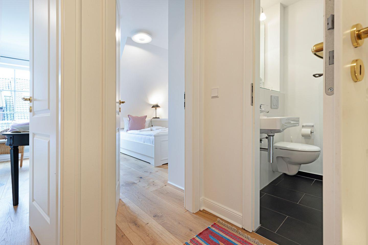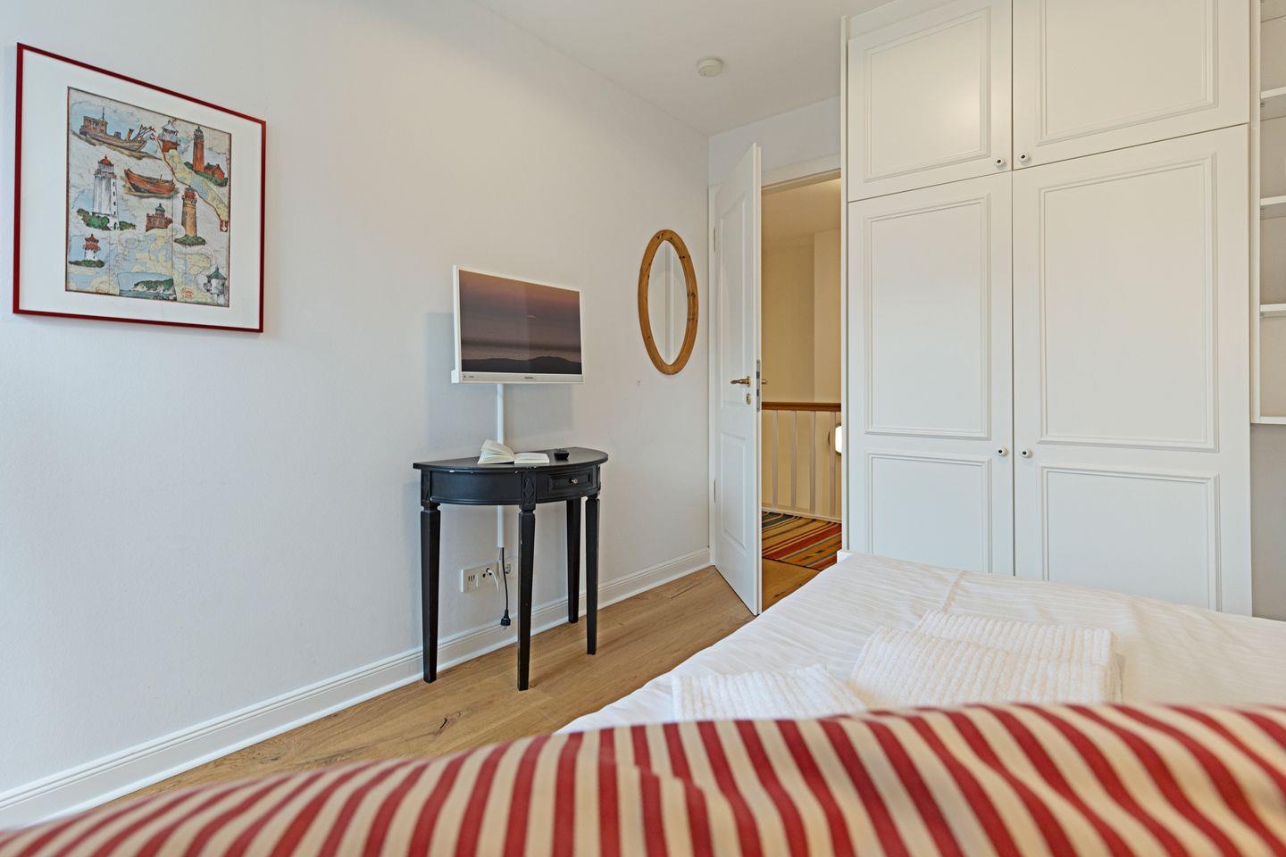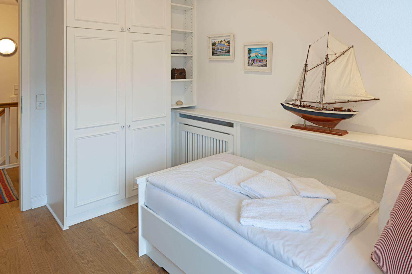 Im Dachgeschoss (stark ansteigende Treppe) befindet sich ein Schlafzimmer mit Doppelbett und ein Gäste-WC. Ein zusätzliches Bad gibt es im EG.