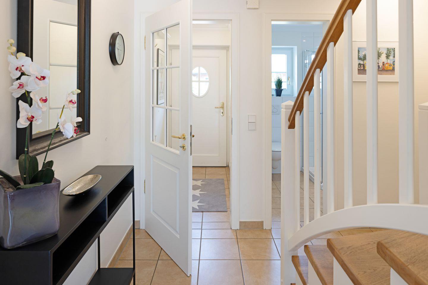 Ihr Feriendomizil ist modern, hell und freundlich eingerichtet. Die moderne und geschmackvoll aufeinander abgestimmte Einrichtung lädt Sie und Ihre Familie zum Erholen, Genießen und Verweilen ein. Das große Wohnzimmer mit Essbereich hat einen Terrassenzugang über die gesamte Breite Ihres Ferienhauses nach Süden.