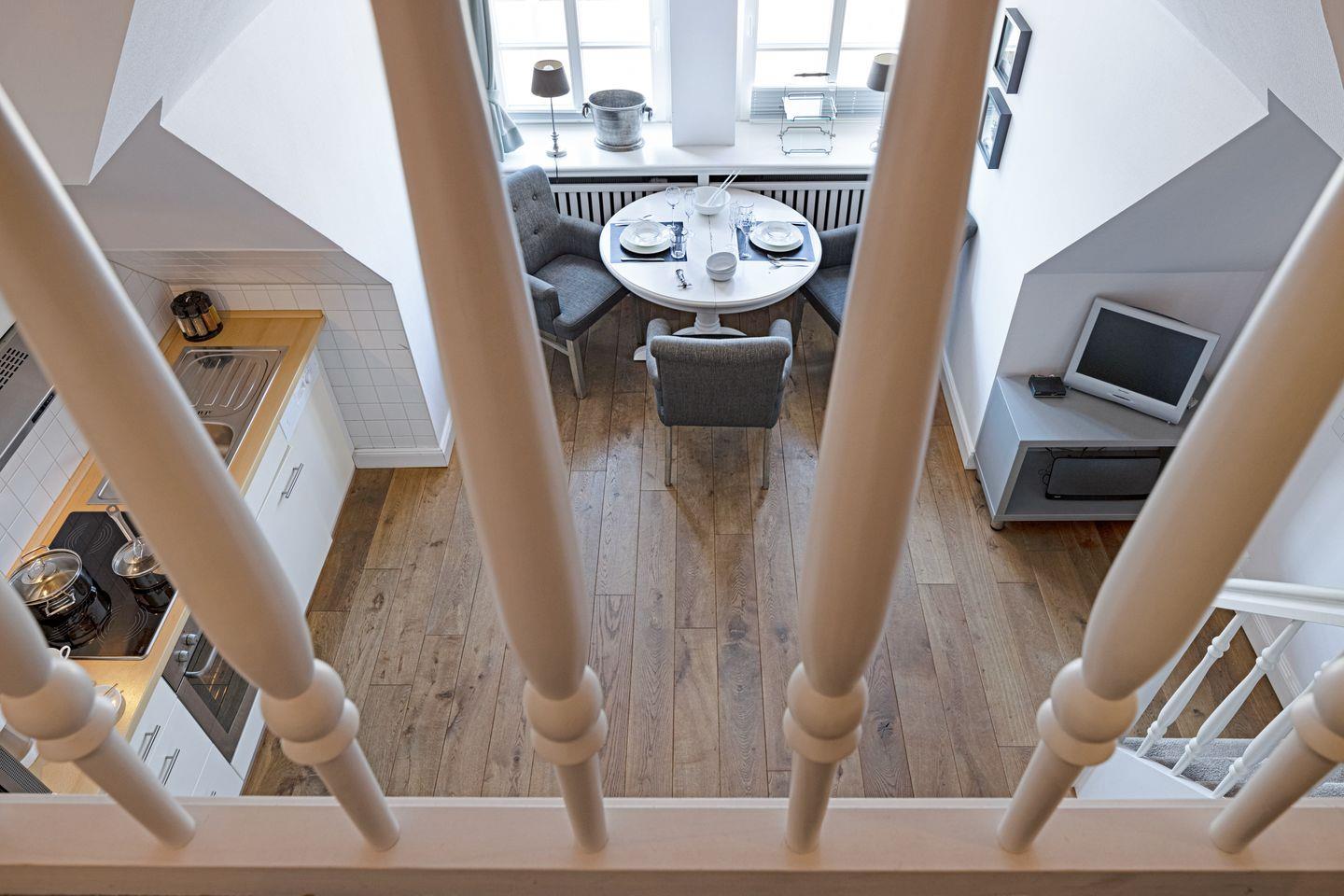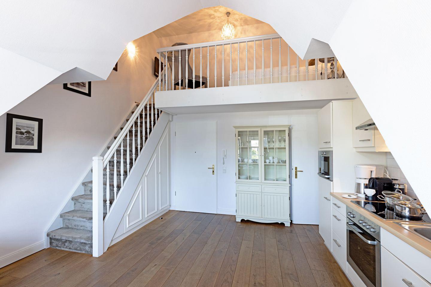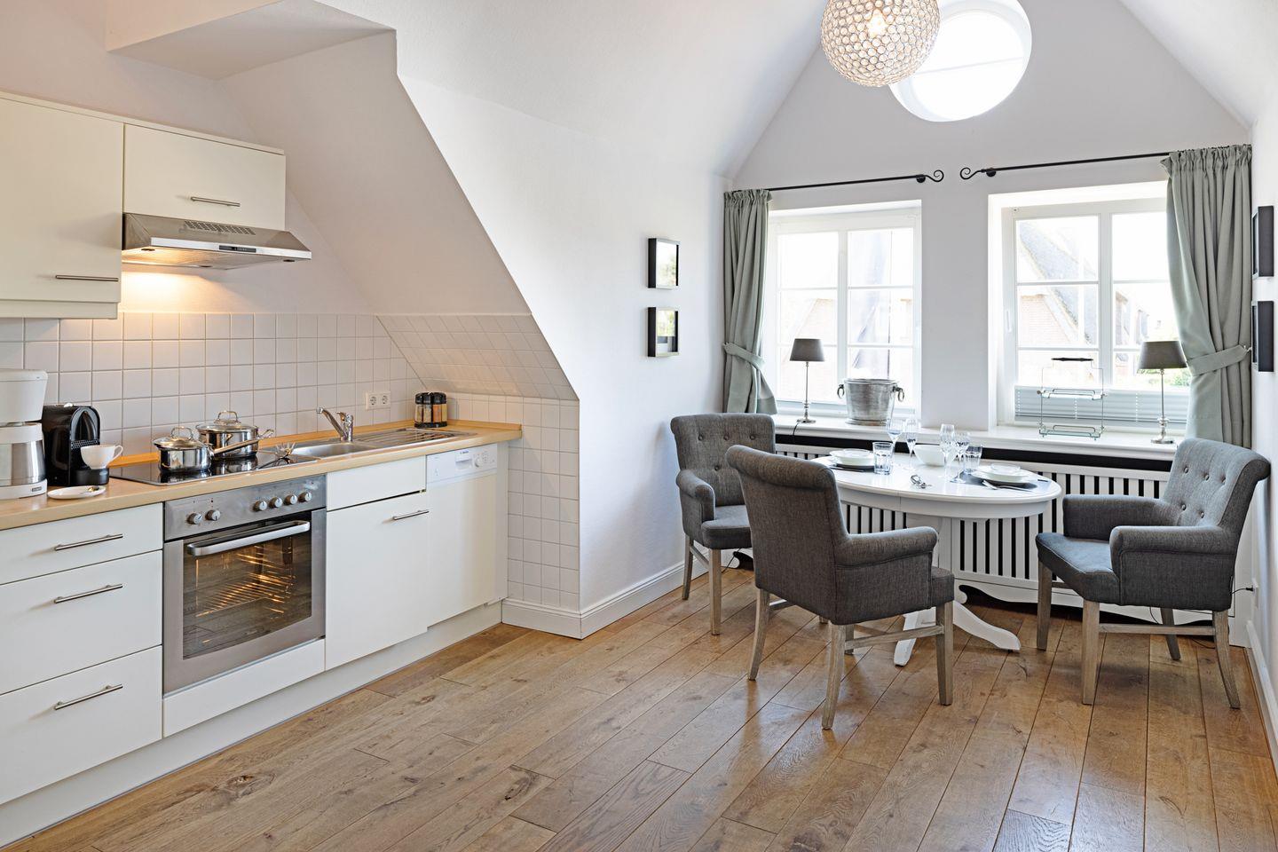 Ein stilvolles Ambiente und leichte Schrägen verleihen der 48qm großen Dachgeschoßwohnung für Nichtraucher Wärme und Behaglichkeit. Einkaufsmöglichkeiten gibt es in unmittelbarer Nähe.