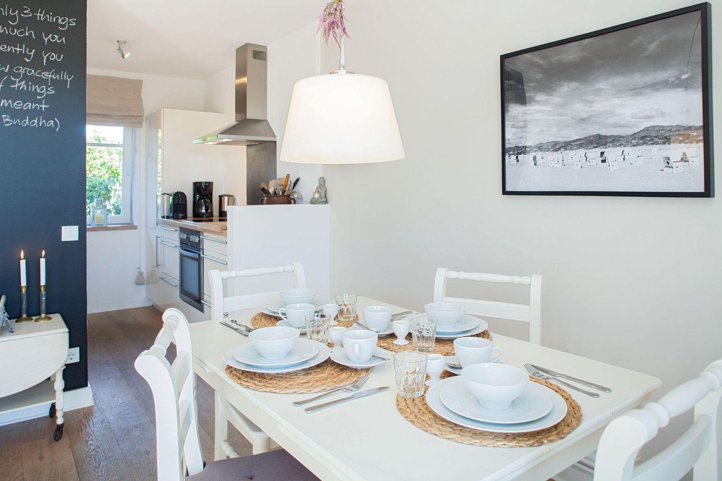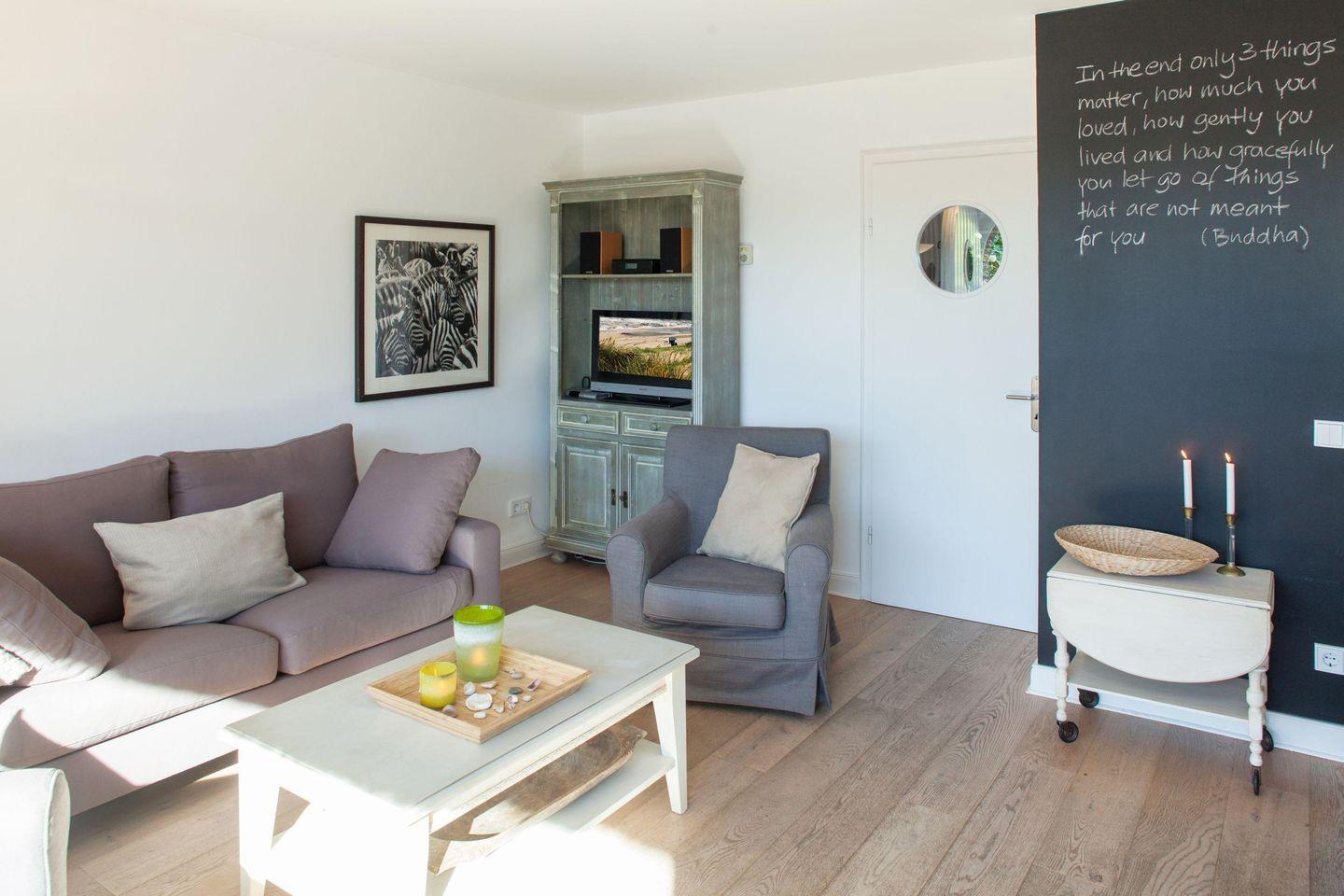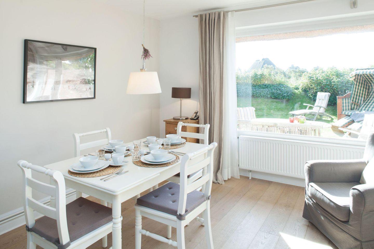 Das Haus, für bis zu vier Personen, verfügt über eine modern eingerichtete Küche, einem offenen Wohn-/Essbereich und eine große Südterrasse mit großzügigem Garten.