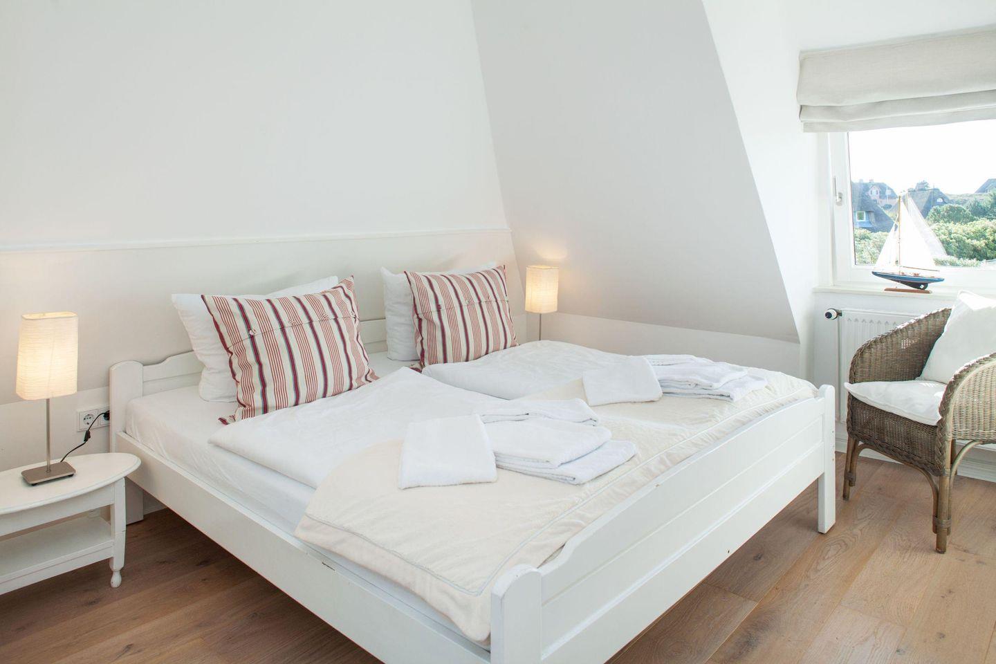 Über eine Wendeltreppe erreichen Sie zwei Schlafräume (jeweils Doppelbett) und das Duschbad.