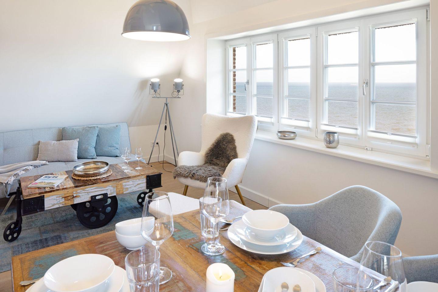 Von Ihrer im Obergeschoss gelegenen Wohnung "Jonna's Ausblick" (57 m2) und der im Untergeschoss gelegenen Wohnung "Momme´s Ausblick" haben Sie einen einmaligen Blick über das Wattenmeer und den Lister Oststrand, mit freiem Blick bis nach Dänemark.