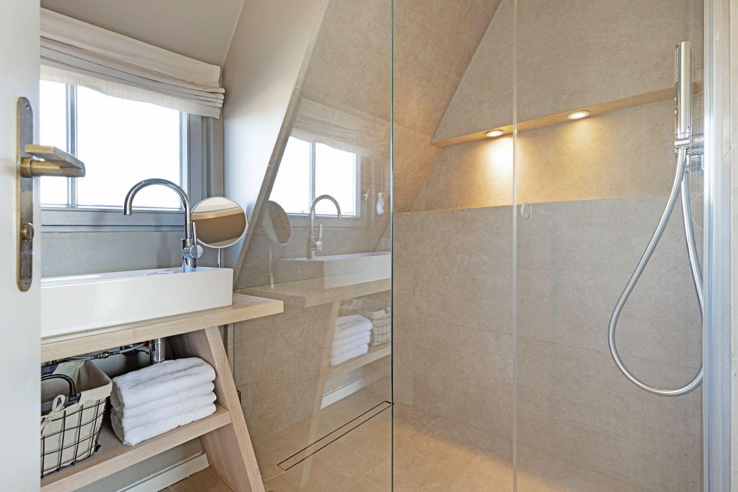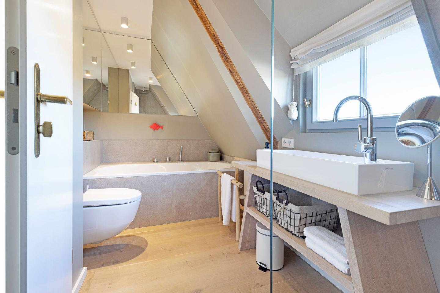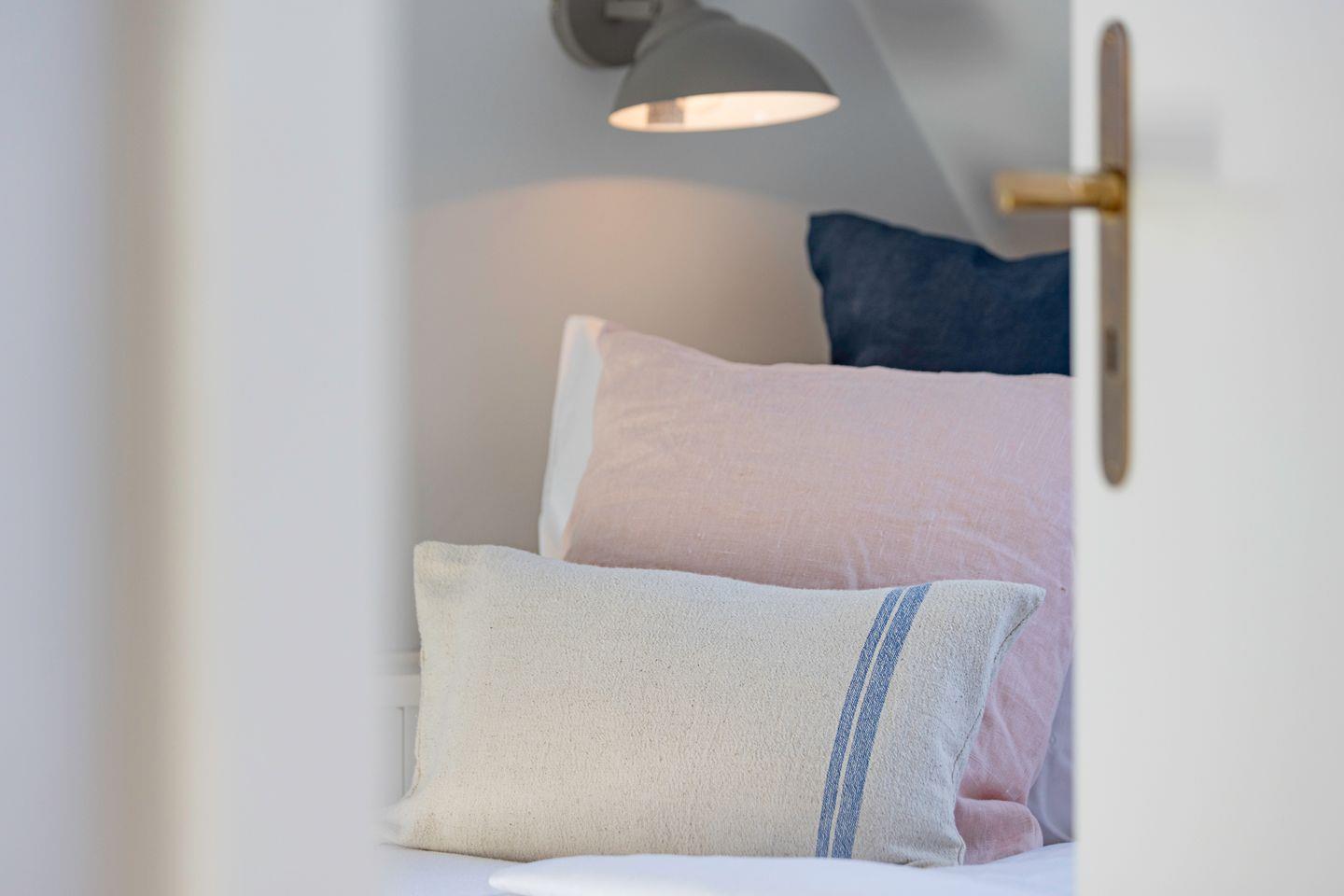 Das Haus verfügt über zwei Schlafräume mit jeweils Doppelbett (-eines im 1. Stock, eines im DG) und einem Schlafraum mit einem Einzelbett im 1. Stock. Ein edles Duschbad, sowie ein Wannenbad (1. Stock) vervollständigen Ihr Urlaubsdomizil.