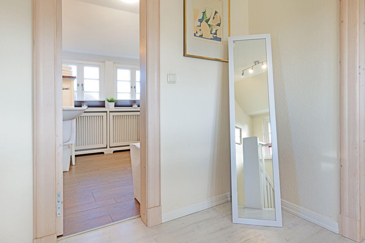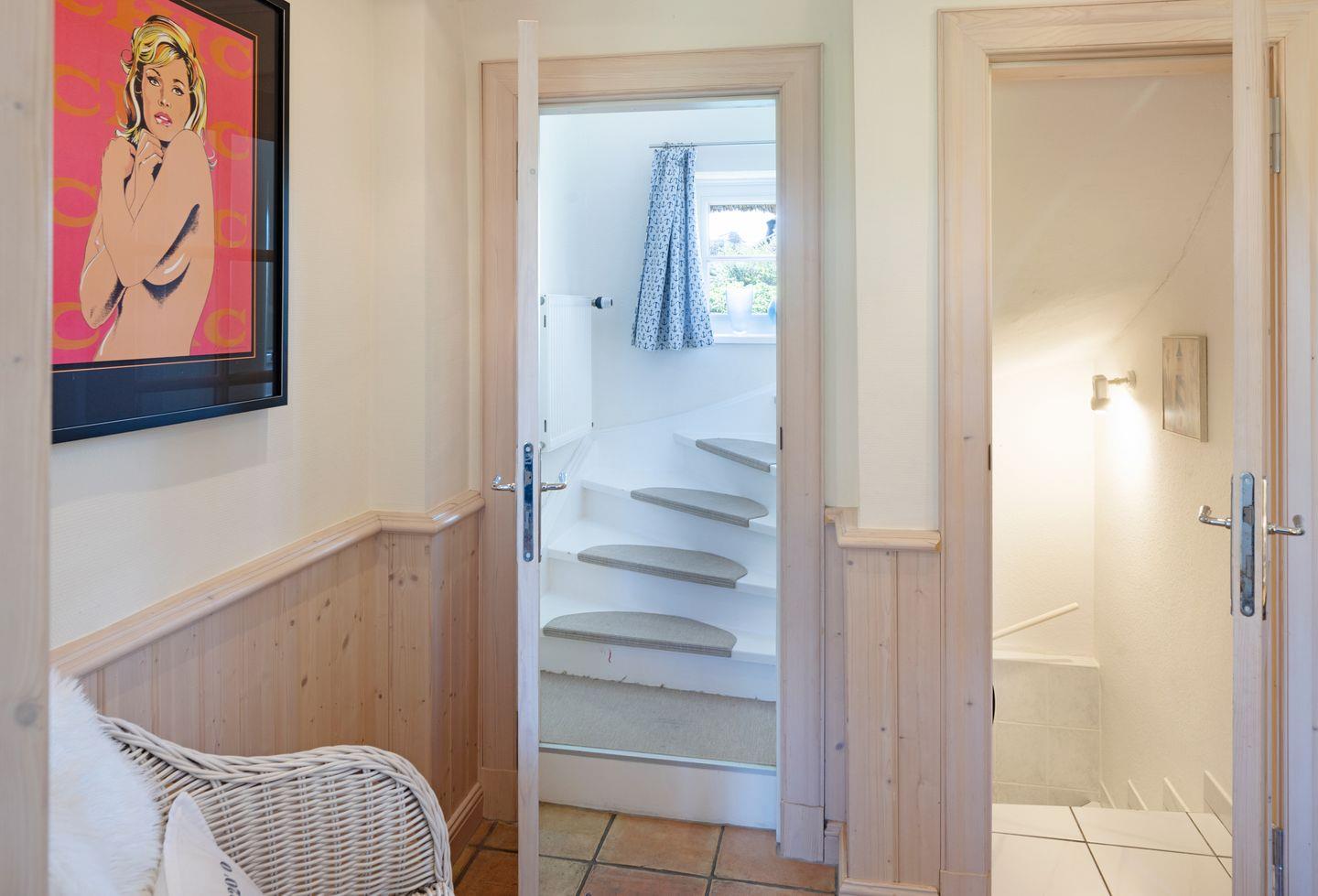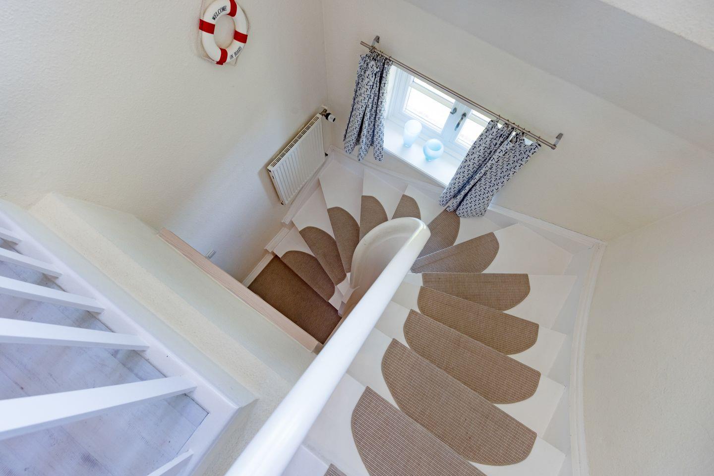 Im ersten Stock sind zwei Schlafzimmer, jeweils mit Doppelbett und ein Duschbad.