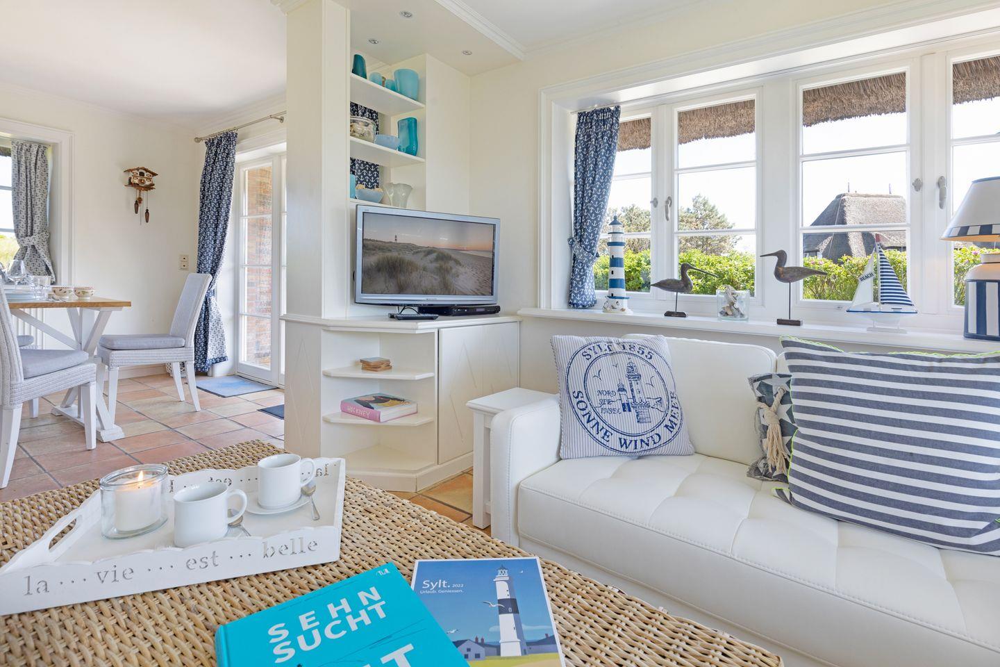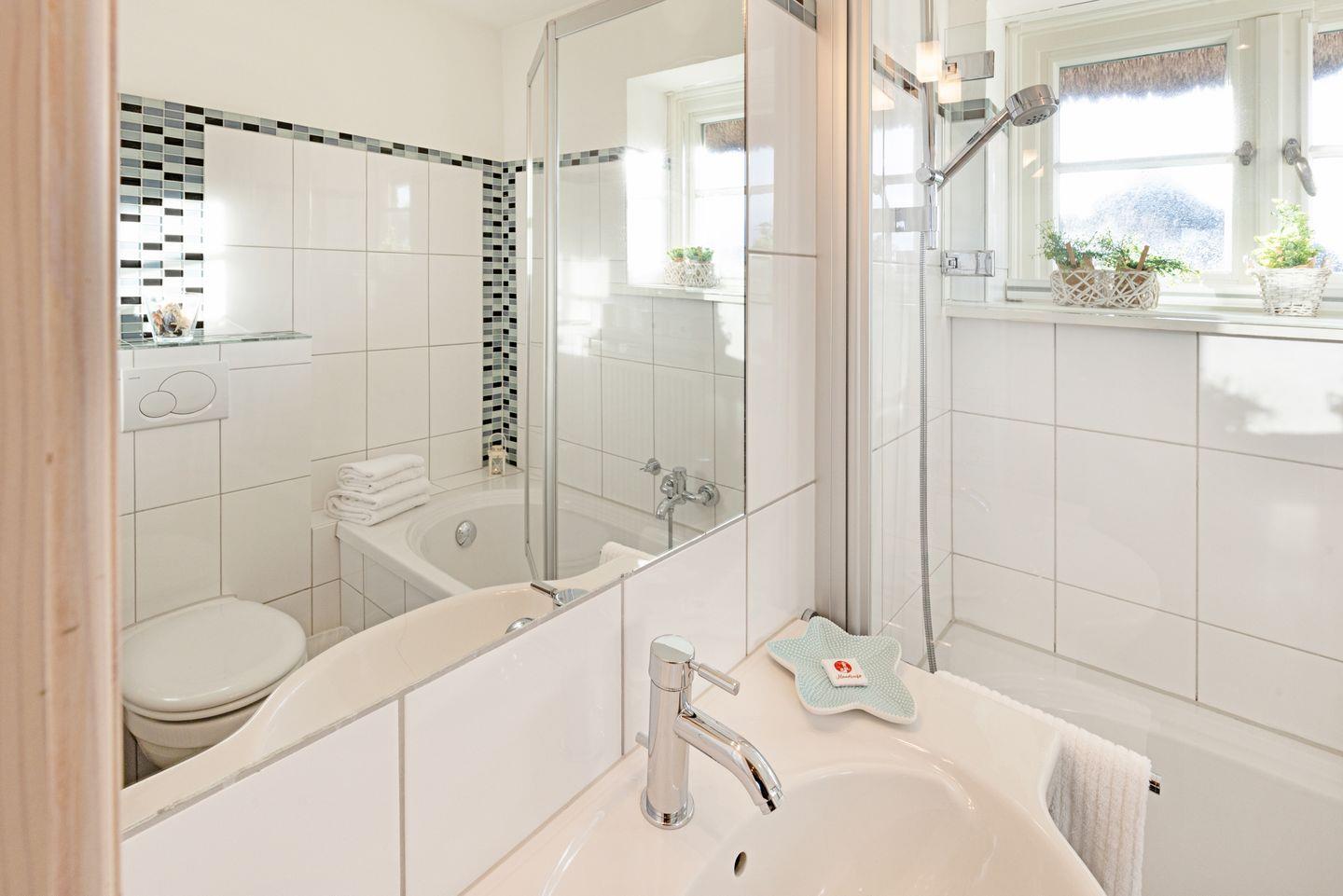 Hochwertig ausgestattetes, freistehendes Friesenhaus unter Reet für bis zu acht Personen mit kleiner Sauna, zwei Terrassen und zwei Strandkörben.