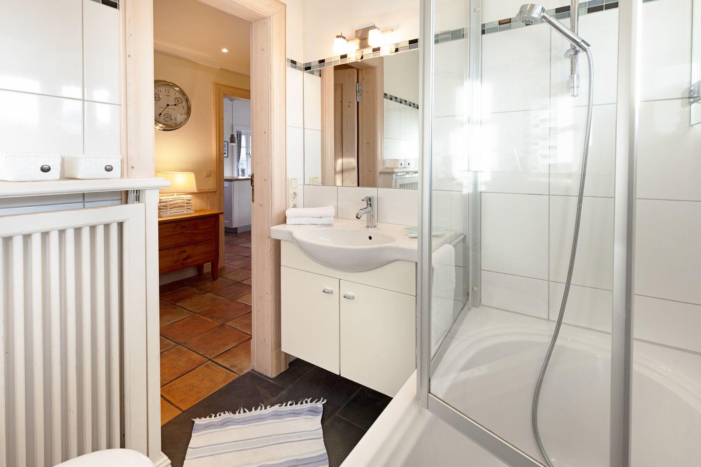 Im EG befindet sich ein Bad mit Wanne und ein Schlafzimmer mit einem Einzelbett (ausziehbar zum Doppelbett).