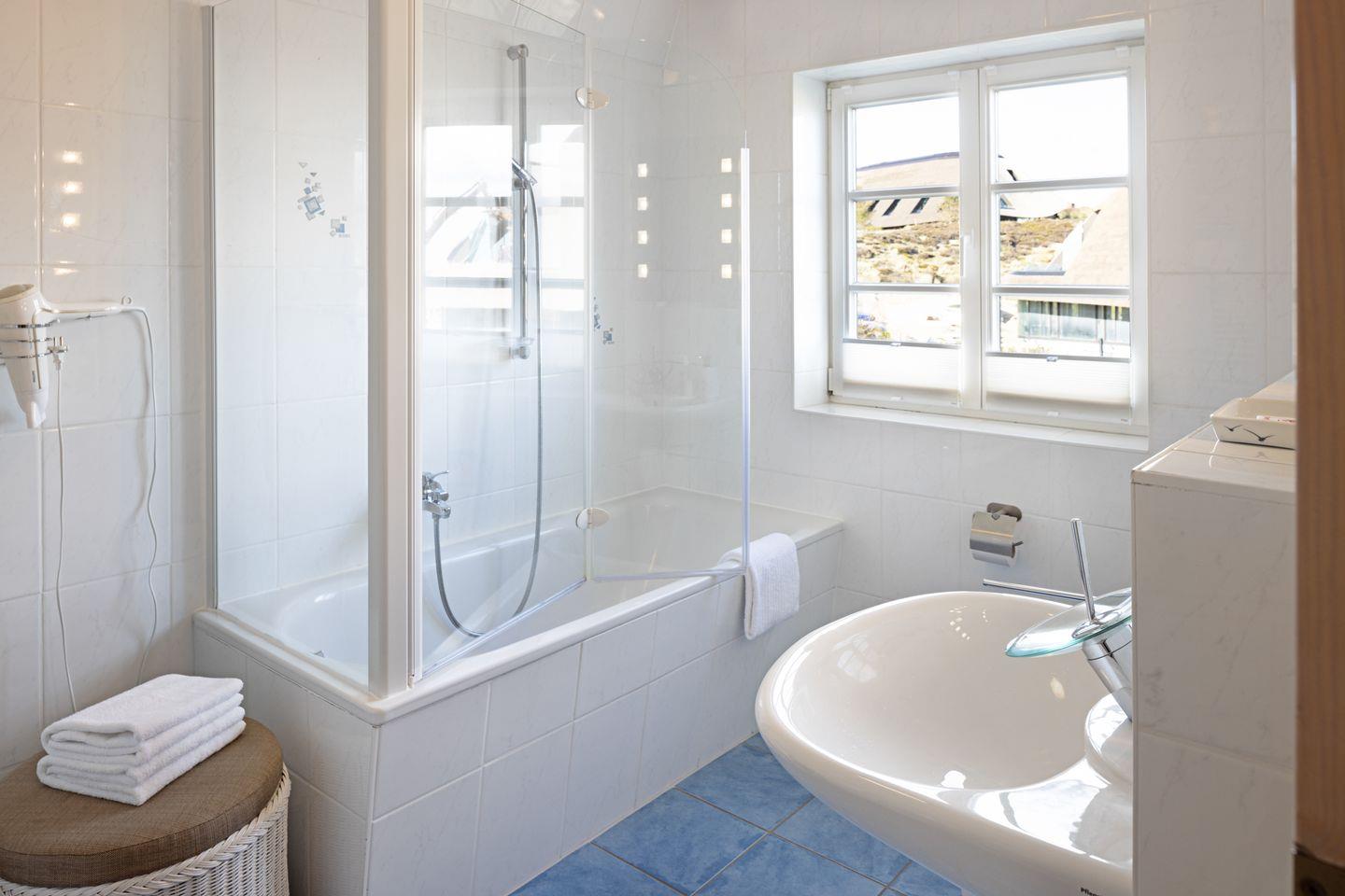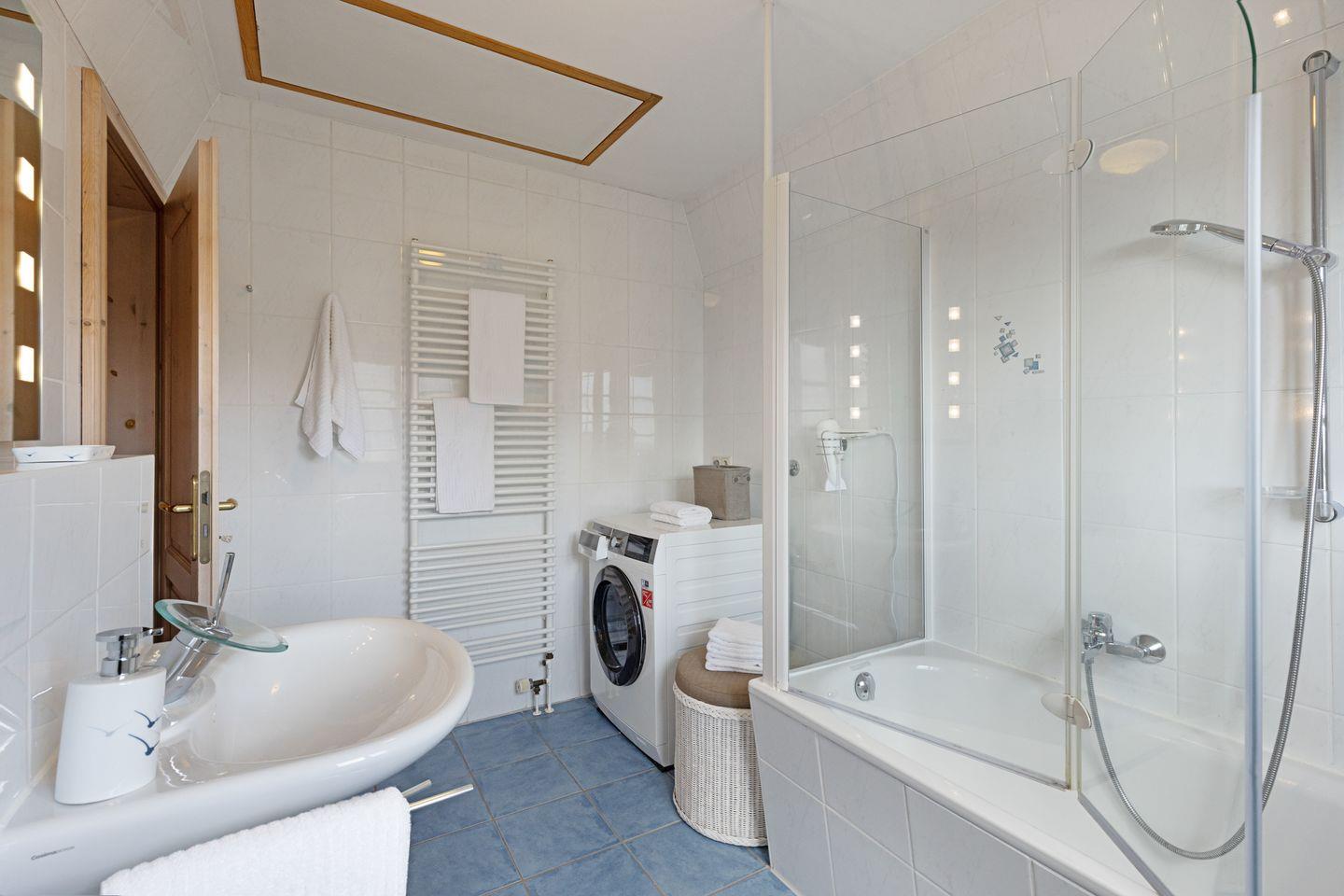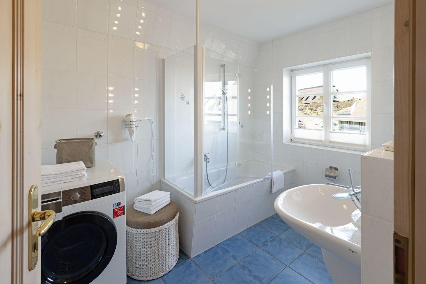 Besonders hervorzuheben ist das Badezimmer, das mit einer Dusche und einer Badewanne ausgestattet ist – perfekt für entspannende Wohlfühlmomente nach einem langen Tag am Strand. Genießen Sie den Luxus von frischen Handtüchern, Bademänteln und Haartrockner, die selbstverständlich bereitstehen.