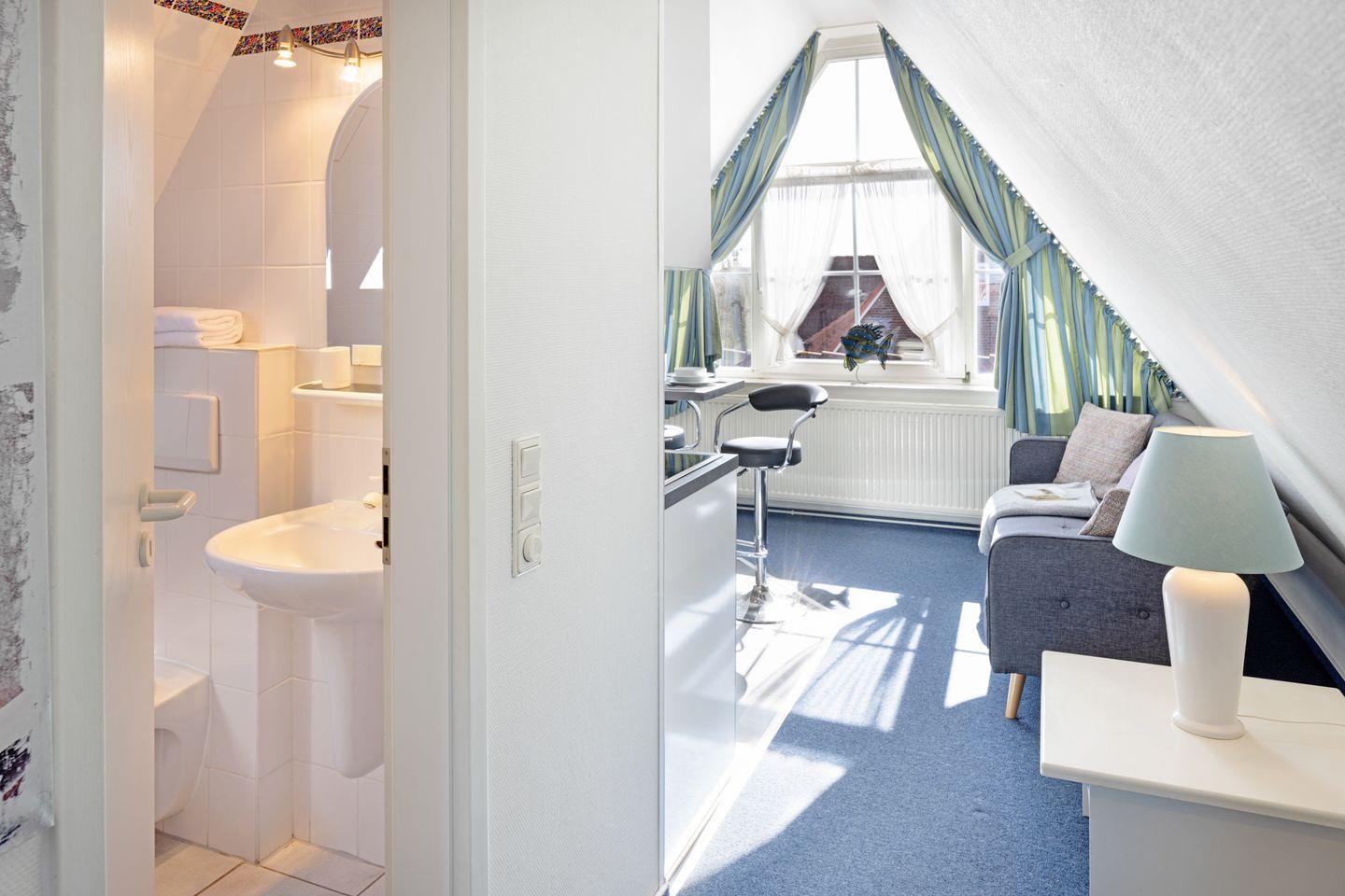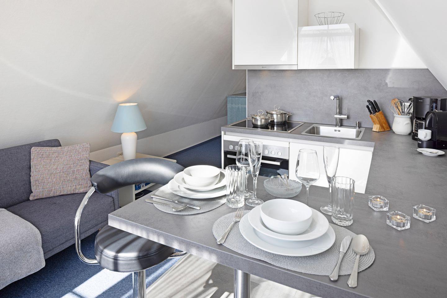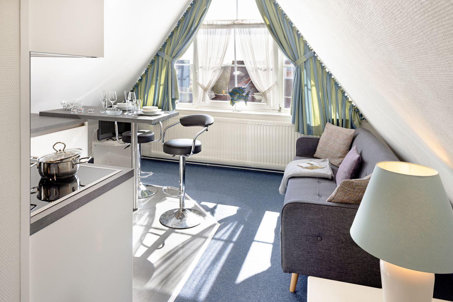 Das Appartement im 2. Obergeschoss bietet auf 40m² ausreichend Platz für zwei Personen.