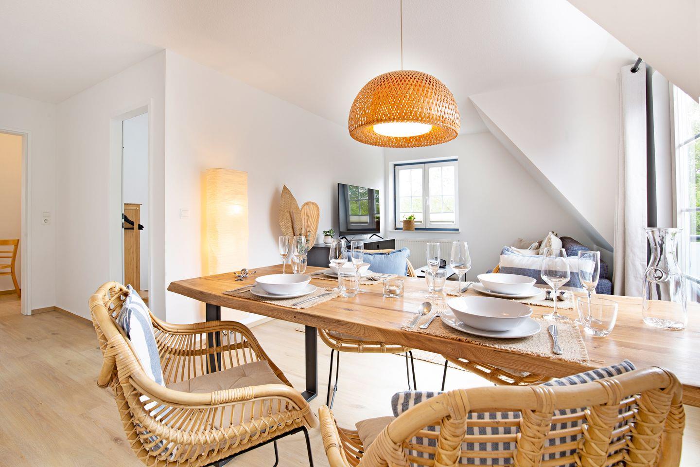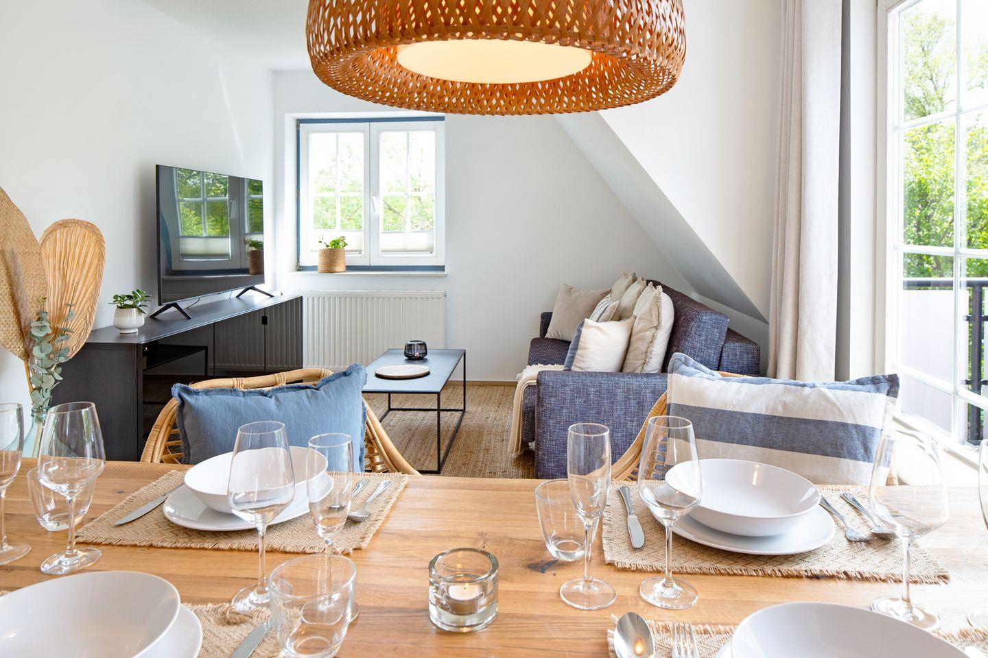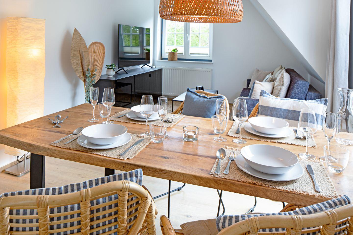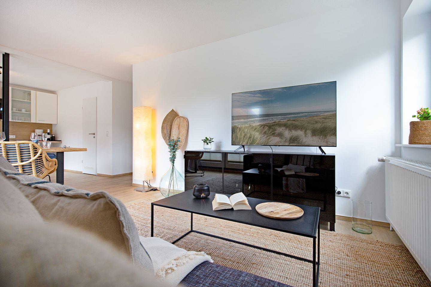 Die 2022 renovierte Wohnung überzeugt durch ihre helle, freundliche Atmosphäre und einen offen gestalteten Wohnbereich mit gemütlicher Sofaecke und großem Esstisch – ideal für entspannte Abende. Die voll ausgestattete Küche lässt keine Wünsche offen: Geschirrspüler, Backofen, Kaffeemaschine, Gewürze und vieles mehr sorgen dafür, dass Sie Ihre Lieblingsgerichte auch im Urlaub zubereiten können.