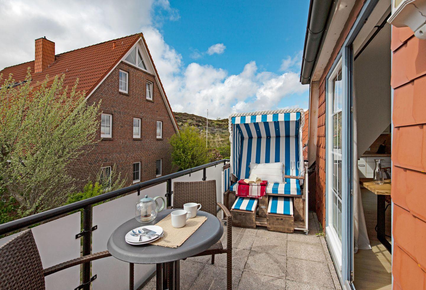 Zwei komfortable Schlafzimmer versprechen erholsame Nächte, während das moderne Bad mit Dusche für einen frischen Start in den Tag sorgt. Der Balkon mit Strandkorb lädt ein, die Sonne zu genießen und die Sylter Luft zu atmen.