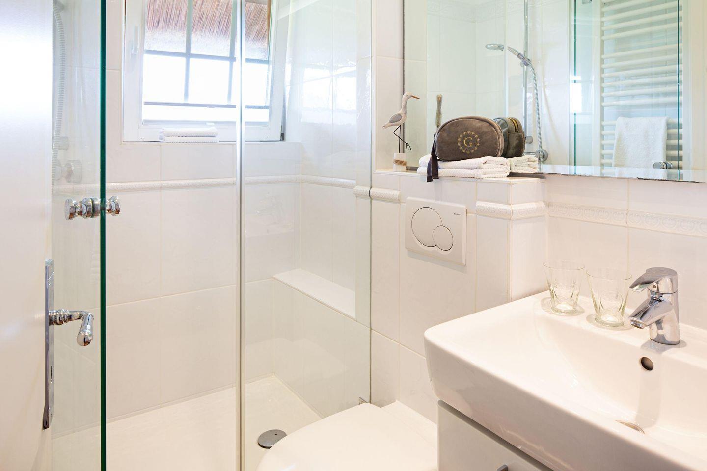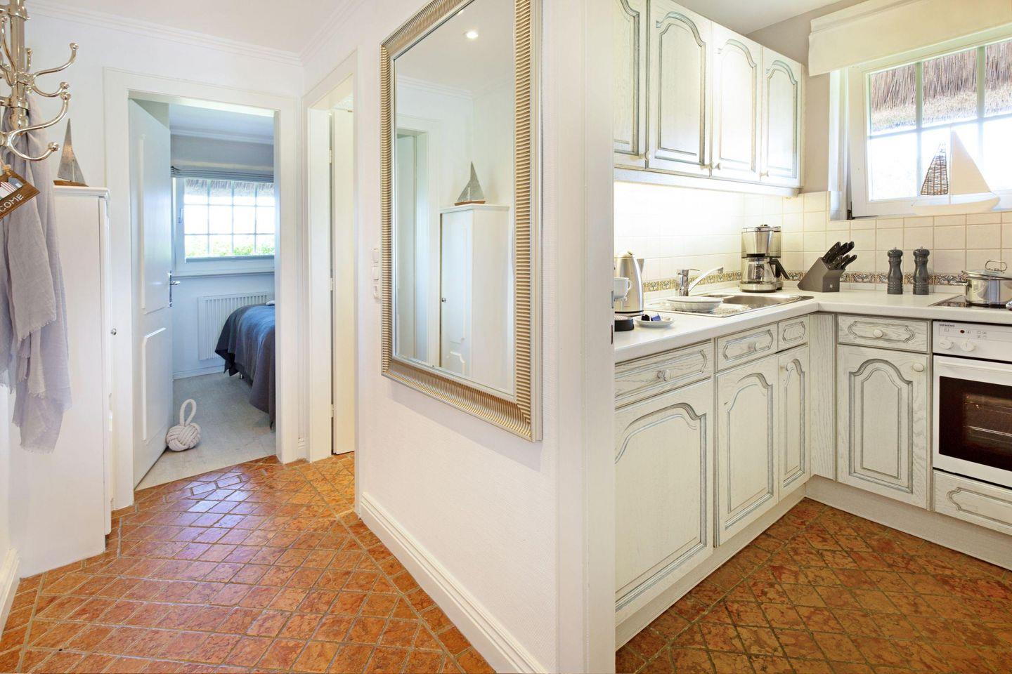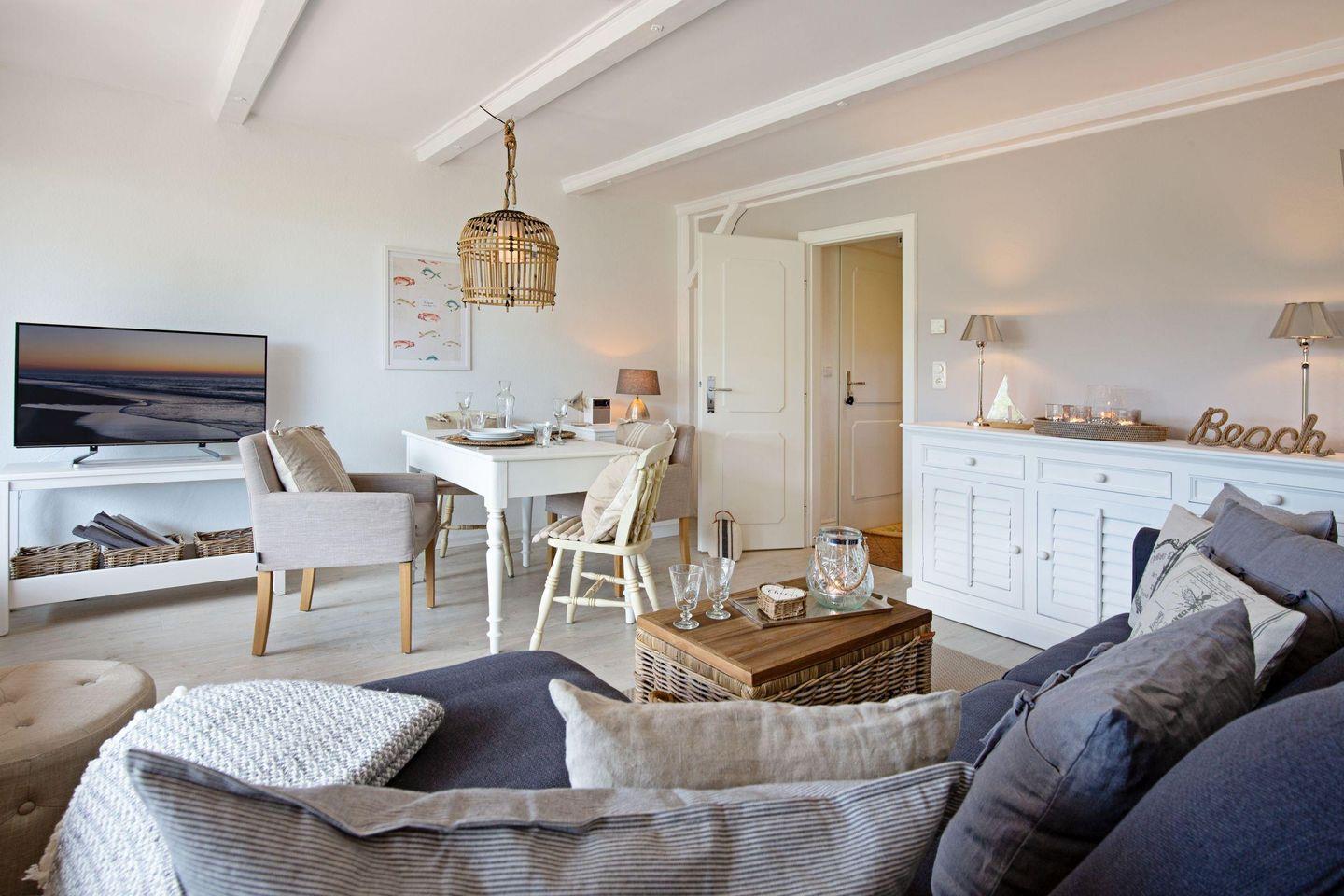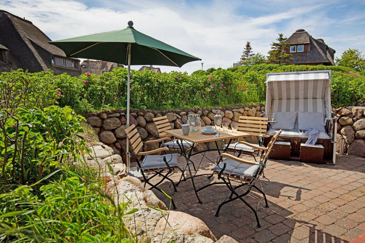 Genießen Sie die 20m² große Südterrasse mit Blick auf das Wattenmeer Ihres Appartements im Erdgeschoss unter Reet. Ein kurzer Weg, nur ca. 200m und Sie sind am Oststrand.
