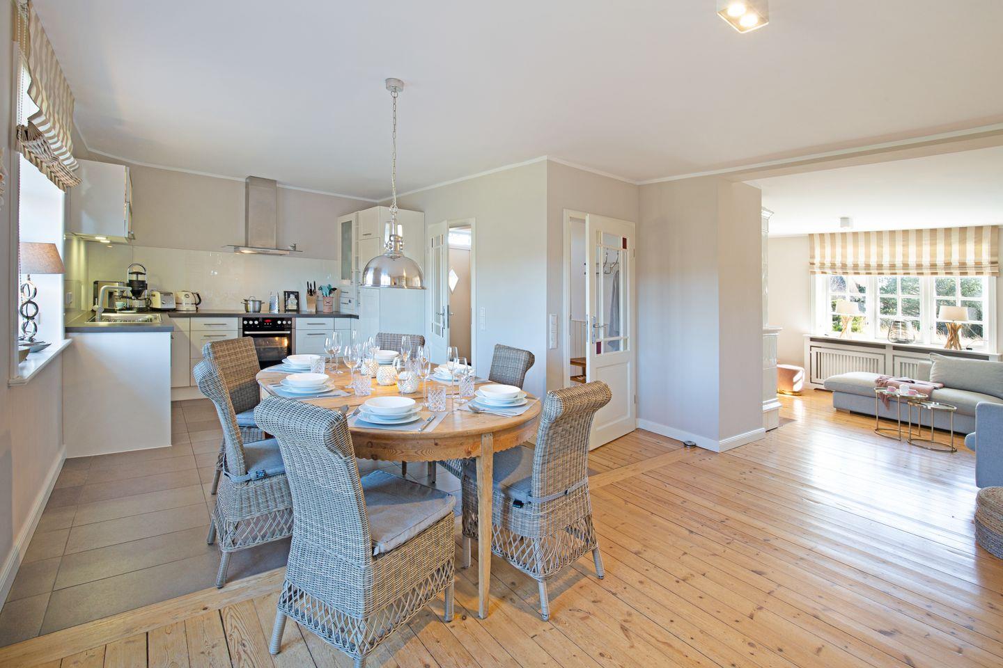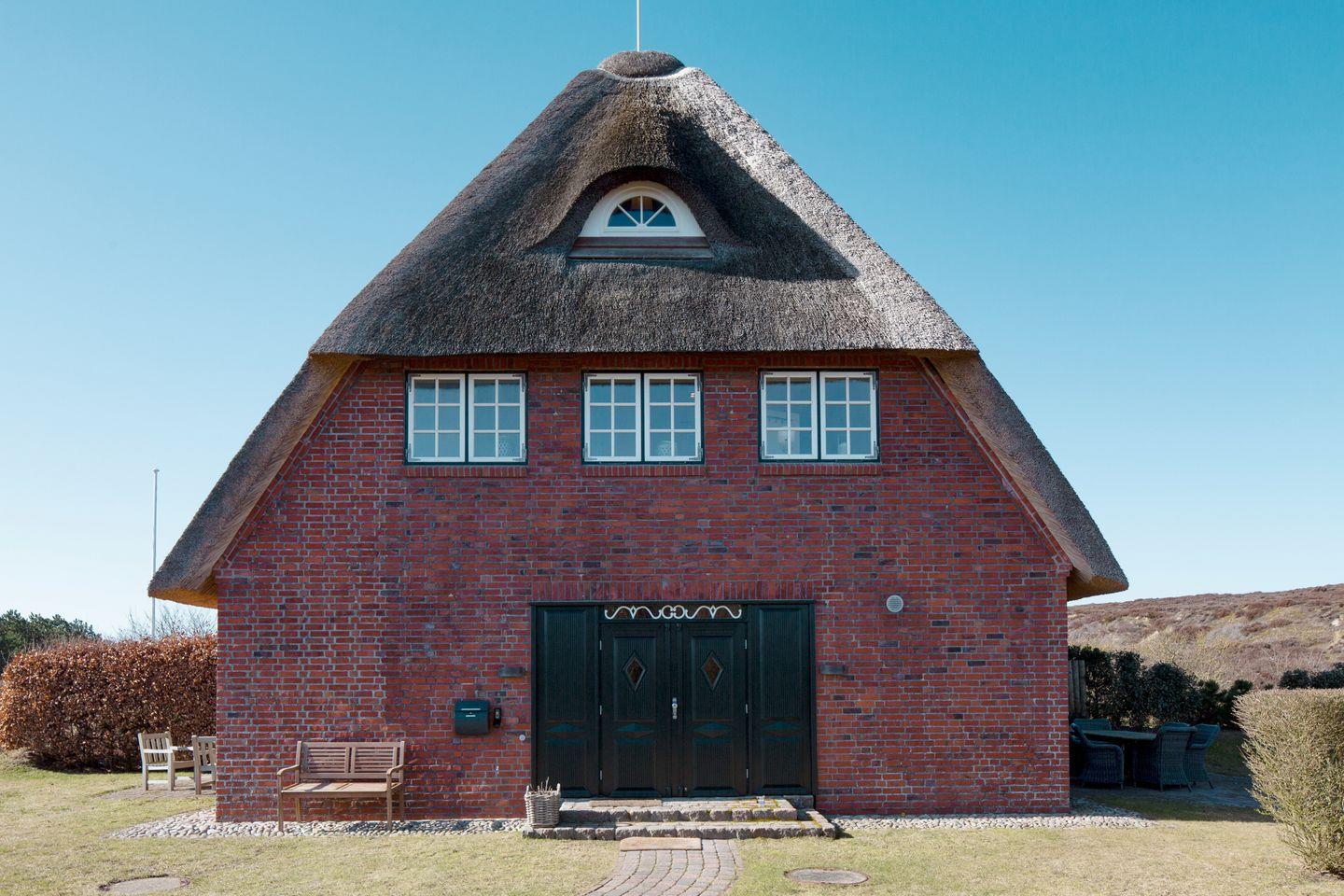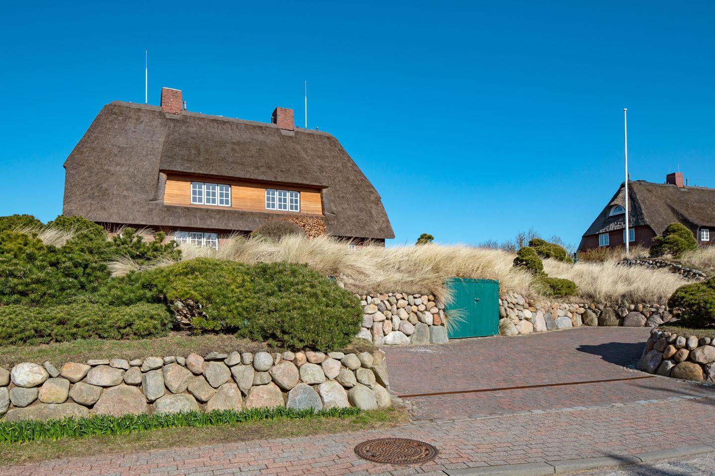 Wunderschöne Reetdachhaushälfte am südlichen Ortsrand von List mit einzigartigem Weitblick über die traumhafte Sylter Dünen- und Heidelandschaft. Der große Garten (1600 qm) mit 3 Terrassen und die erhöhte Lage bieten ein Höchstmaß an Privatsphäre und Ruhe. Trotzdem sind Sie fußläufig schnell im Ortskern von List, wo Sie alles für den täglichen Bedarf sowie Restaurants, Ärzte etc. finden. Der Strand ist ebenfalls nur 700 m entfernt und mit dem hauseigenen Bollerwagen oder den Rollern auch für kleinere Kinder schnell zu erreichen. Das Haus wurde 2019 frisch renoviert. Es gibt 3 Schlafzimmer (1x ist unter dem Giebel und ist ein offenes Zimmer mit Zugang einer Treppe) , 2 Bäder, ein Gäste- WC, eine gemütliche Wohnküche, einen Kachelofen und Holzfußböden. Ein PKW Stellplatz ist auf dem Grundstück vorhanden.