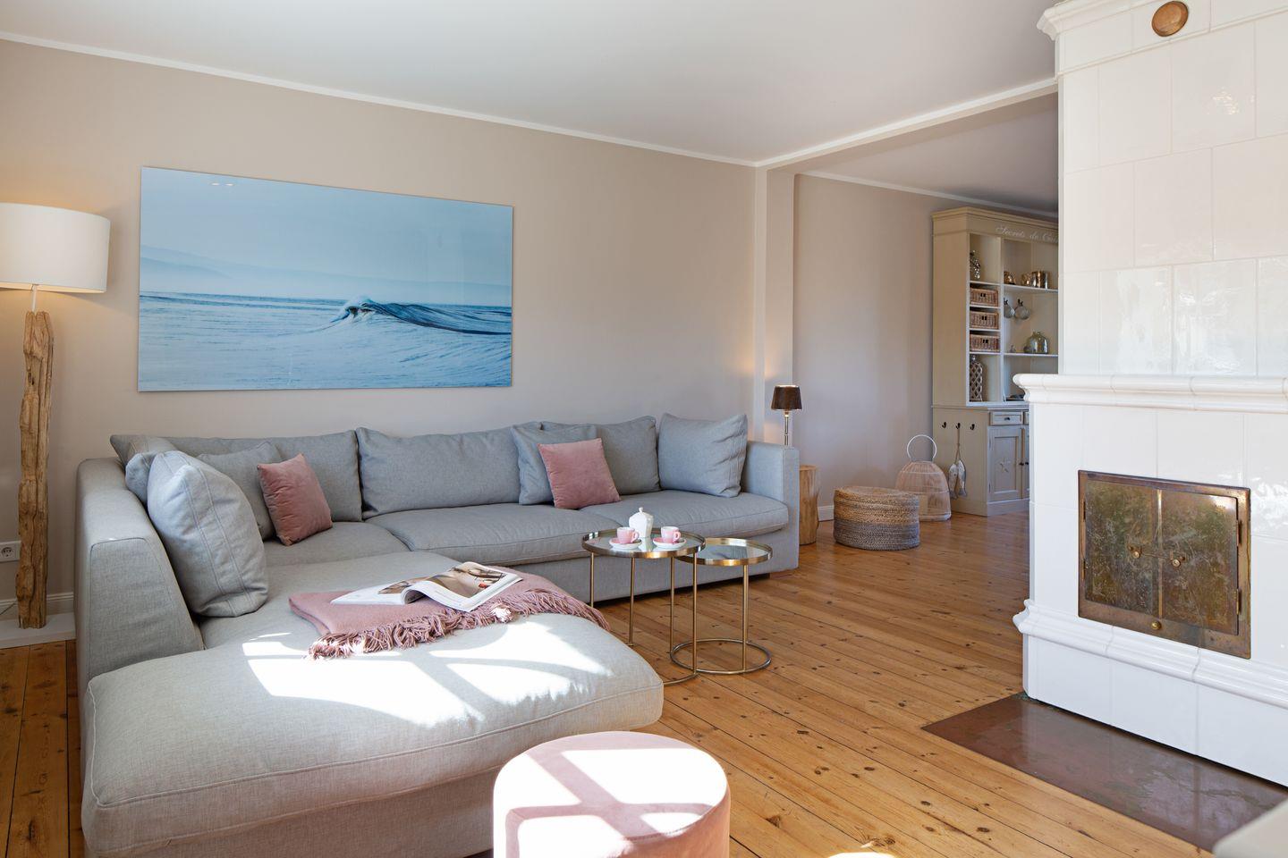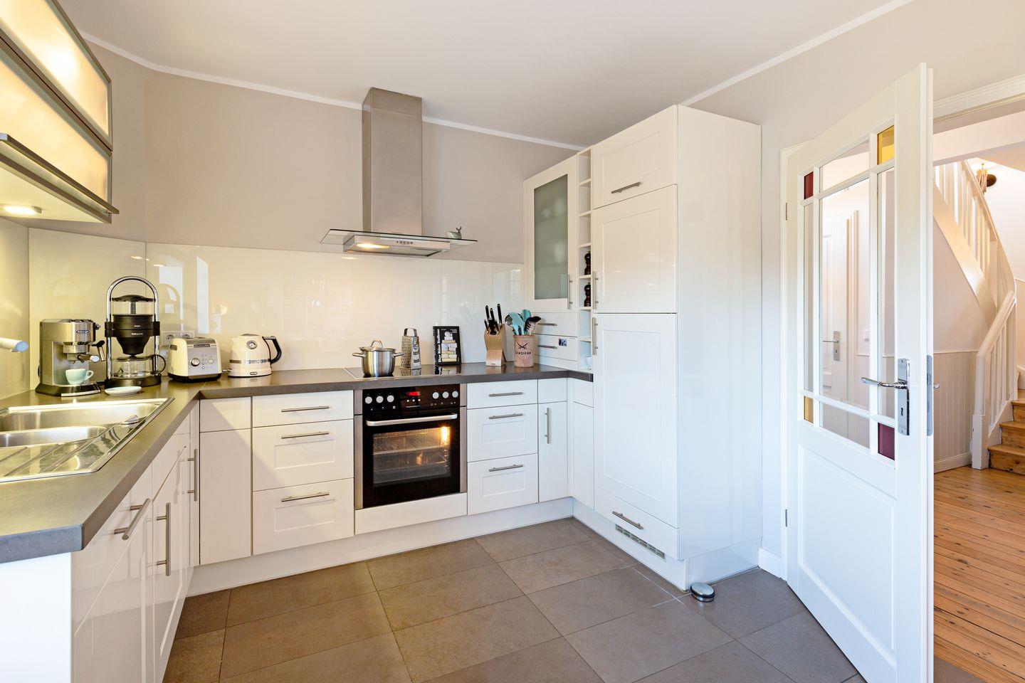 Moderne zentral gelegene Reetdachhaushälfte mit Kamin und großem Garten