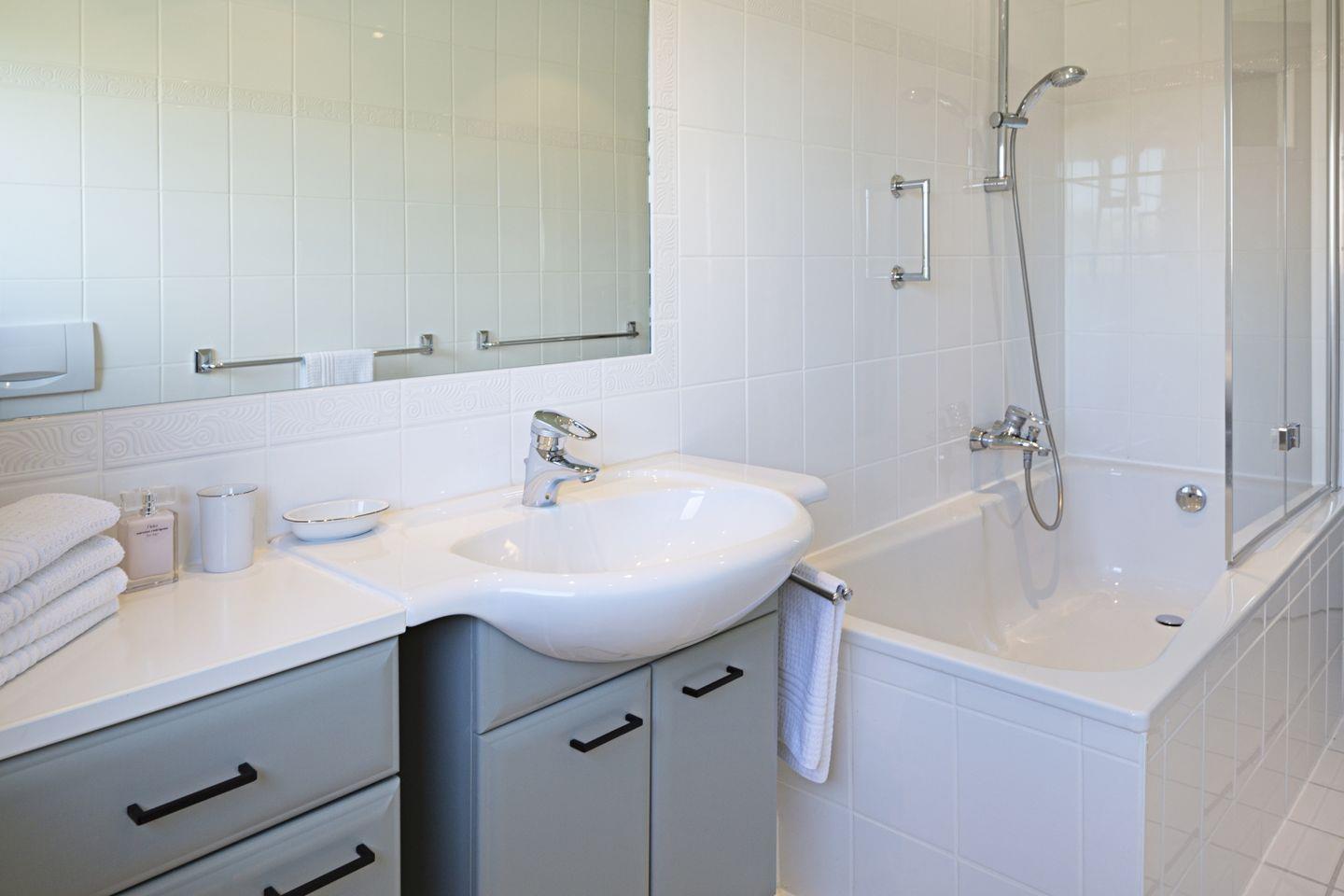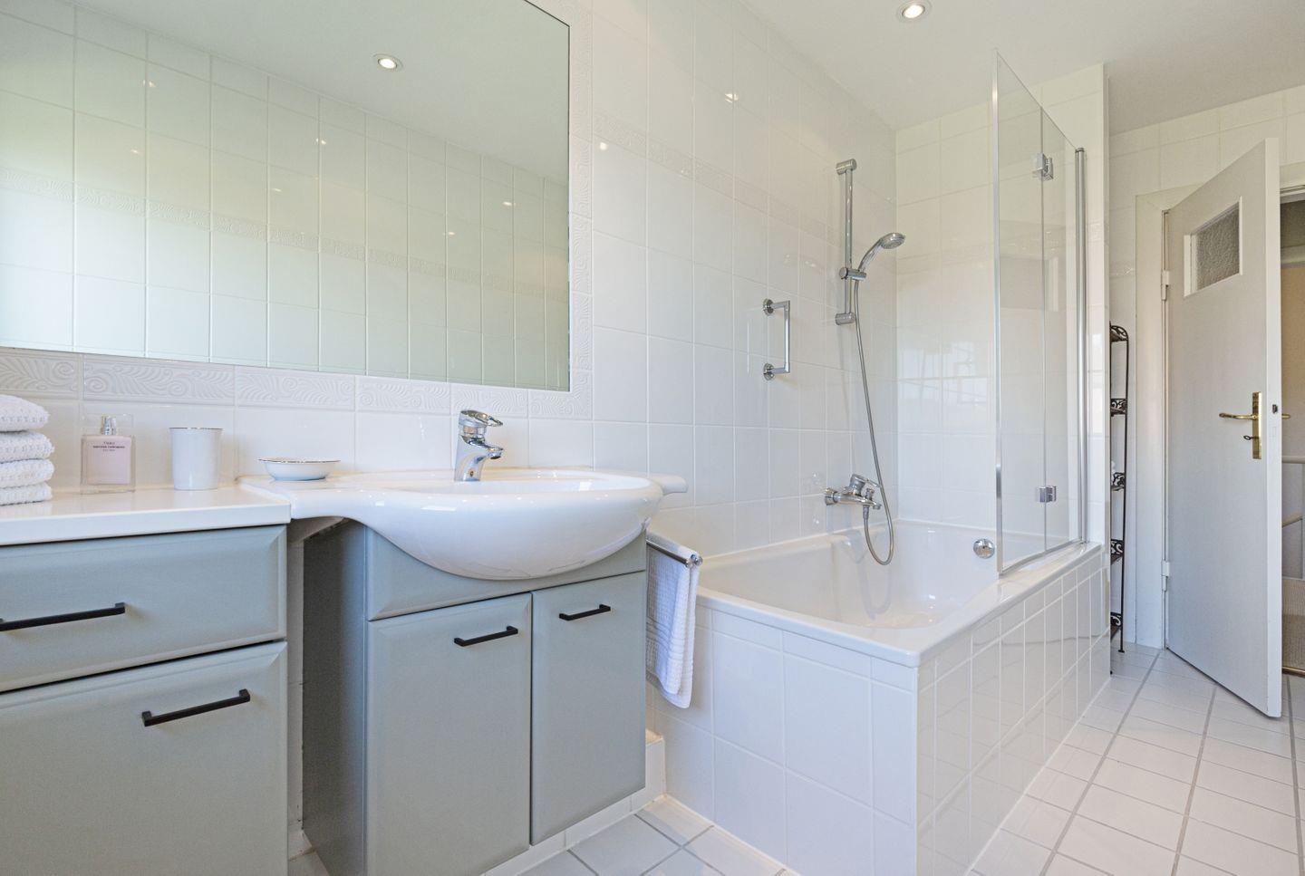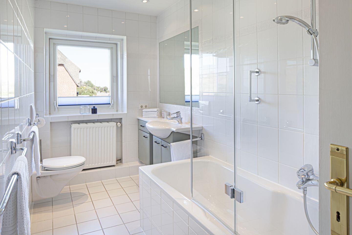 Das Haus verfügt weiters über ein geräumiges Badezimmer mit Dusche und Badewanne sowie ein Gäste-WC im Erdgeschoss.