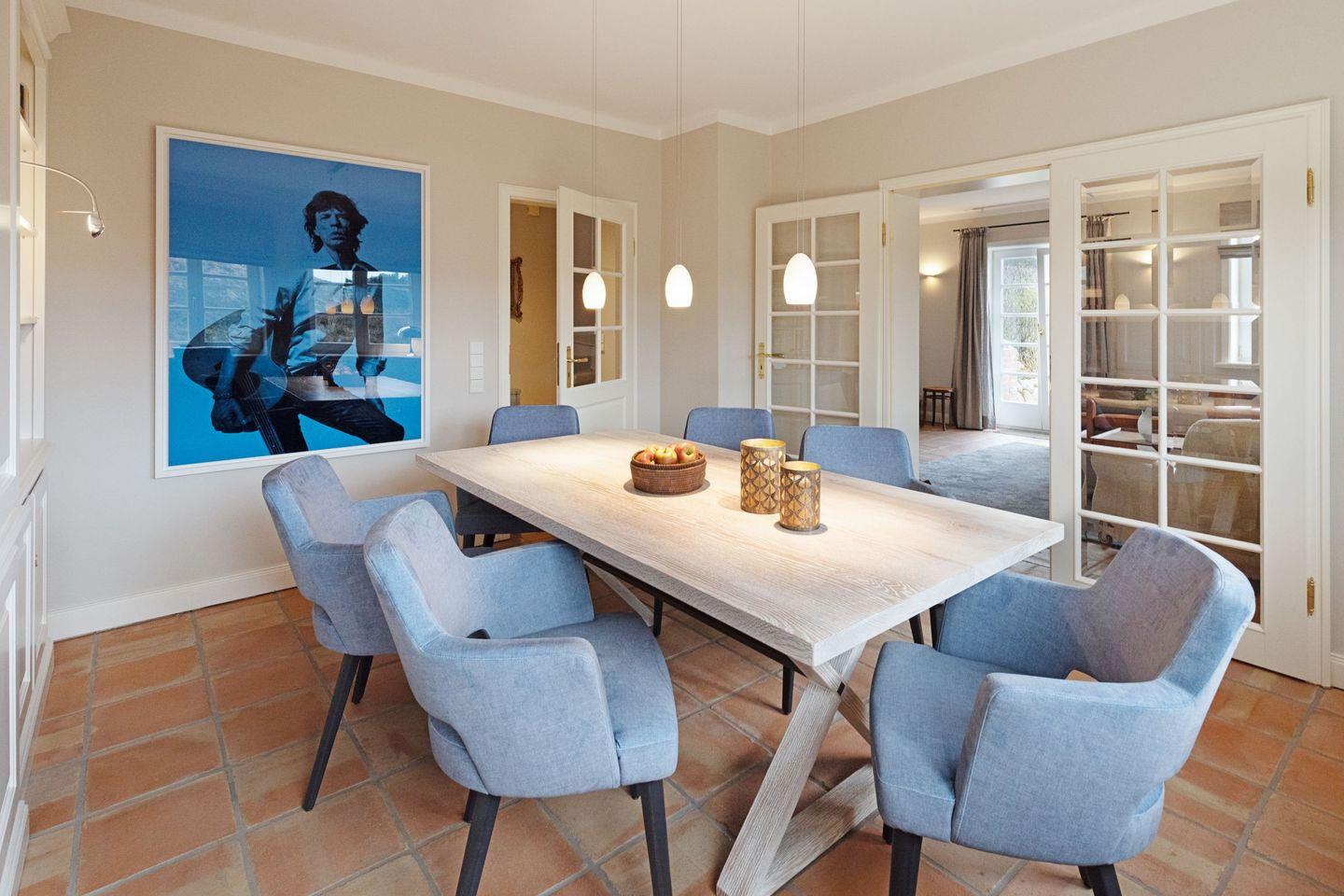Der Heimathafen in List auf Sylt bietet auf 160 m² Platz für bis zu 6 Gäste. Die Unterkunft verfügt über 3 Schlafzimmer, 2 Badezimmer und eine voll ausgestattete, geschlossene Küche. Genießen Sie entspannte Stunden auf der Terrasse oder im Garten mit Liegewiese. WLAN, Kaminofen und moderne Unterhaltungselektronik sorgen für Komfort. Max. 1 Hund ist auf Anfrage willkommen, und der Sandstrand liegt nur 100 m entfernt. Einkaufsmöglichkeiten und Restaurants sind ebenfalls in der Nähe. Ideal für Familien und Erholungssuchende.