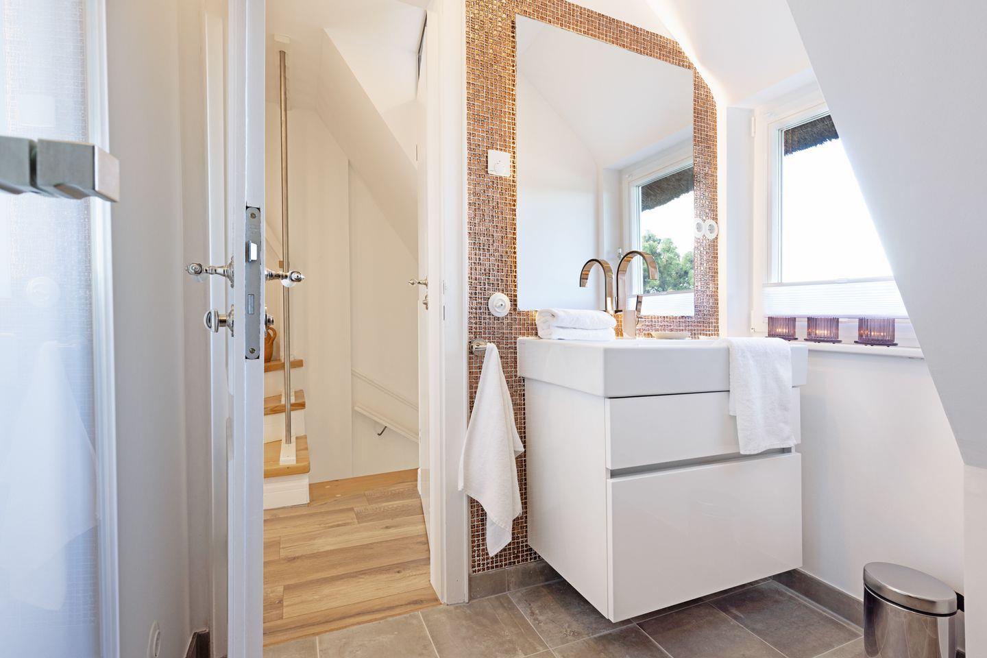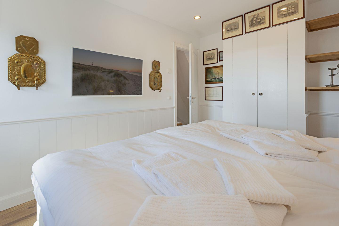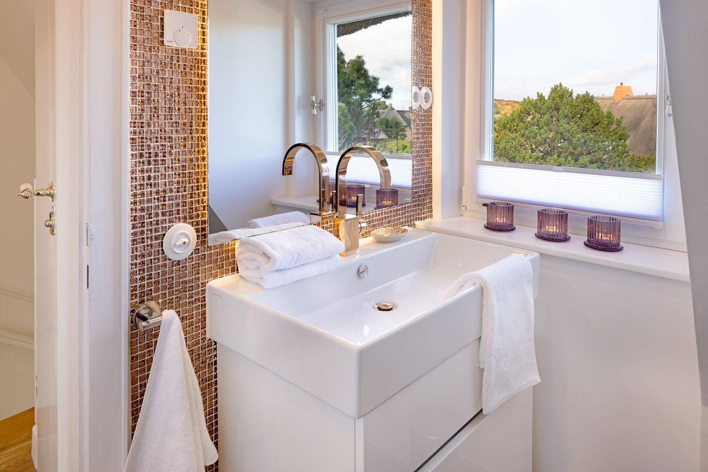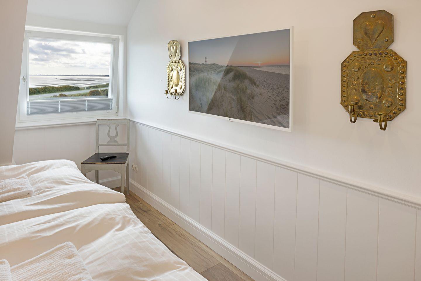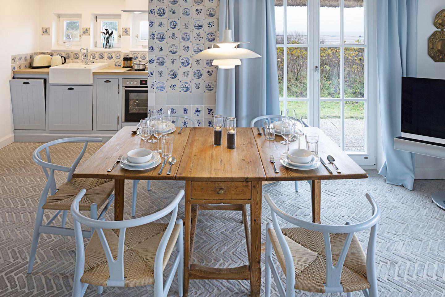 Die sehr persönlich gestaltete Einrichtung verbindet das traditionelle Sylt mit individuellem Vintage-Stil. In der ersten Etage befinden sich zwei Schlafzimmer.
