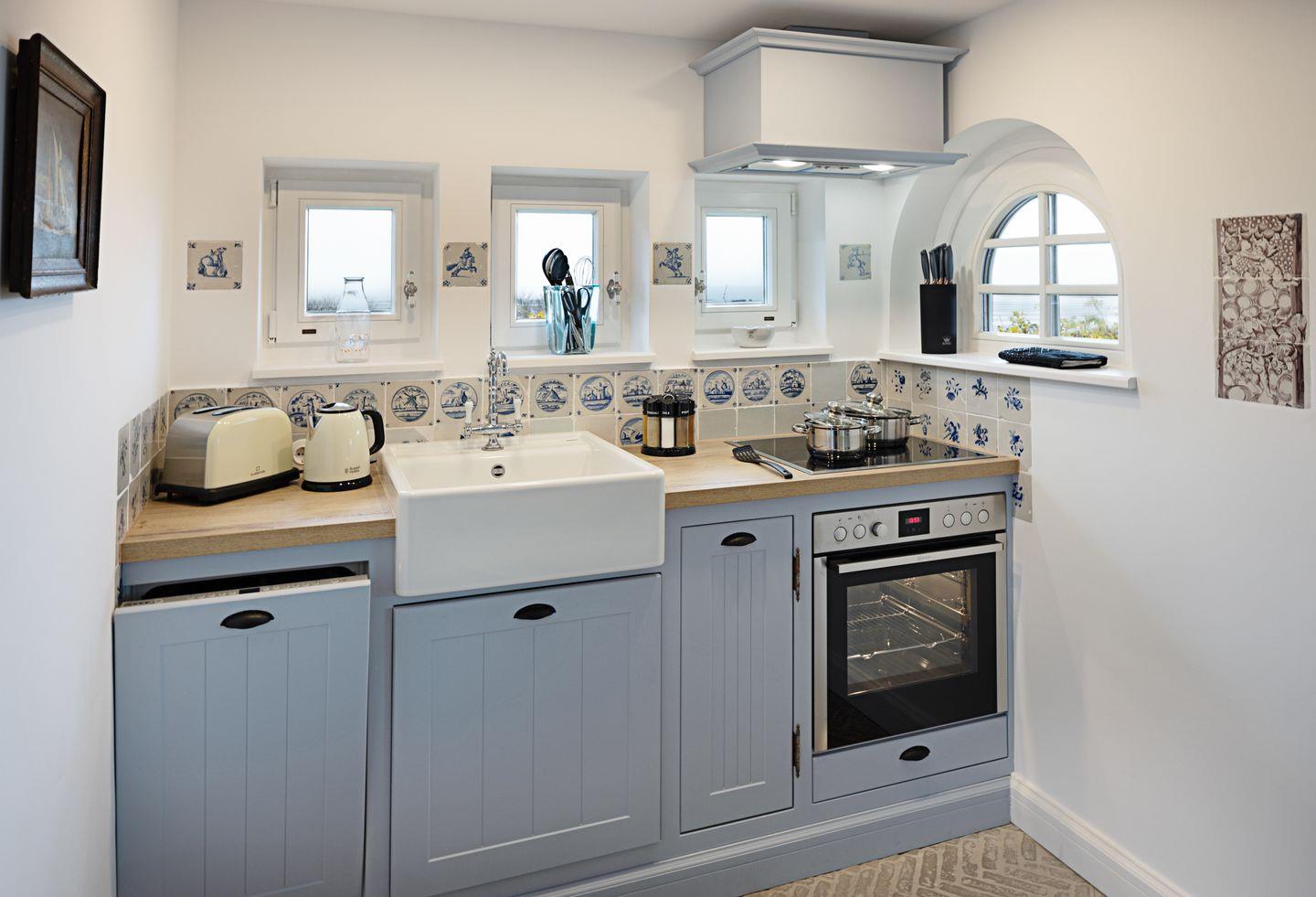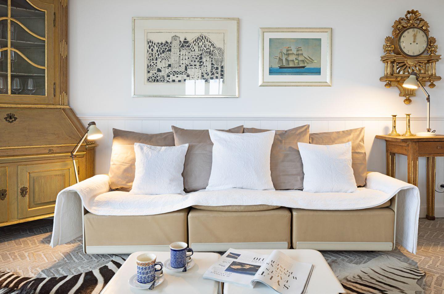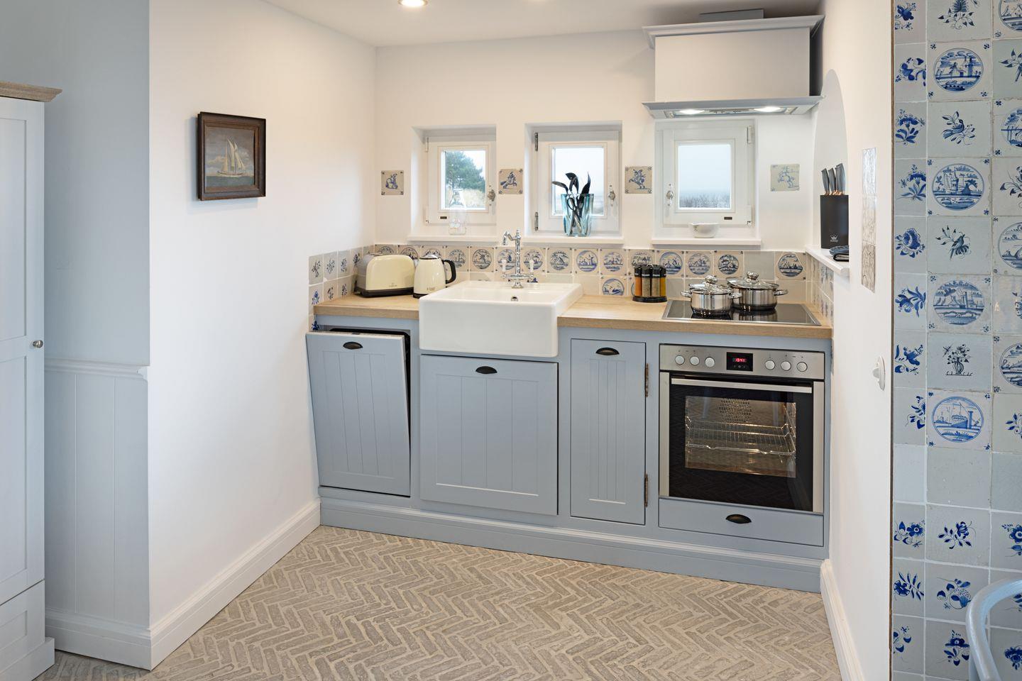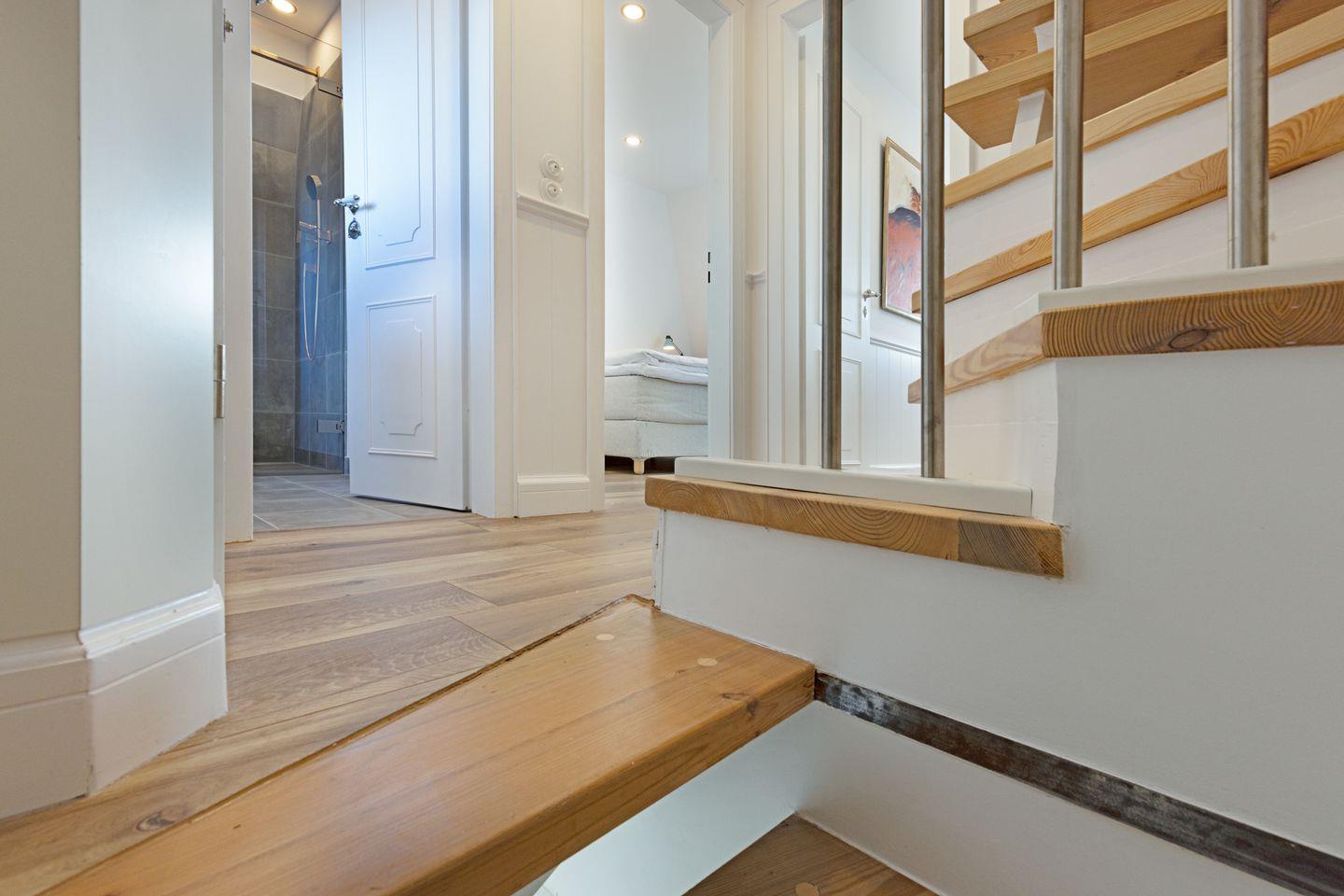 Die sehr persönlich gestaltete Einrichtung verbindet das traditionelle Sylt mit individuellem Vintage-Stil. In der ersten Etage befinden sich zwei Schlafzimmer.